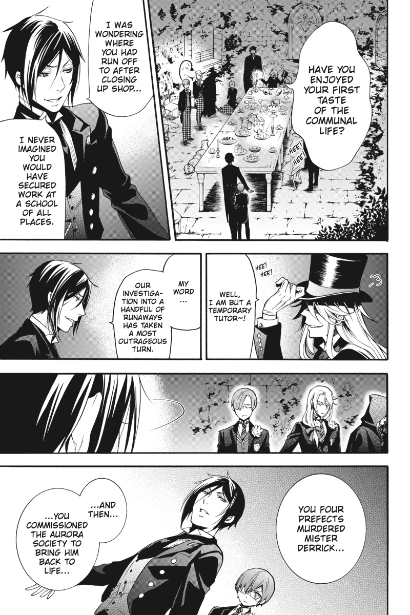 Their elaborate schoolroom deception at an end, Earl Ciel Phantomhive and his peerless manservant, Sebastian, finally hit upon the truth behind the incident of the vanished students at Weston College. Just what tragic steps did the elites of the school, spurred on by their overwhelming sense of justice, take to stamp out the bullying with which the halls of their institution had run rife?! What began as a seemingly simple case of missing persons goes round and round, spinning out of control into a great menace, one capable of perplexing even a devil of a butler...