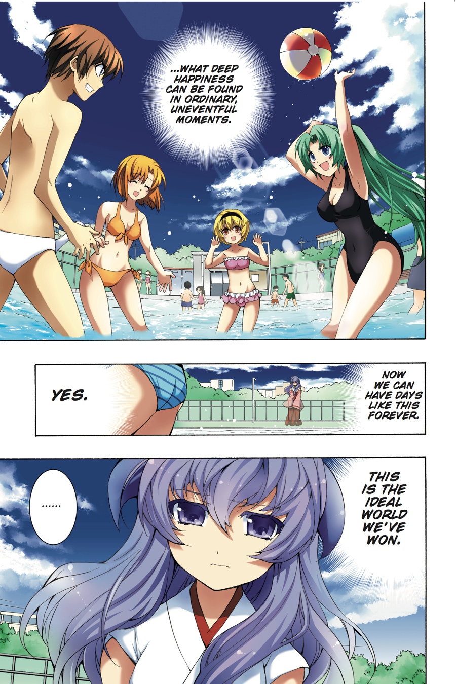 Over the course of a hundred years, Rika relived her brutal murder over and over again through countless fragments before finding the world where she could live in peace. But even without the threat of certain death hanging over her head, this world is fraught with dangers. After she's in a terrible accident, Rika wakes up to find herself in the nurse's office--however she's not in her peaceful new world, but rather in an alternate June 1983! Will Rika manage to find a way back to her ideal fragment?! The thrilling continuation of Higurashi WHEN THEY CRY!