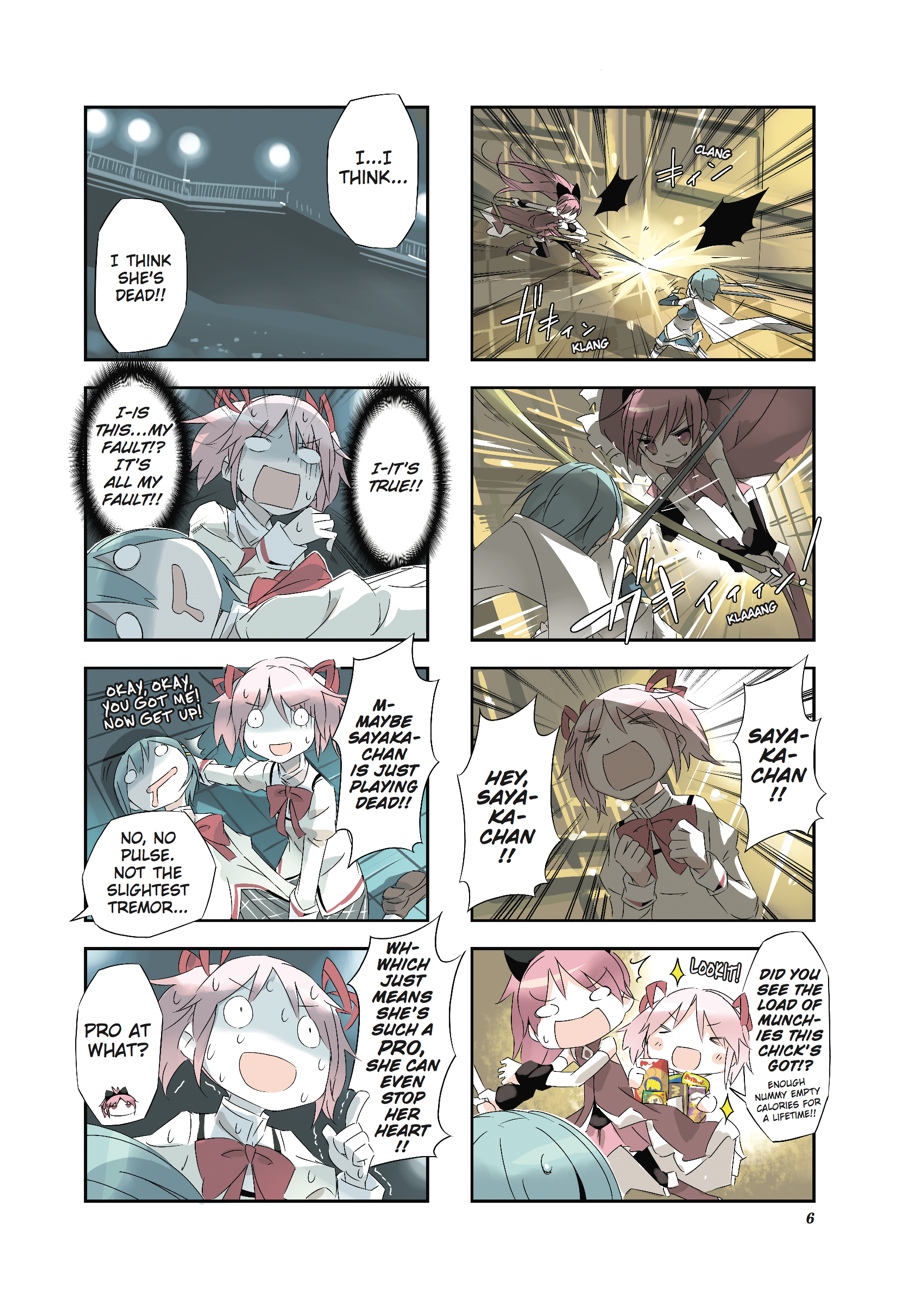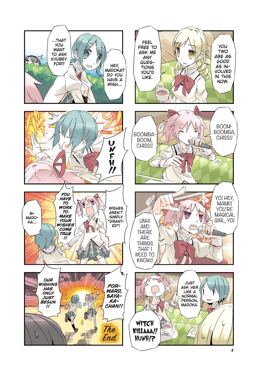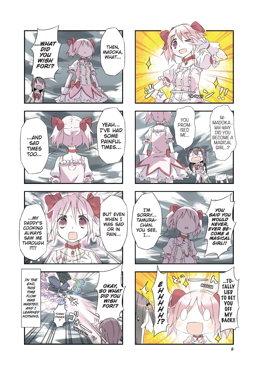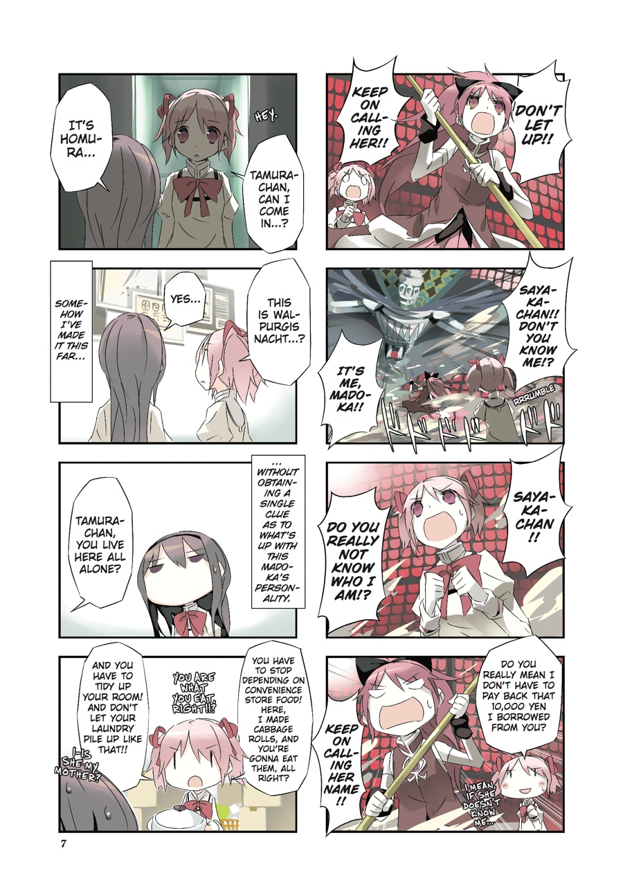 The life of a magical girl isn't all fighting witches and collecting grief seeds. When they aren't kicking butt, Homura Akemi and her friends face the same trials as normal high school girls! In this four-panel comedy, glimpse a sillier side of the girls from the bestselling Puella Magi Madoka Magica series!