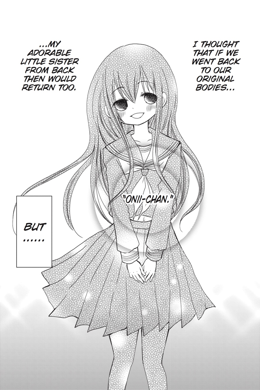 If I look upon my sister's endearing face, I'll die... Quite by accident, Youta and Hikaru have finally returned to their original bodies. It should be a happy event, but just because they've reverted back to normal doesn't mean their brother-sister relationship can so easily return to the way it once was. Hikaru is adamant not to lose the momentum she's gained over the past few weeks, but Youta is torn about seeing Hikaru as anything other than his little sister. Now that she's back in her own body and not his, though, it's impossible for him not to notice how attractive the whole Hikaru really is...