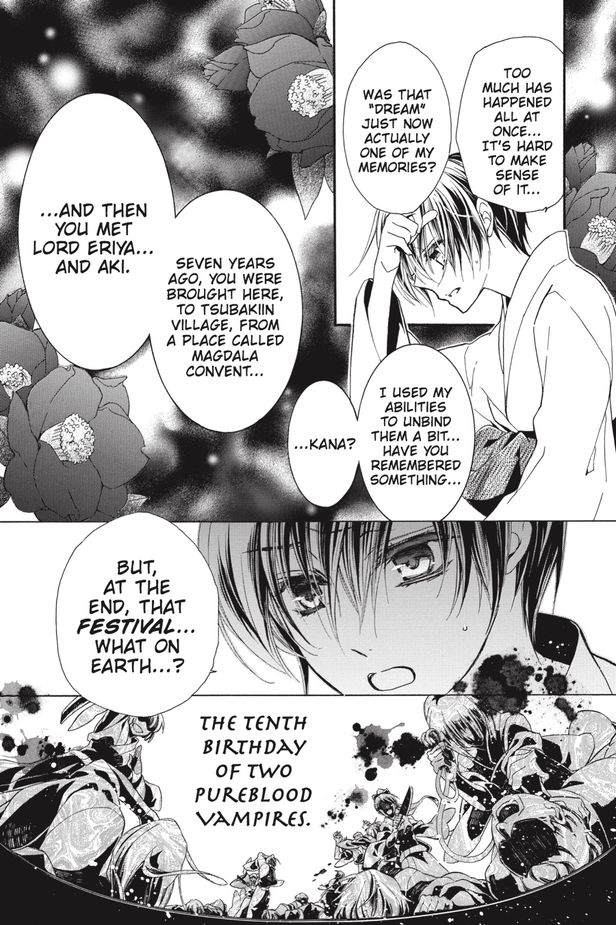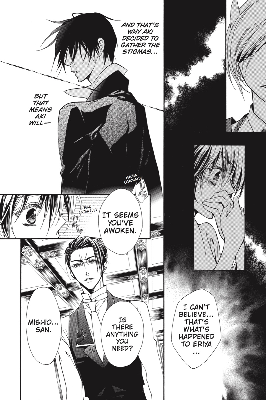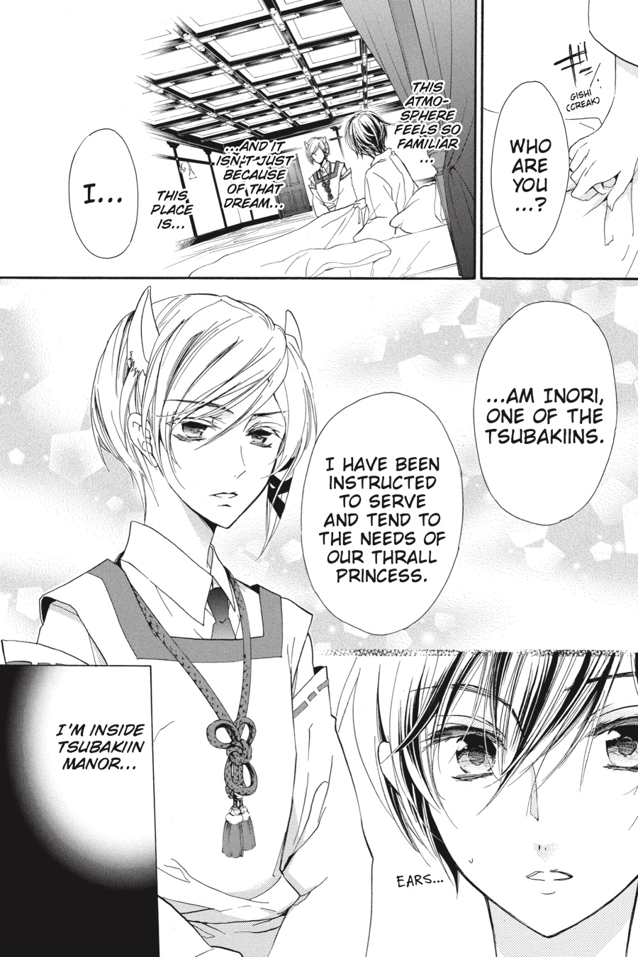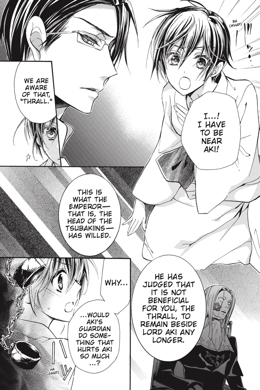 "Forgive me. I can no longer love you prettily......" After Kana regains her memories at Tsubakiin Manor, her feelings for Aki become colored by their shared past. Meanwhile, Aki offers Mishio a certain "deal" in order to rescue Kana. Where will Kana and Aki's rapidly developing destiny lead them?!!