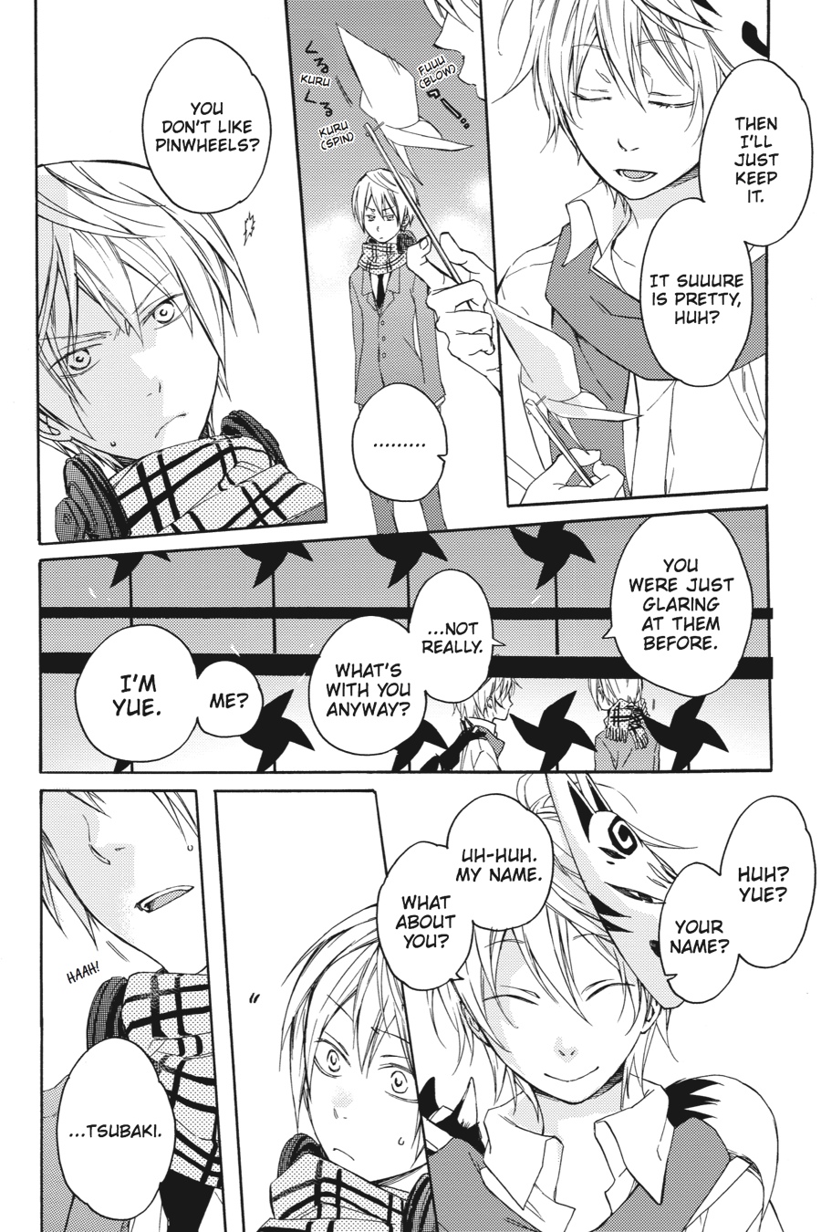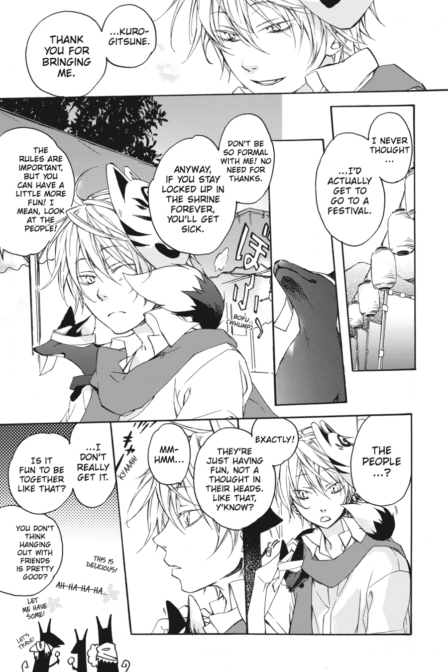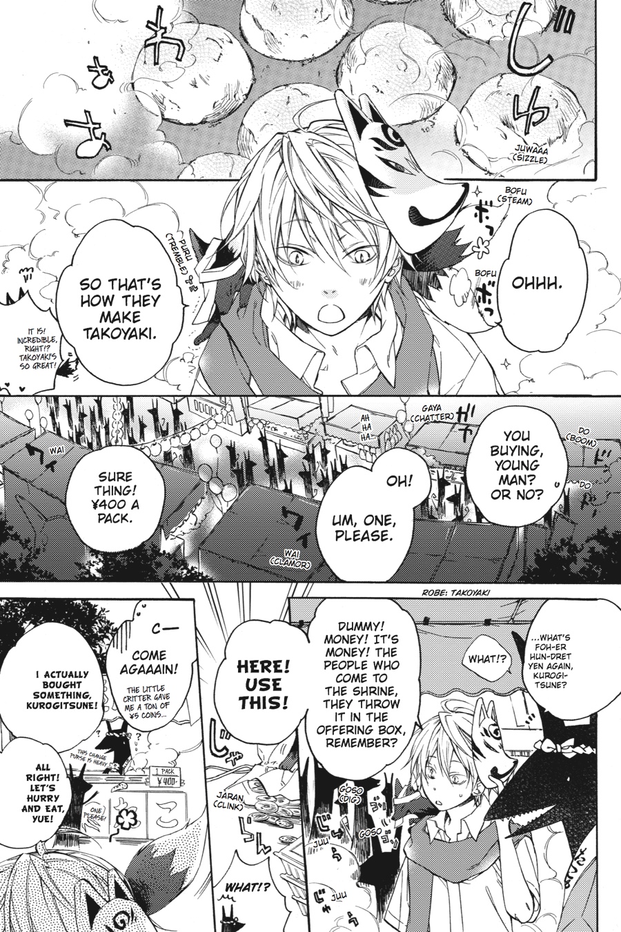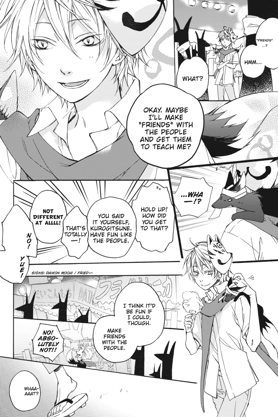 In the curious town of Utsuwa, where spirits known as ayakashi roam, lives Yue, a sheltered boy born and raised at the local shrine. On the night of the winter festival, Yue descends the mountain for the first time and encounters two boys. Though Yue wants nothing more than to become friends with his new acquaintances, Mikoto, the master of the shrine who rules over Utsuwa, declares that Yue must choose one of the boys as his "Meal"! Faced with this incomprehensible decision, what will Yue do?!