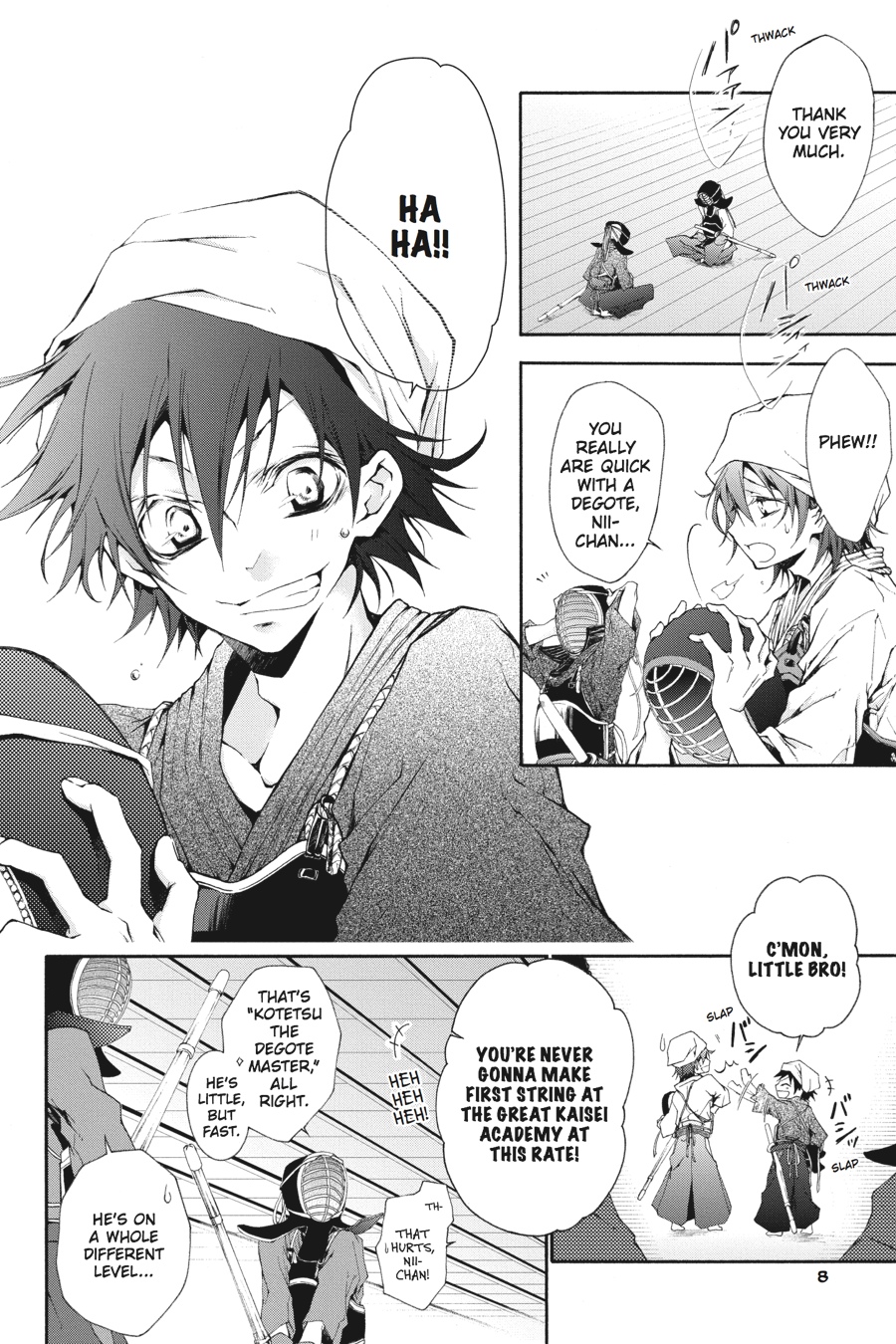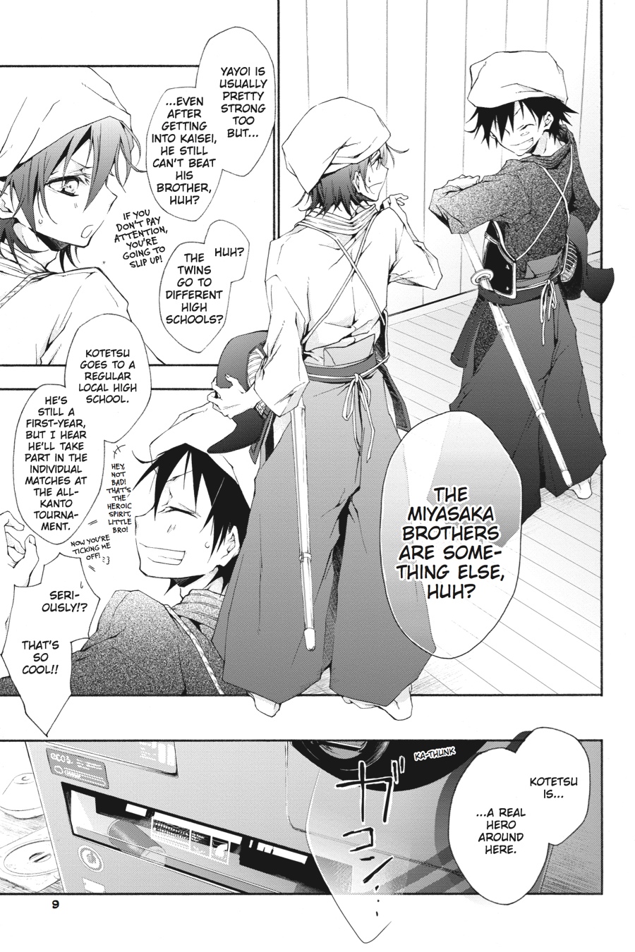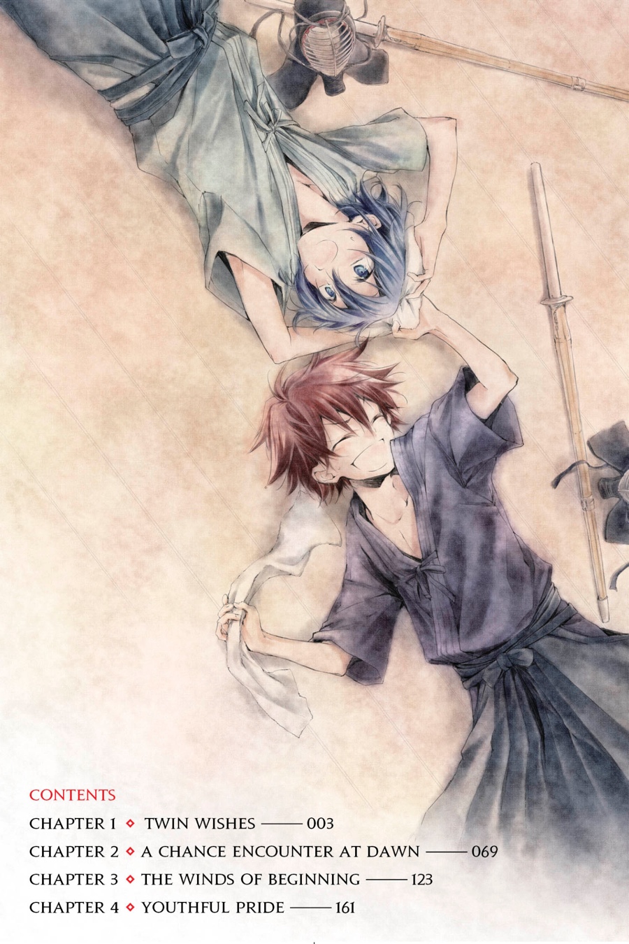 Kotetsu Miyasaka is a kendo prodigy. While his twin brother, Yayoi, practices the sport, though, he lacks his sibling's skill, enrolling in a different school to try and differentiate himself. When things go wrong at Yayoi's new school, though, Kotetsu finds himself caught up in a potentially life-or-death confrontation -- only to suddenly find himself swept back to Edo period Japan where the stakes are infinitely higher!Taking in by Souzou Sagara and his roshi band of samurai, Kotetsu must find a way to survive in the past and possibly help shape Japan's future!