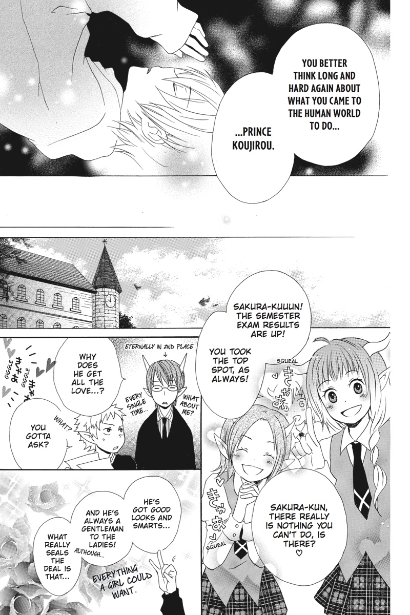 Demon prince Koujirou Sakura comes to Earth, enrolling in high school, on a mission to find the human who will threaten the future of the demon realm...and steal their souls! But with no clue as to this human's identity, Koujirou is at a loss. To make matters worse, the boys' dorm at his new school is full, and he's forced to live off campus with a girl! Oh, the humanity...!