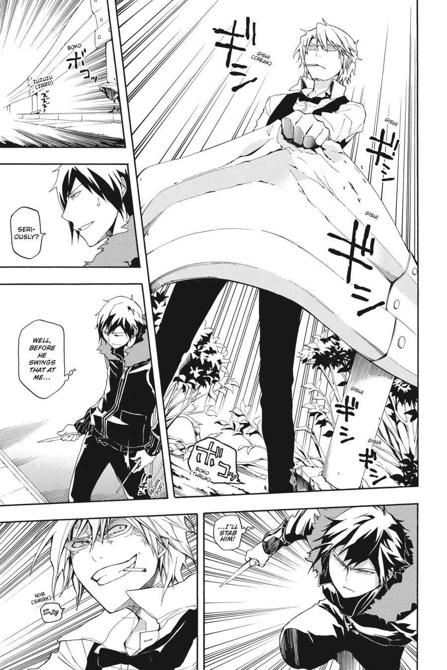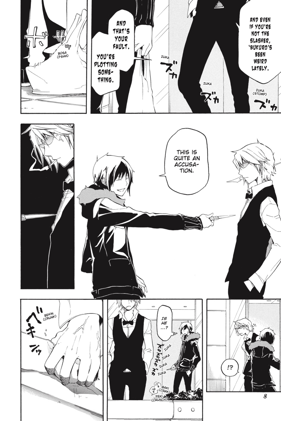 We love all of humanity. Mysterious chat room messages, all posted under the name "Saika," profess love for humanity - and for one man in particular. Saika's target: Shizuo Heiwajima!! Over fifty people have been struck in the worst case of serial slashings in the history of Ikebukuro. But the slasher's victims have tasted not only the blade, but also the vision of their attacker. A vision of love, love, love that can only be realized when their own blades have pierced the bodies of their beloveds. Shizuo braces himself for a battle to the death in the shocking climax of the Saika Arc!!