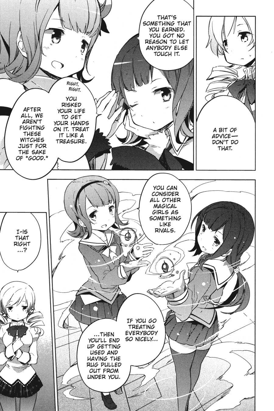 Mami's warm personality has made it difficult for her to adjust to her solitary life as a magical girl, where survival often takes precedence over kindness. When she meets Kyouko Sakura, a fellow lone wolf, she is excited at the prospect of working together with another magical girl and forging a friendship built on ultimate trust. But many are the sacrifices all magical girls must make, and the consequences of Kyouko's choice are only just becoming clear to her. When the pain becomes unbearable, will Kyouko remain standing beside Mami as a force for the greater good...?