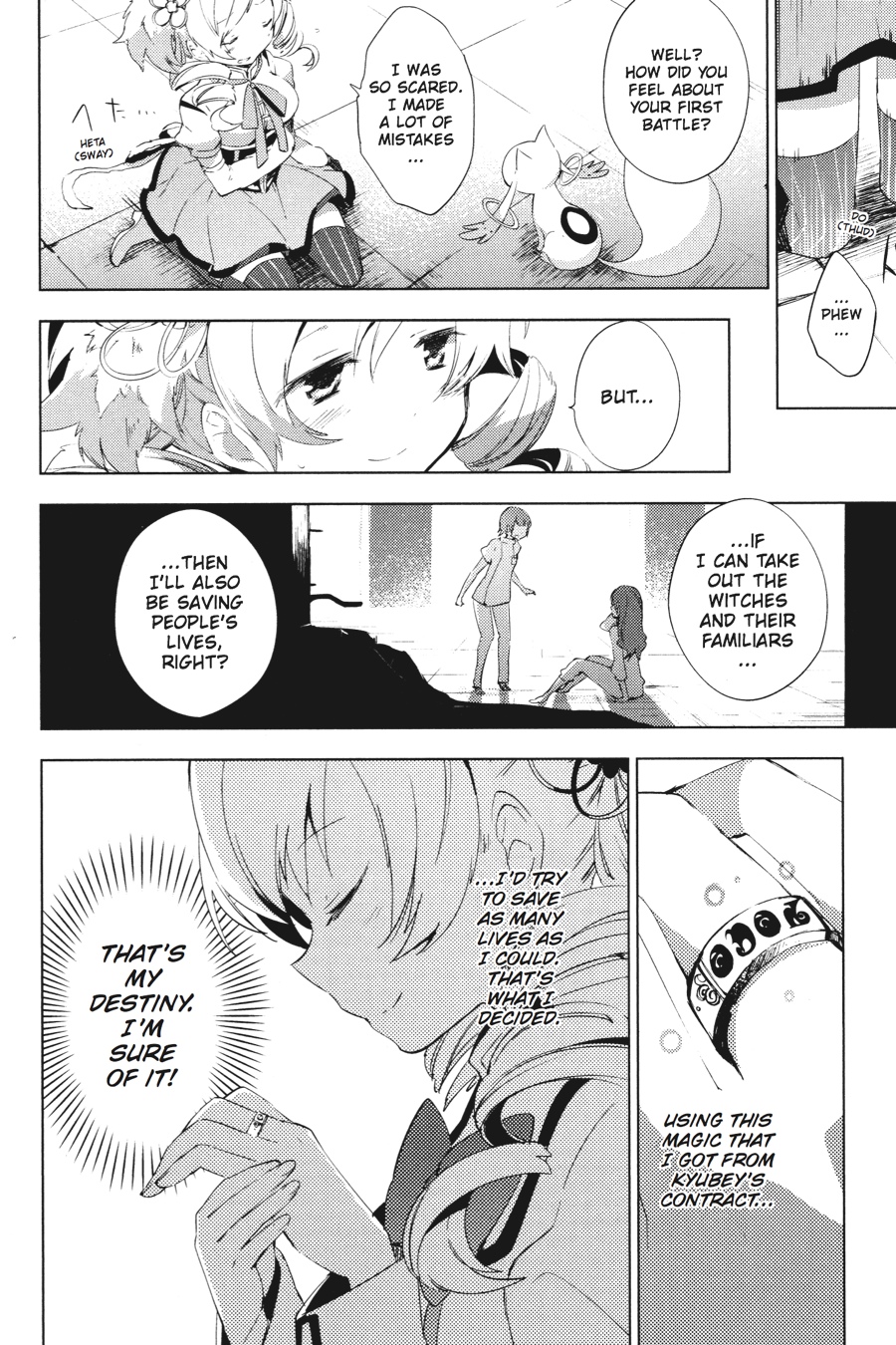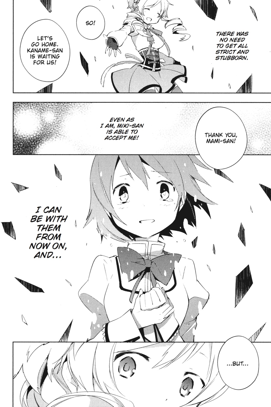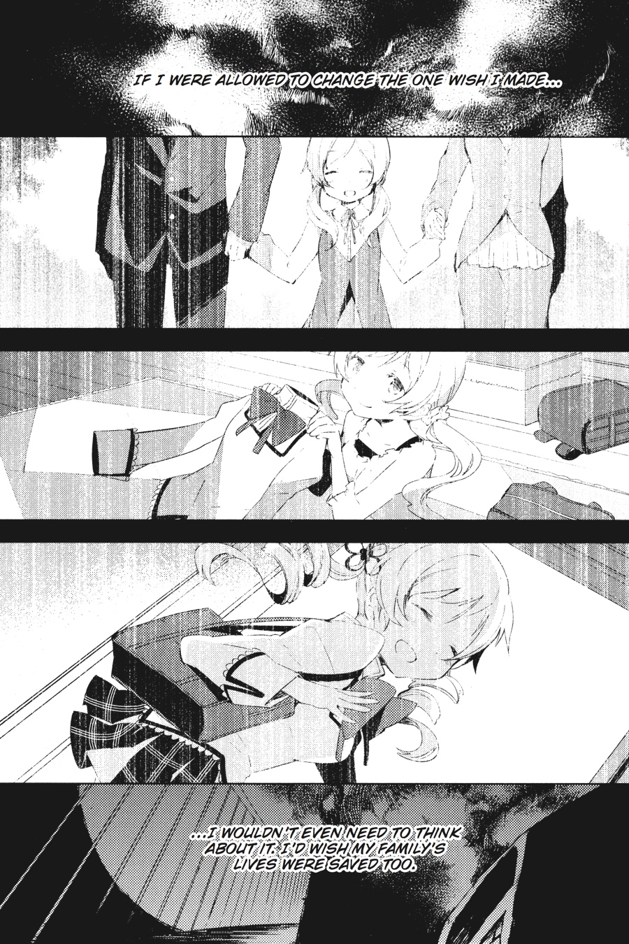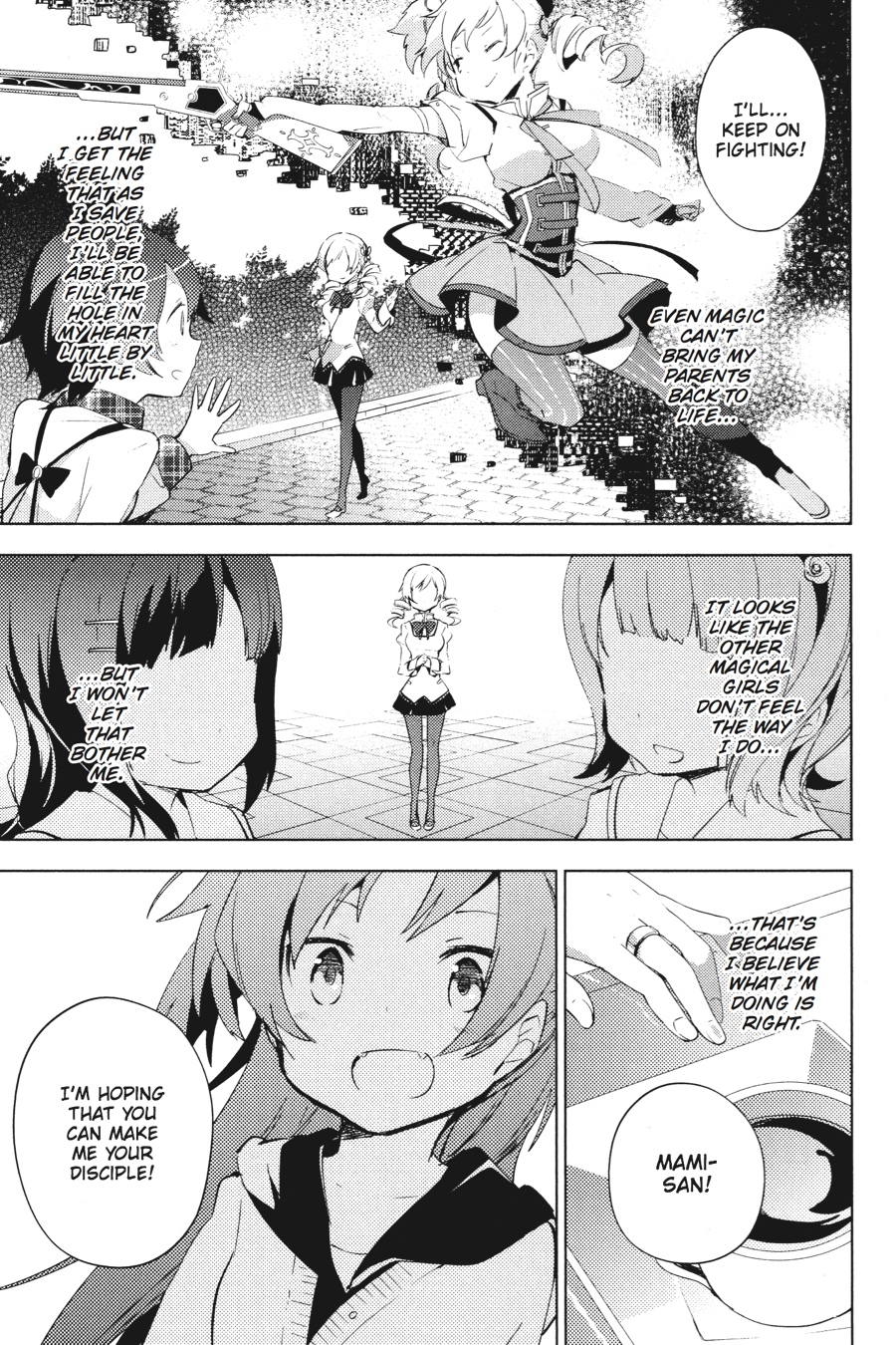 When she fails to save Sayaka, Mami is overcome by despair and loneliness. With the fate of every Magical Girl made clear before her, Mami chooses to embrace death rather than fight on. As Mami sets out to deliver herself into the hands of the witch, Kyouko rushes to confront her former mentor. Mami's soul gem steadily darkens--soon her doom will be certain. Can Kyouko give Mami a reason to fight on before her gem turns jet-black?