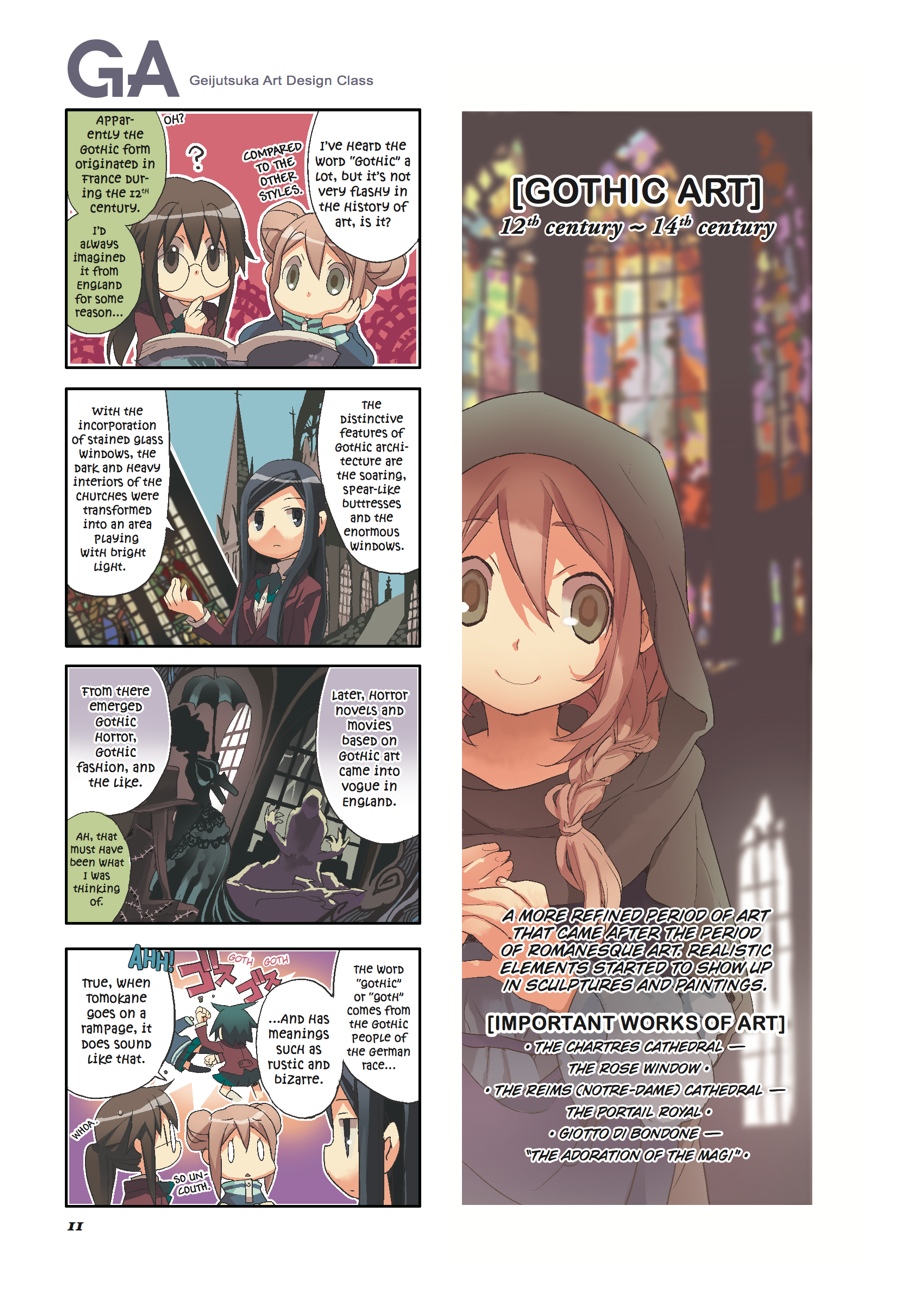 As autumn descends on Kisaragi and her colorful GA friends, the gang goes on a trip...through time! Art history takes center stage as festival season approaches at school, providing the girls with numerous opportunities to display their talents (and madcap antics)! The year might be winding down, but the spirit of the GA class is only just kicking into high gear!
