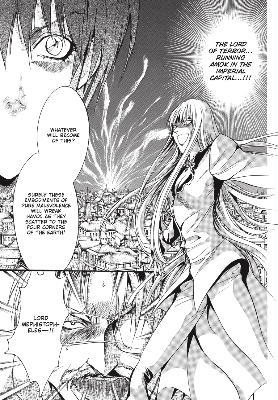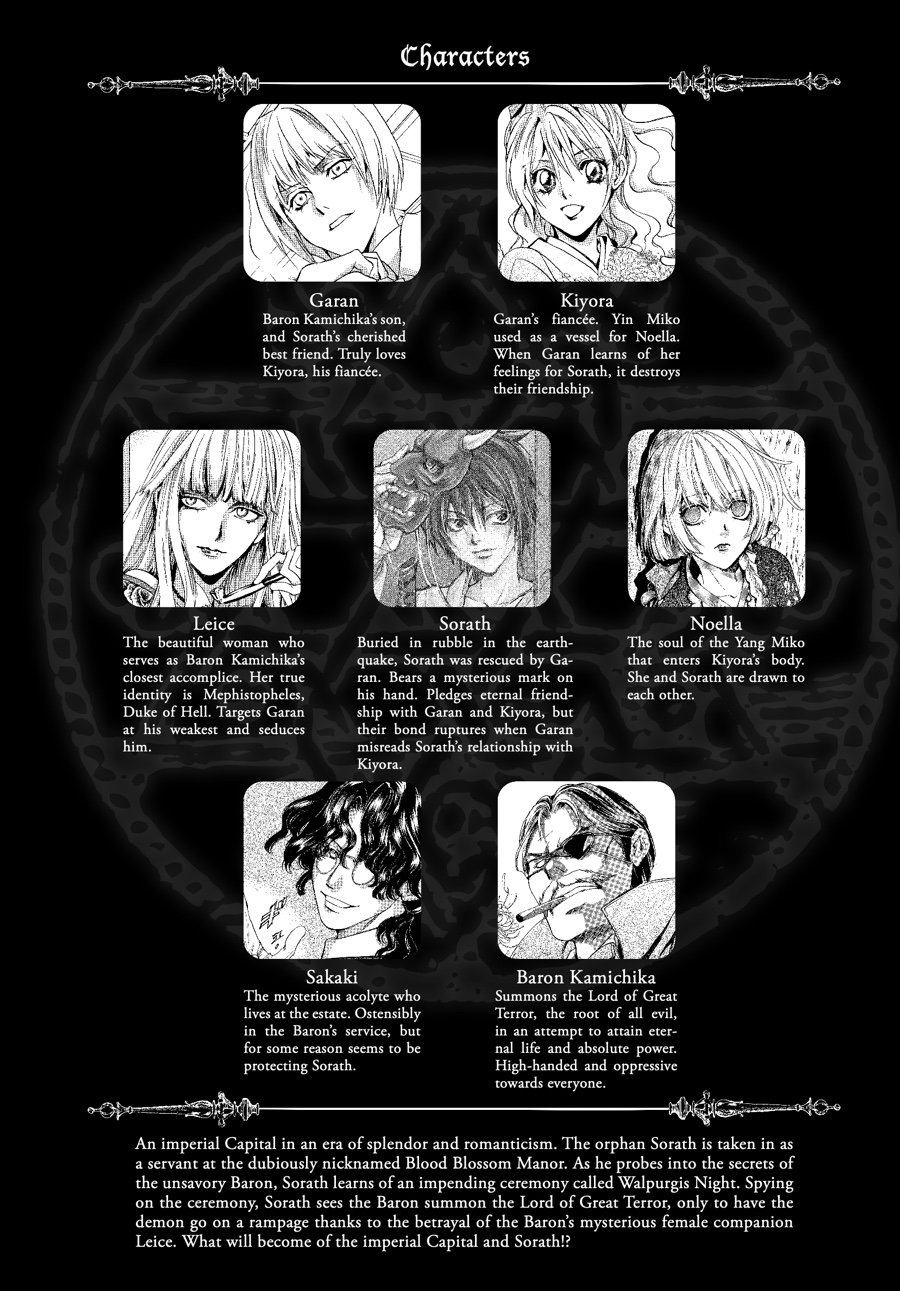 From the ultimate nightmare that is Walpurgis Night, Sorath escapes to modern Japan. There, he lives in an unconventional household that includes Nonoha, the daughter of his dearest friend, and Mephistopheles, the Duke of Hell, who bides his time for a chance to kill his master. This time, these hands will protect my loved ones-- That's Sorath's wish, but somehow Nonoha is slipping through his fingers. Will Sorath's hands once again be stained by the blood of the person he cherishes most?