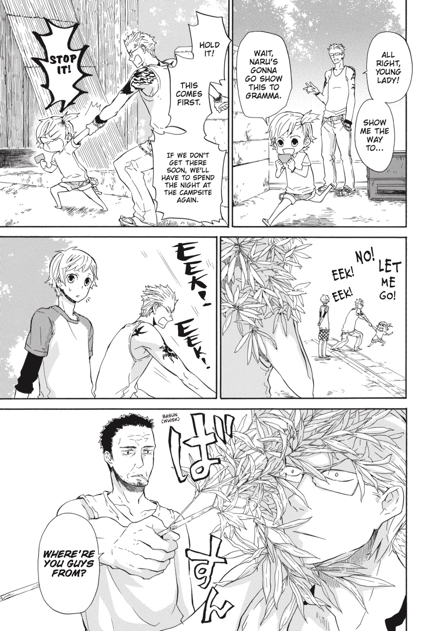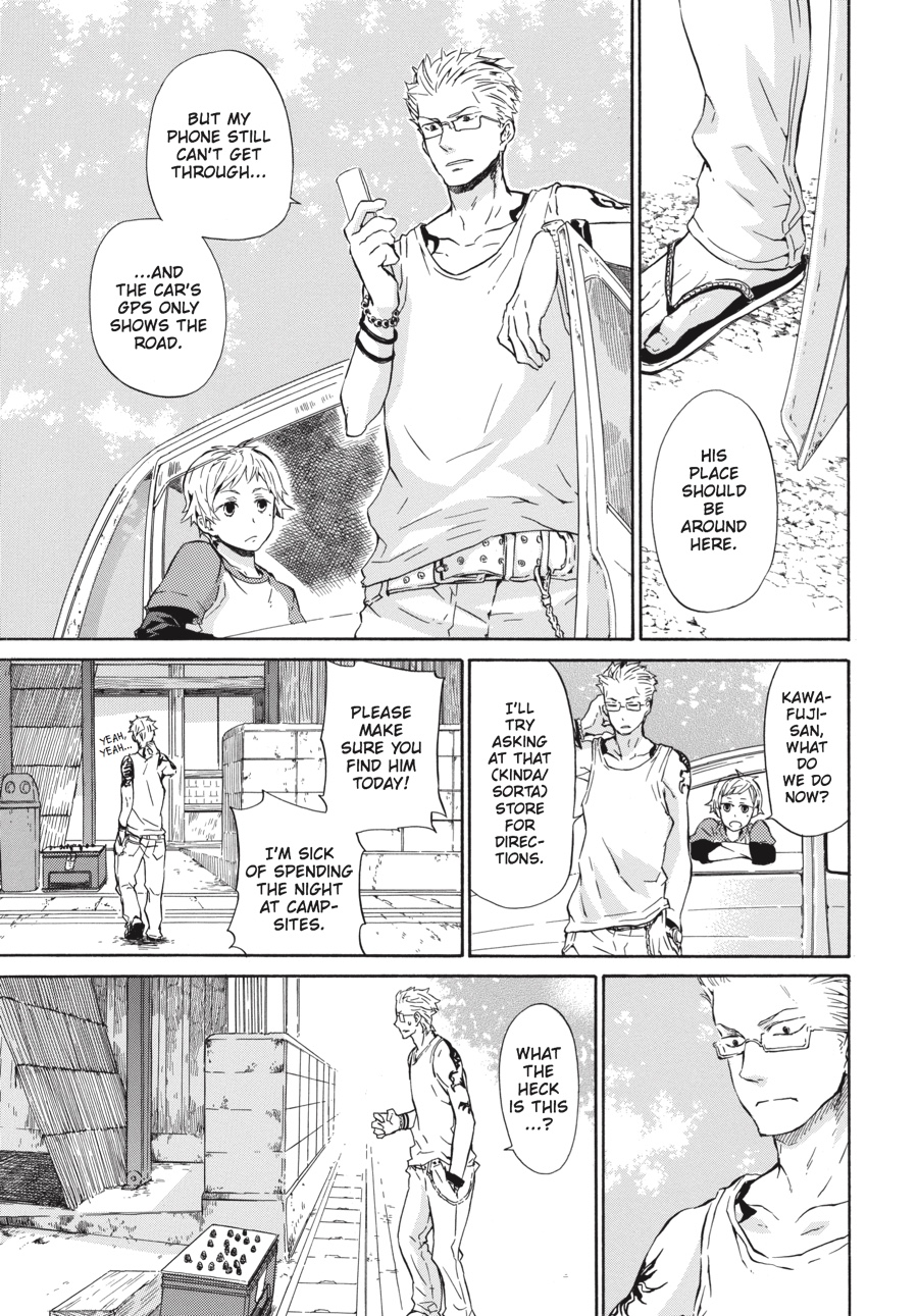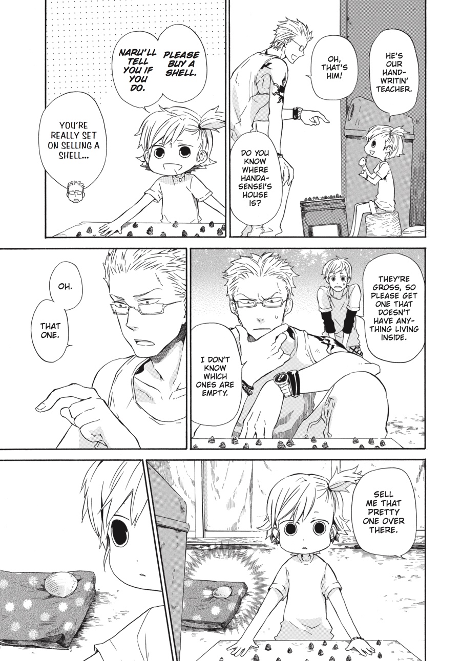 What?! The car's GPS only shows the road...!! Kawafuji, the only friend of handsome young calligrapher Seishuu Handa, has come to visit the island...!! However, the lack of cell phone signal and any useful landmarks is preventing the two of them from meeting up!! And who is this Kyousuke Kamisaki who's come along for the ride...? There's a storm brewing in the third volume of this sophisticated (?), heartwarming island comedy!!