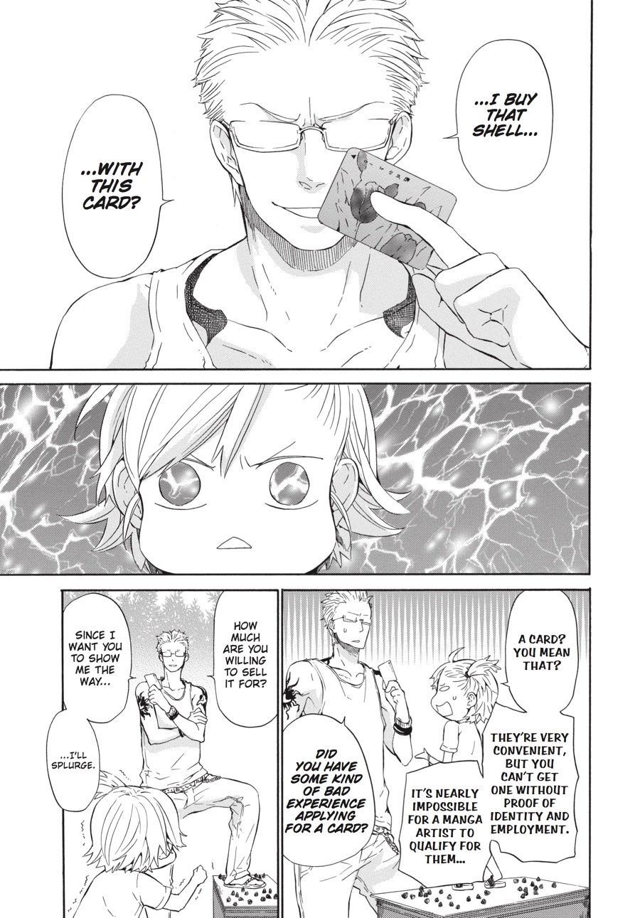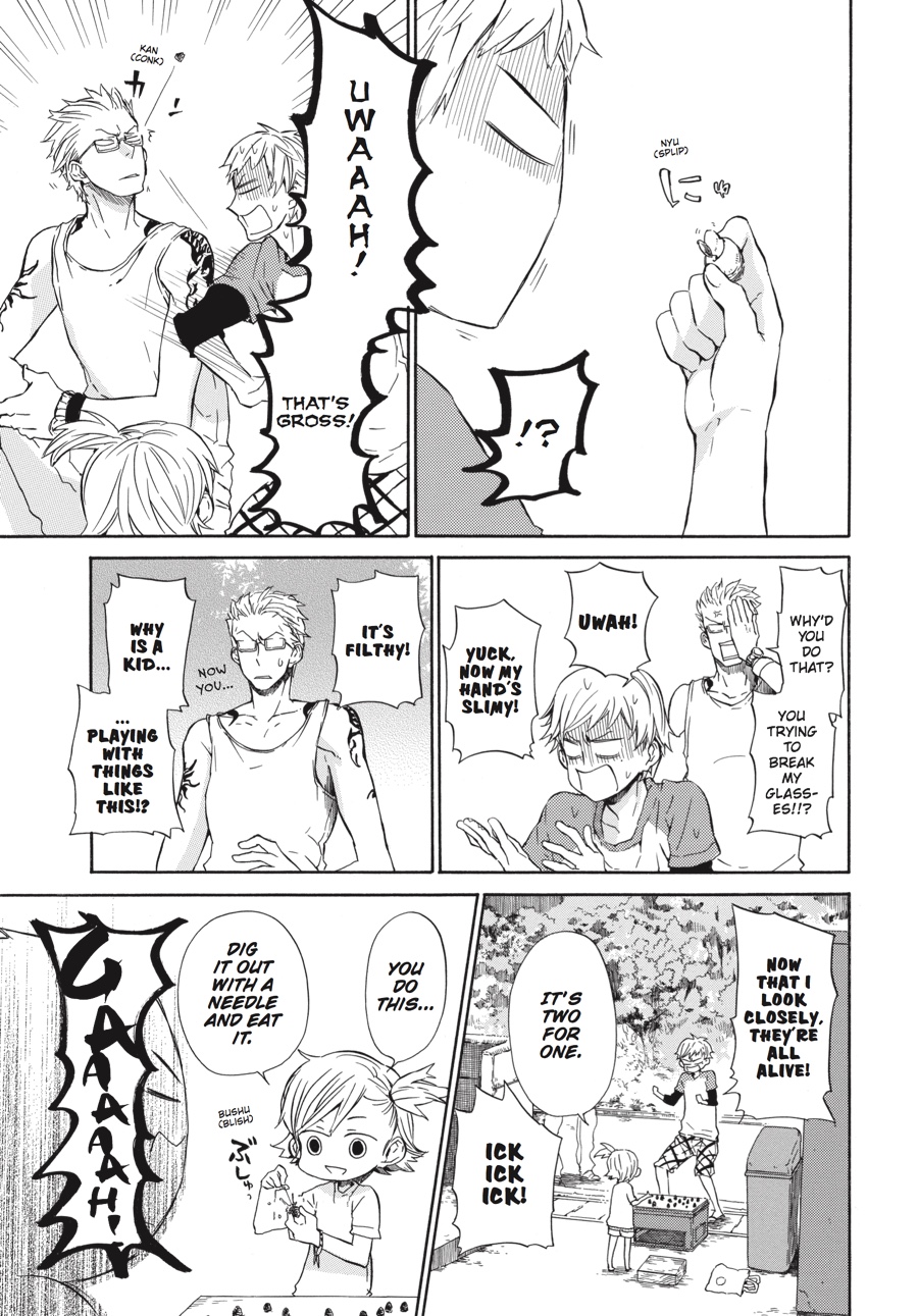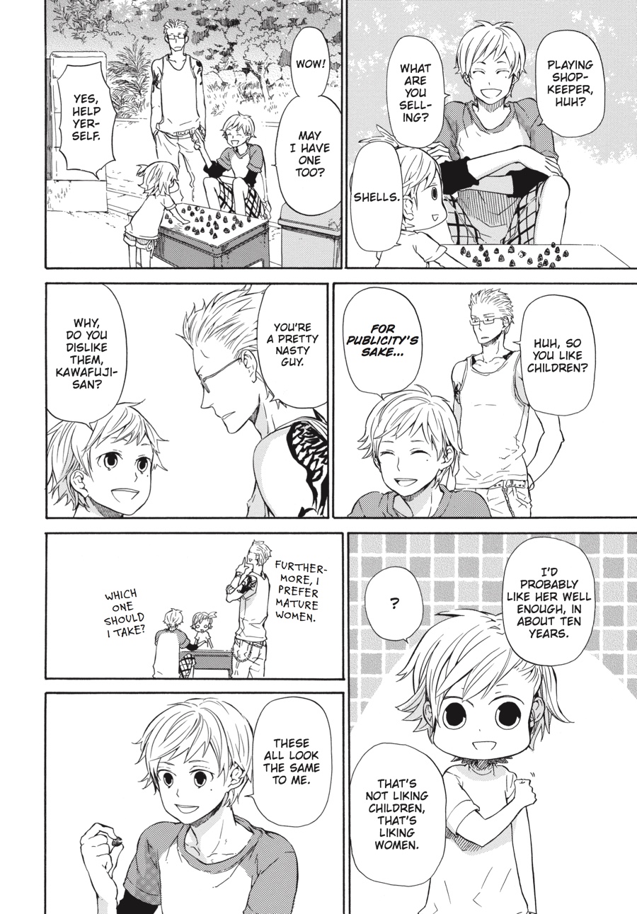 What?! The car's GPS only shows the road...!! Kawafuji, the only friend of handsome young calligrapher Seishuu Handa, has come to visit the island...!! However, the lack of cell phone signal and any useful landmarks is preventing the two of them from meeting up!! And who is this Kyousuke Kamisaki who's come along for the ride...? There's a storm brewing in the third volume of this sophisticated (?), heartwarming island comedy!!