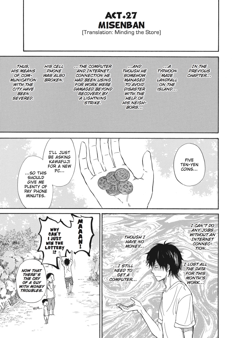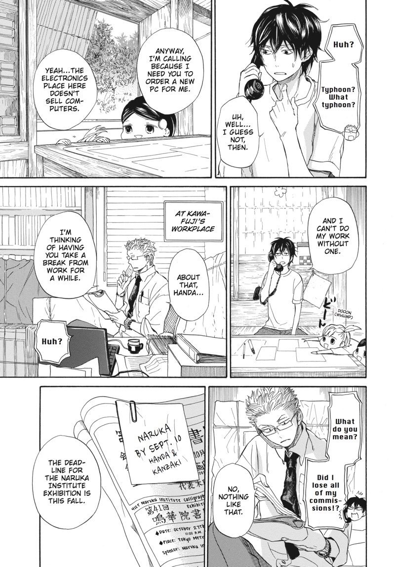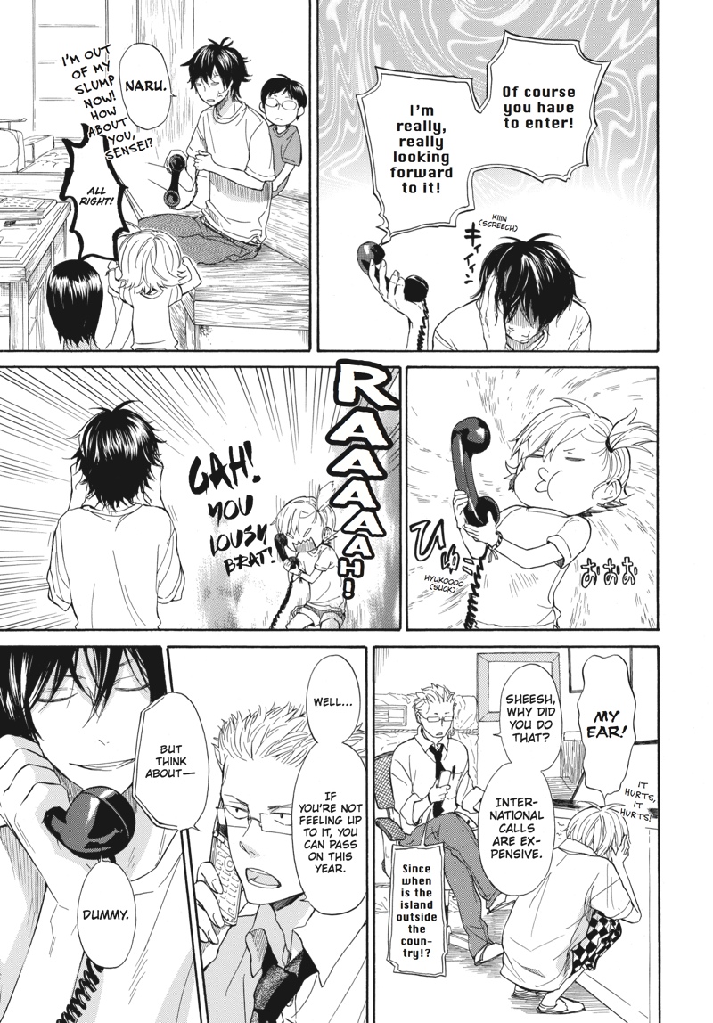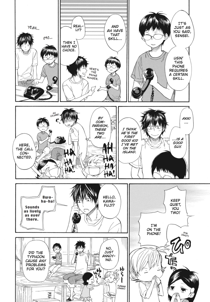 An international call...? ...Since when is the island outside the country?! Aiming for an autumn calligraphy exhibition, handsome young calligrapher Seishuu Handa sets out to get in touch with his creative side. Meanwhile, a man whose appearance screams "yakuza," landing him well out of place on the peaceful island, puts in a "request" to have Handa write the name on his boat...?! Kick back like a local and enjoy the fourth volume of this heartwarming island comedy!