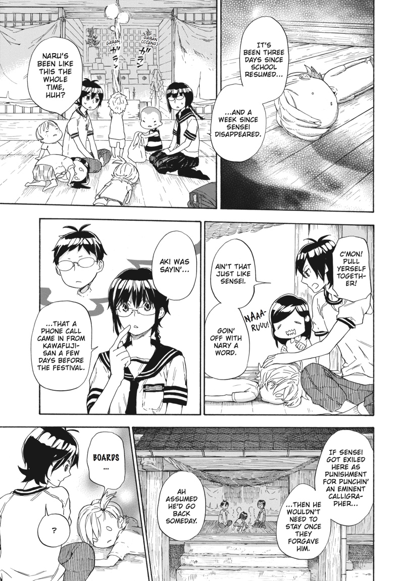 I can't write, can't write, can't write at alllllllll!! Handsome young calligrapher Seishuu Handa has returned to Tokyo for a calligraphy competition. But being away from the island is preventing him from perfecting his work...?! Meanwhile, Sensei's sudden absence is causing turmoil for his island neighbors! The Sensei of the city and the people of the island unfurl a mature, heartwarming island comedy as a bountiful autumn approaches in Volume 6!!