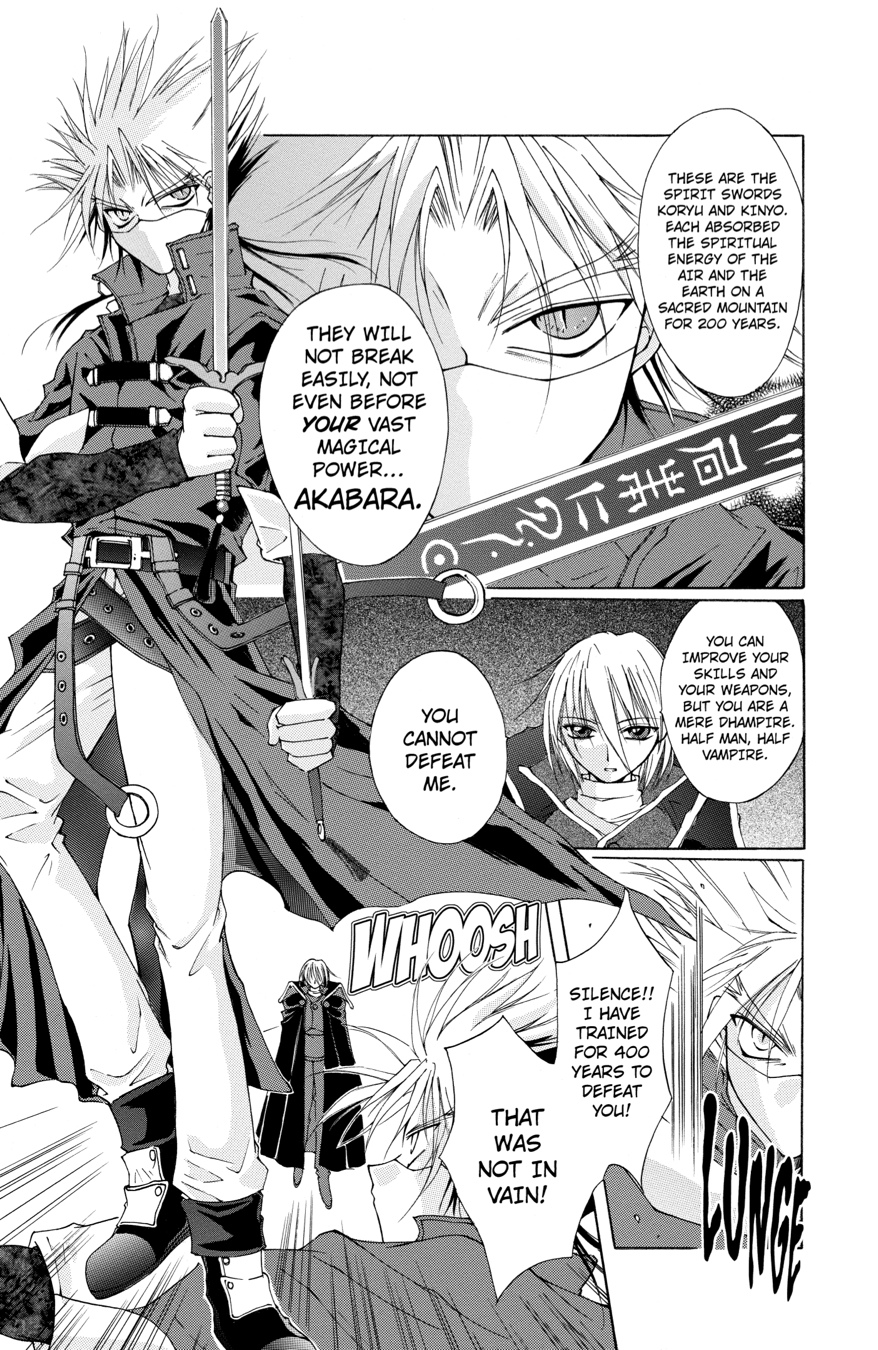 Thousands of years ago, Vampire King Akabara "Red Rose" Strauss lost both his kingdom and his queen. Since humans were unable to kill the queen, they sealed her away, erecting thousands of fake seals so that the king would never find her true location. Despite being pursued by relentless dhampires, Akabara continues to search for his queen to this day...Akabara's quest takes a sinister turn when an entity called the Black Swan appears. The Black Swan inhabits the body of a young human girl every 50 years, giving her the power to destroy the Vampire King and his queen. With each incarnation the Black Swan grows stronger--will the 49th Black Swan mean the end of Akabara?