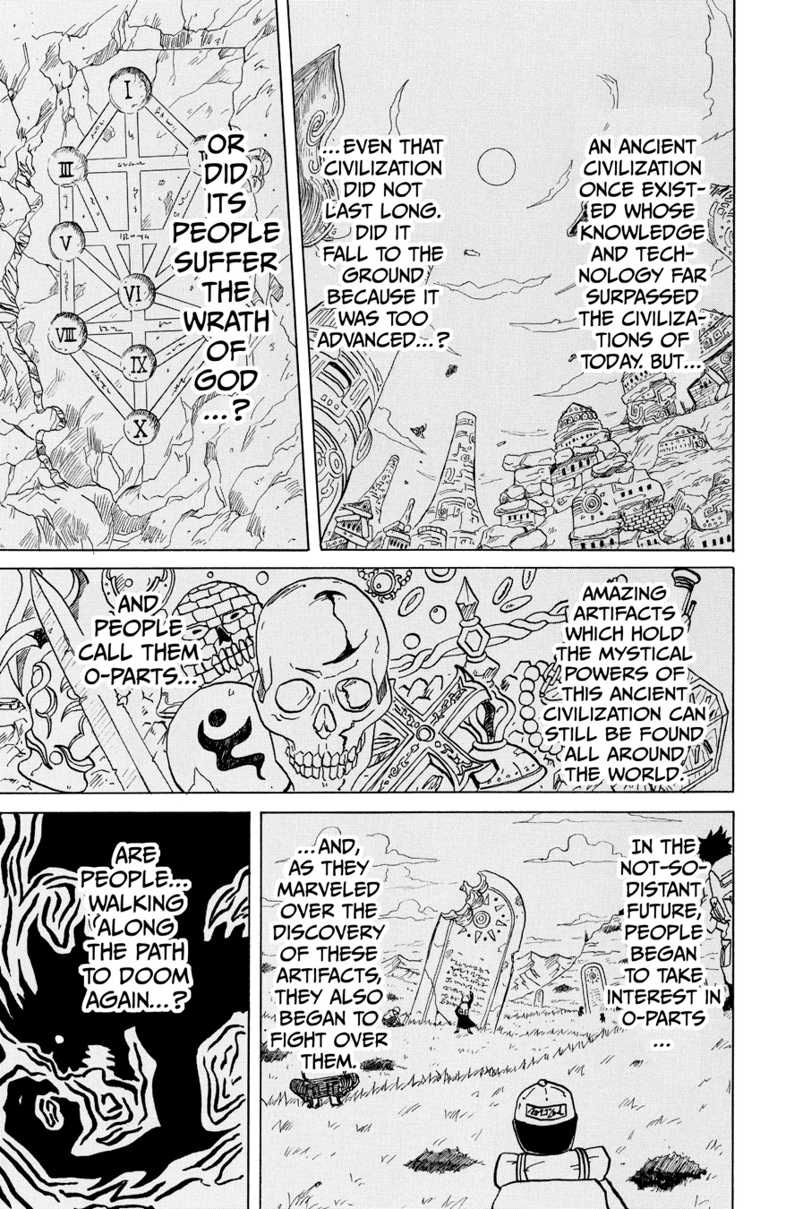 Jio is a young boy with a tragic past who only trusts one thing in the world: money. Little does he suspect that he is also a very powerful O.P.T., and inside him sleeps a demon of incredible ferocity. He meets up with a girl named Ruby, and together they decide to embark on a dangerous quest to discover as many O-Parts as they can. Will Jio help Ruby realize her dream of becoming a world famous treasure hunter? More importantly, will Ruby help Jio realize his dream--of world domination?!
