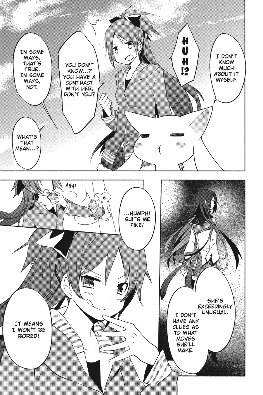 While Madoka continues to deliberate over the decision to join Akemi as a magical girl, her best friend, Sayaka, seizes the chance to wish for the recovery of the boy she loves. But when Sayaka is caught in a territory dispute with a more experienced (and more deadly) magical girl named Kyouko, Madoka is reminded that being a magical girl is more than a matter of donning a frilly costume and fighting evil...it is also a matter of life and death!