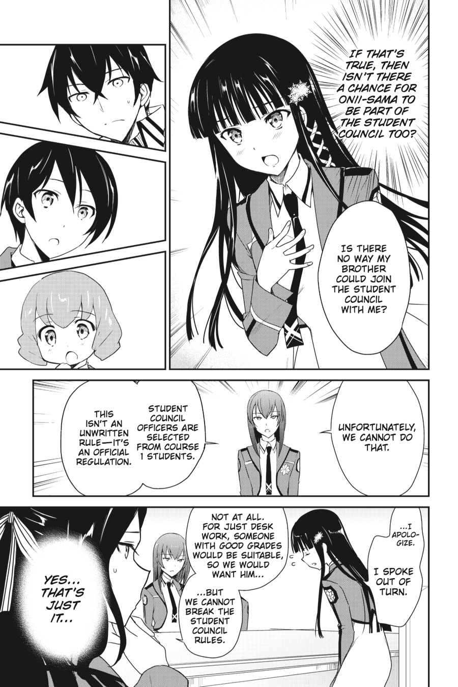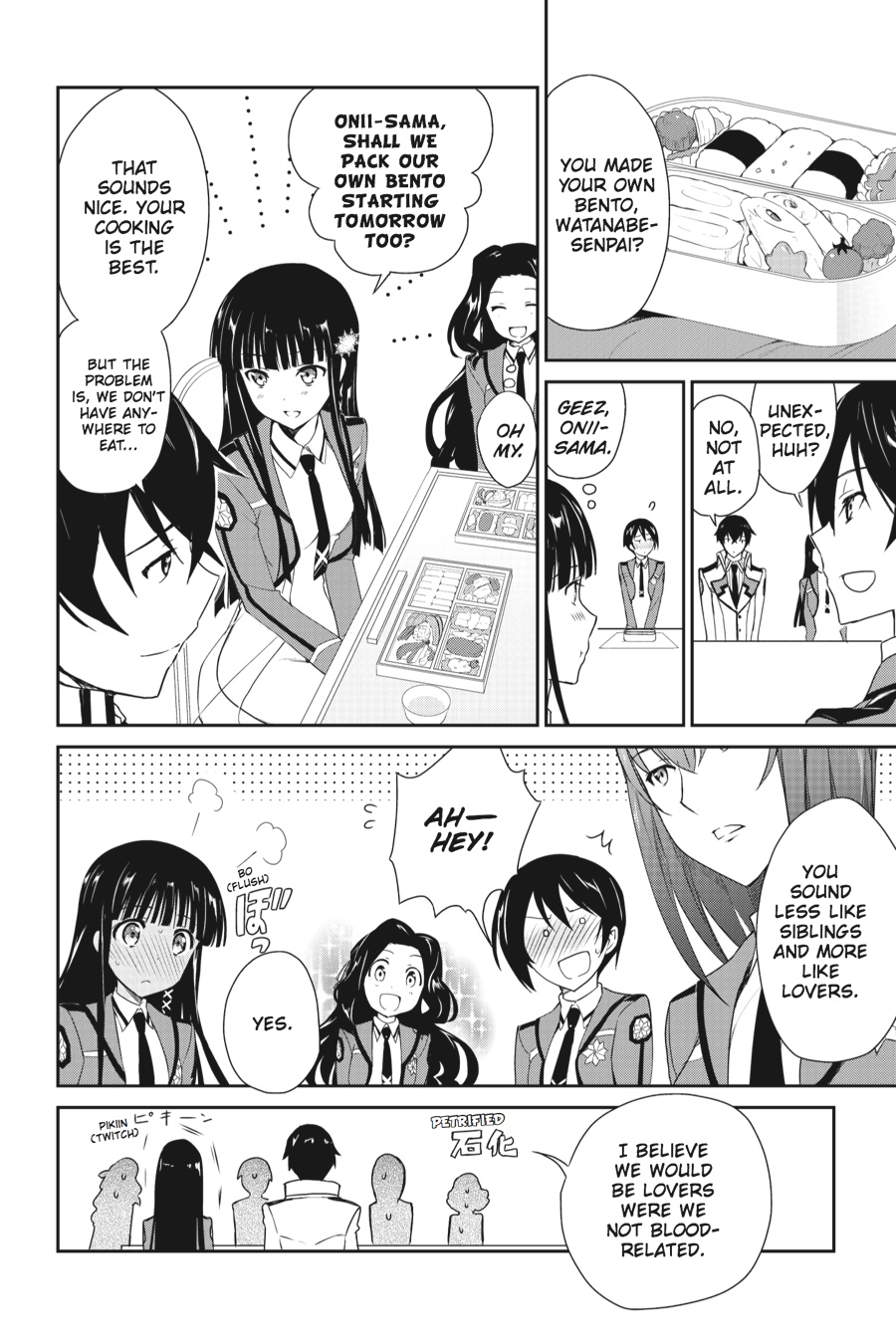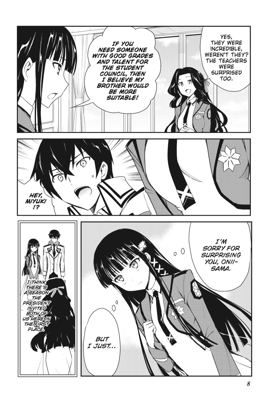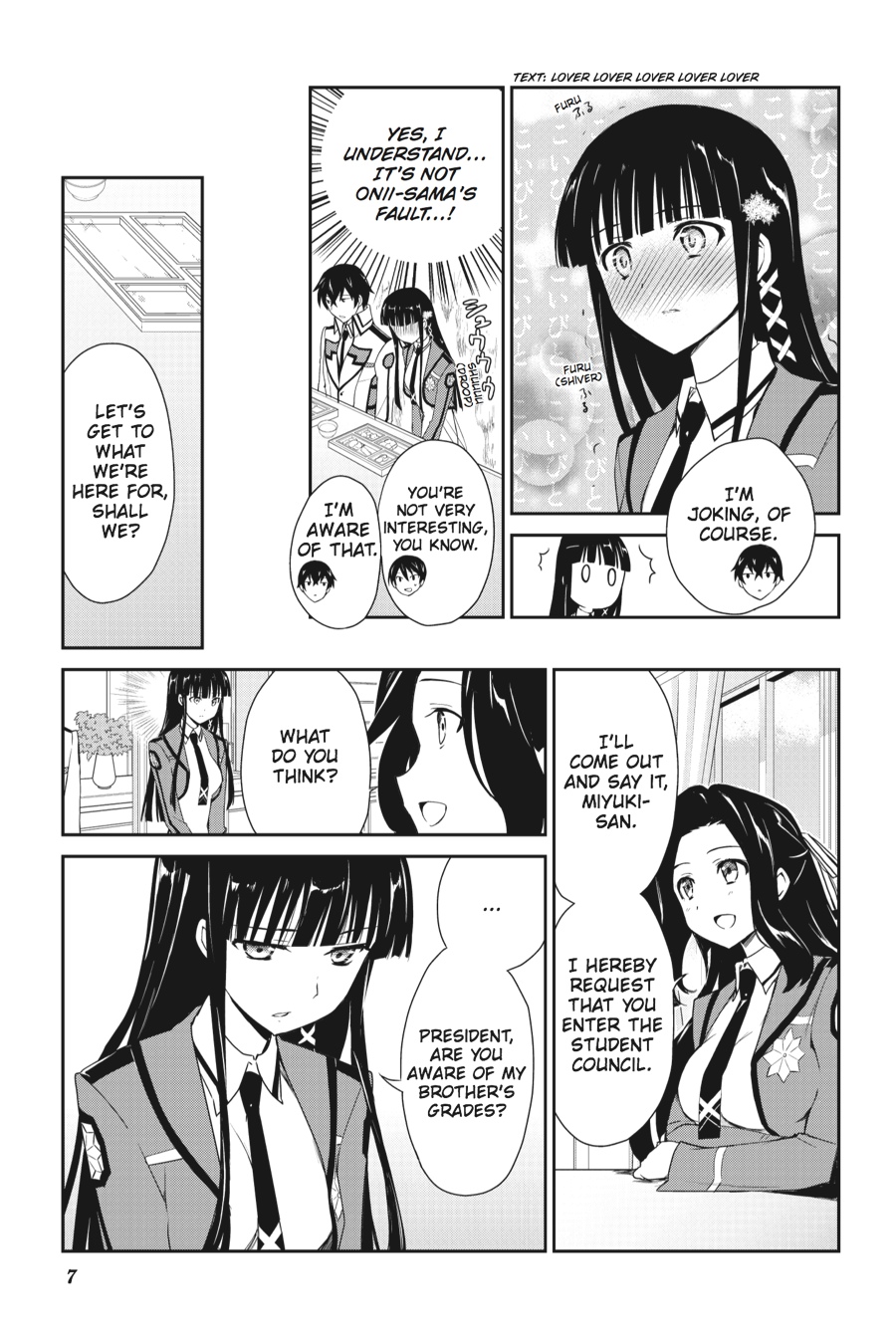 It hasn't taken long for Miyuki and her brother Tatsuya to start drawing attention at First High, though for very different reasons. When the student council takes an interest, the devoted Miyuki isn't about to sit idly by while her precious brother's talents go unrecognized! But can these two siblings change people's attitudes in a system specifically designed to separate the "Blooms" from the "Weeds"?
