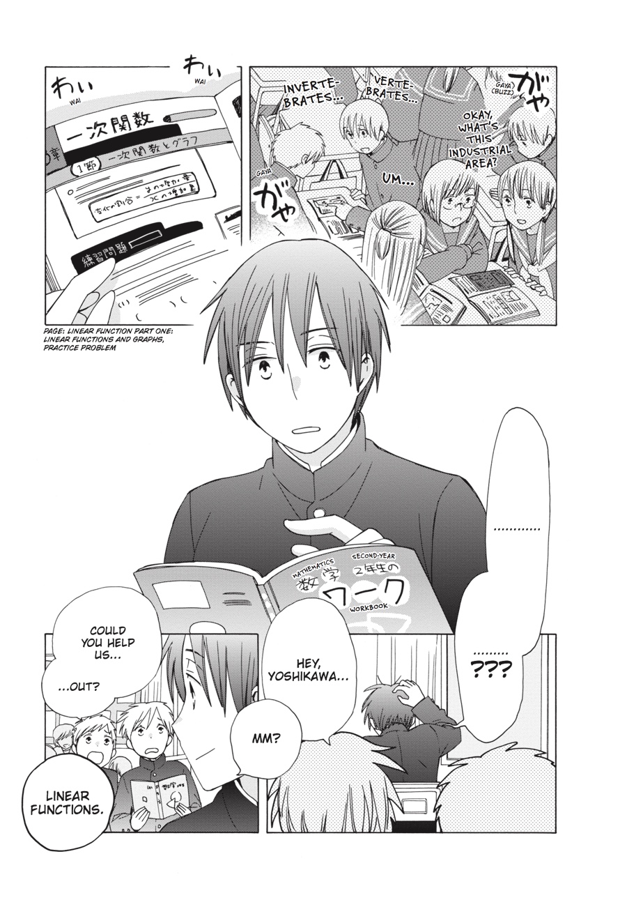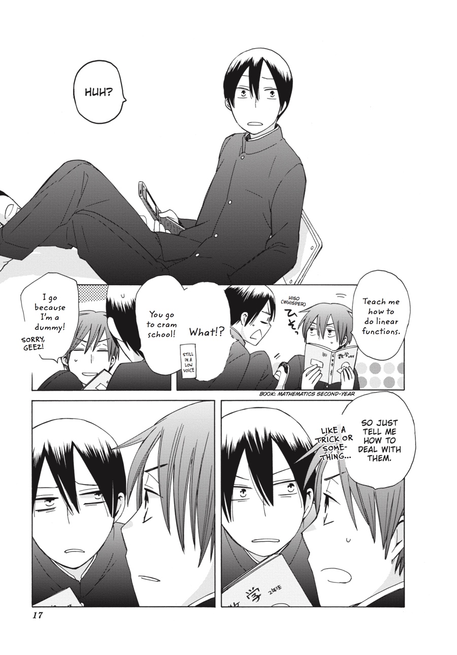 On the heels of the sports festival comes the biggest middle school event yet--the class trip! But before Kazuki and Kanata can worry about keeping up appearances in Kyoto, they'll have to pass their exams. When Kazuki's math skills don't measure up to his--or Kanata's--model-student standards, though, the only person he can ask for help is...Shiki-san?!