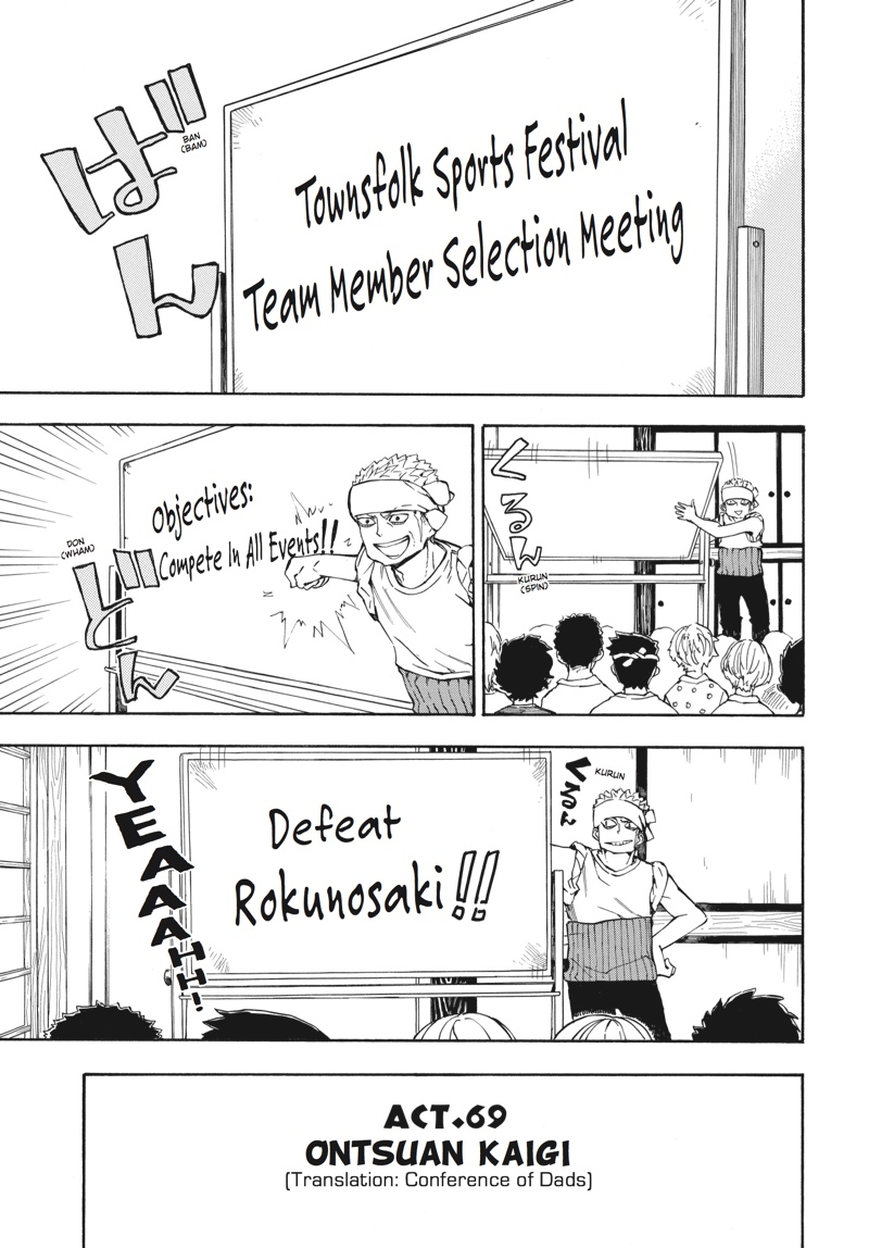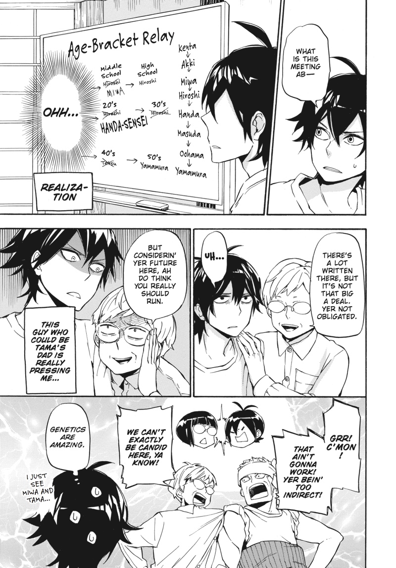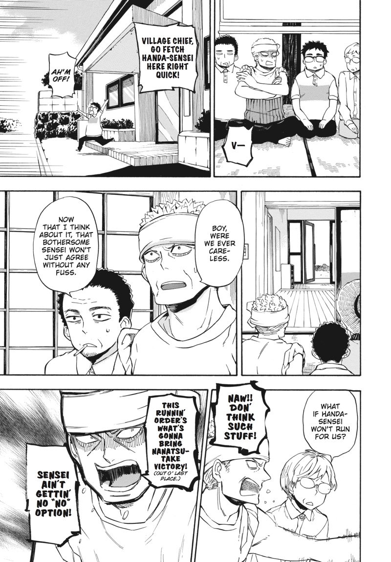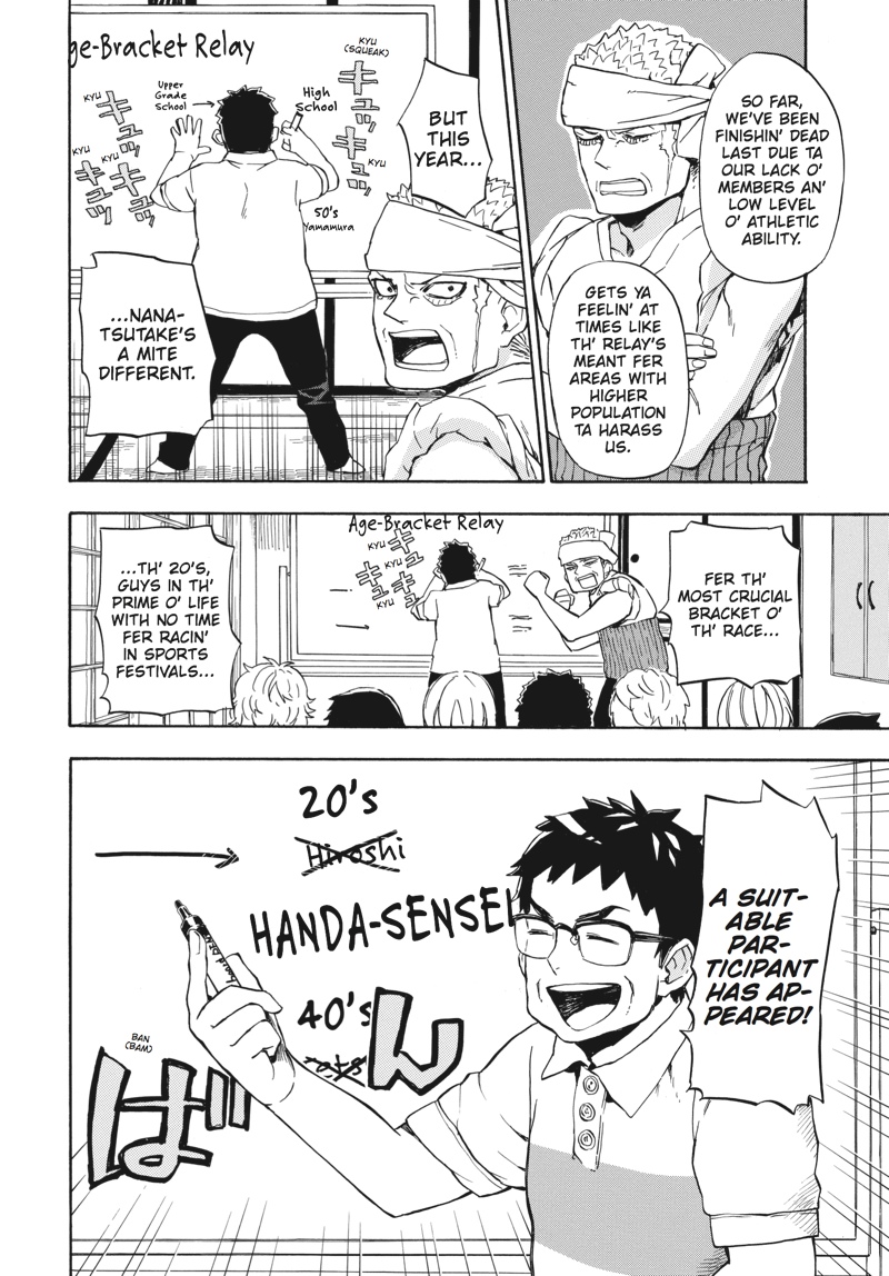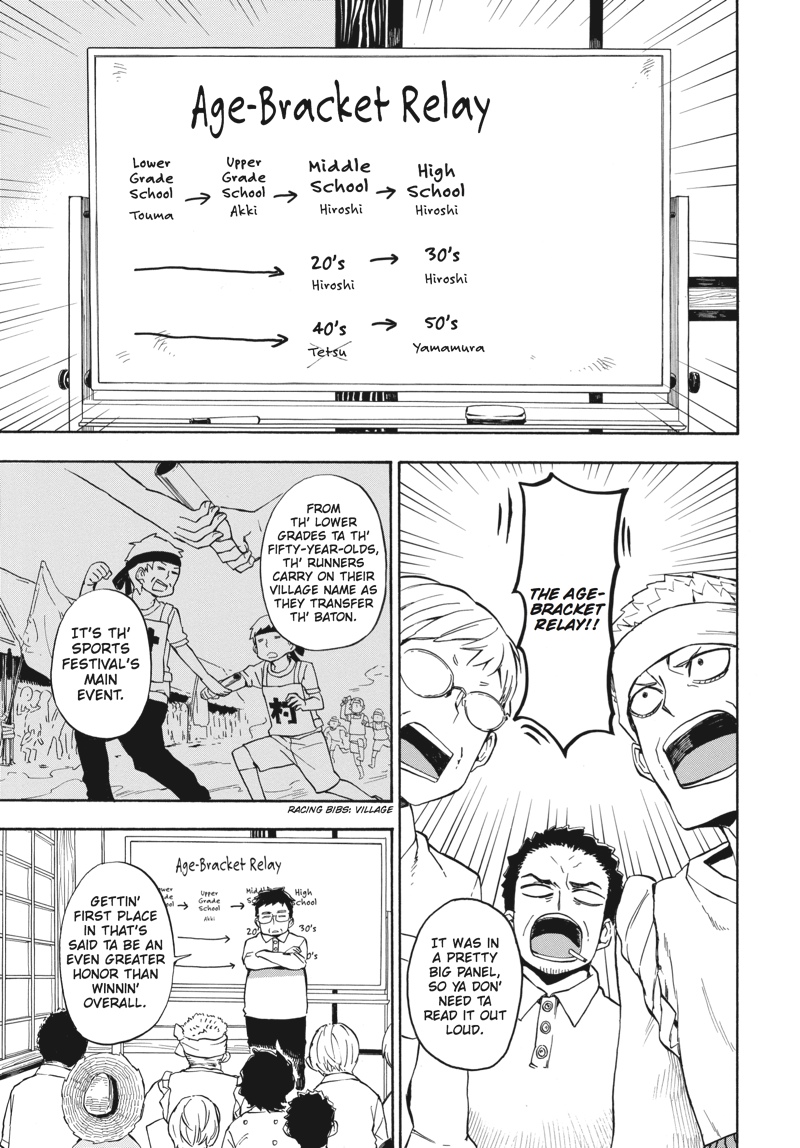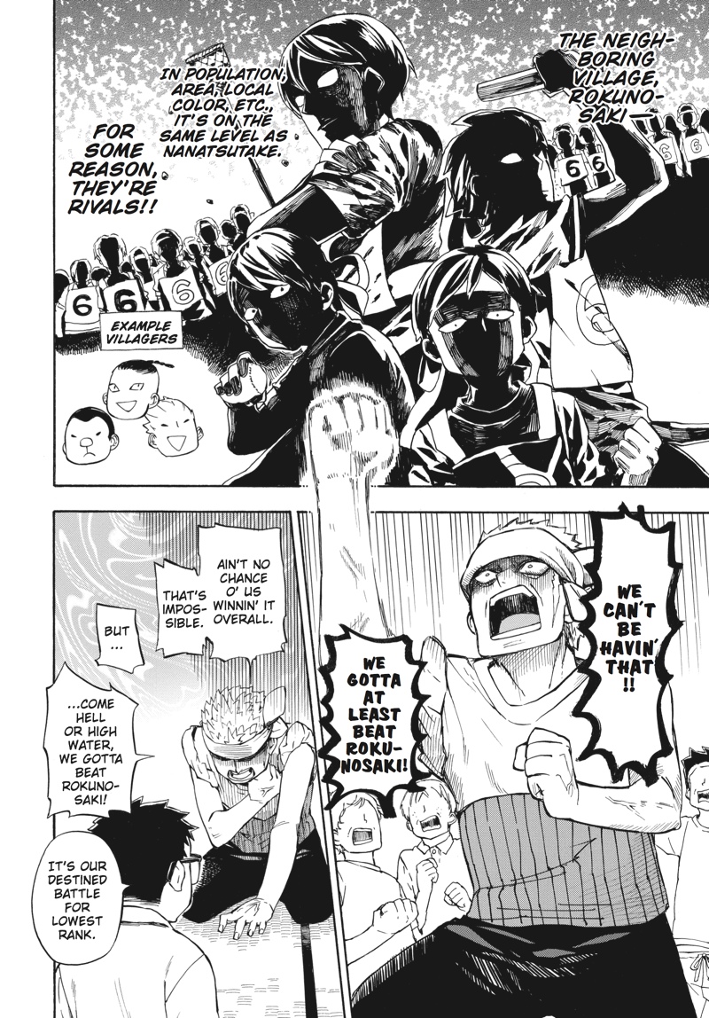 Huff...huff.........huh?! This is not running practice!! The villagers have nominated handsome young calligrapher Seishuu Handa to compete in the relay race--the main event of their annual sports festival! But while Handa undertakes some super-secret running practice, Hiroshi goes on a job interview, Tama awaits the results of her manga submission, the adults concentrate on defeating Rokunosaki (the neighboring village) and the kids do their best to keep up with the adults! Everyone's hard at work in Volume 9 of this super-popular, hot 'n' hearty island comedy!!