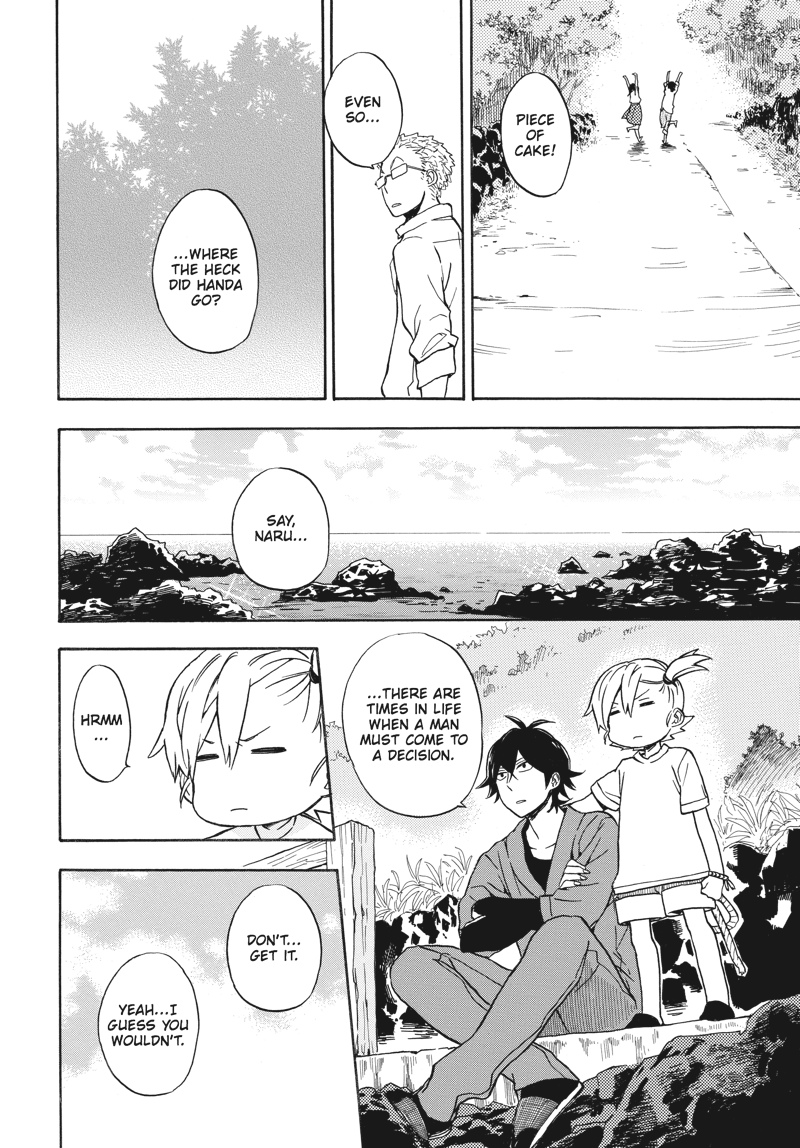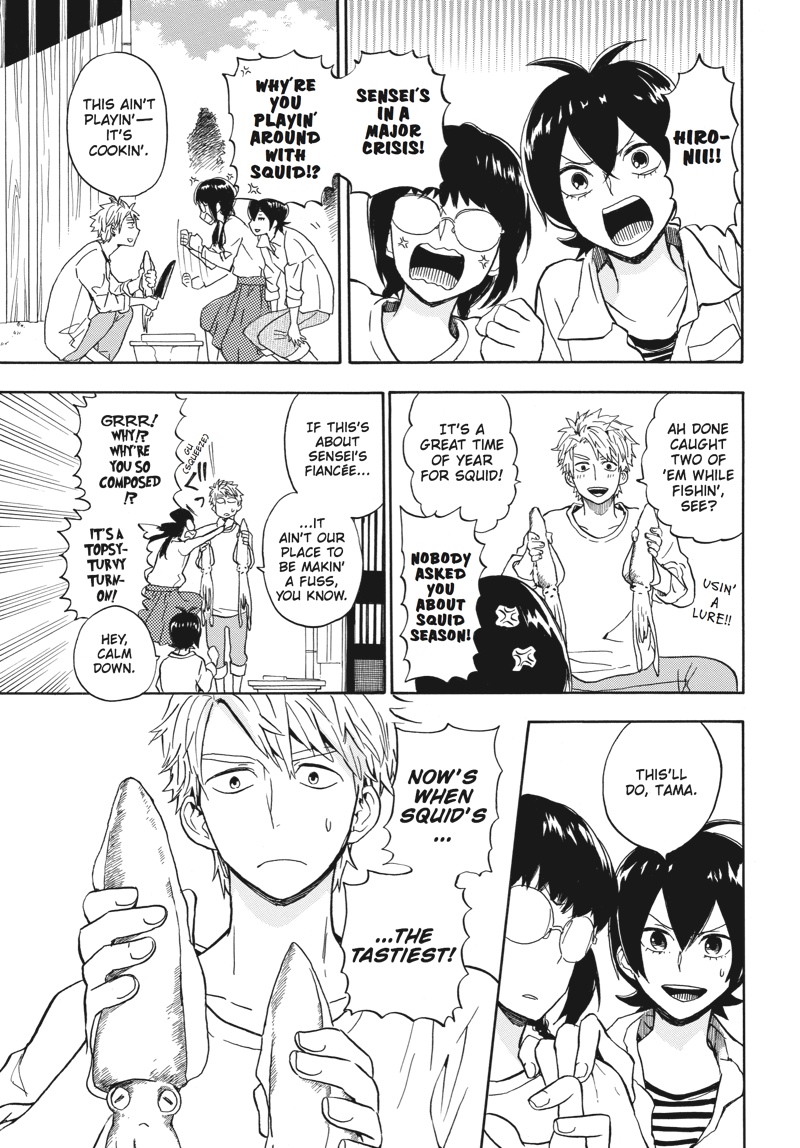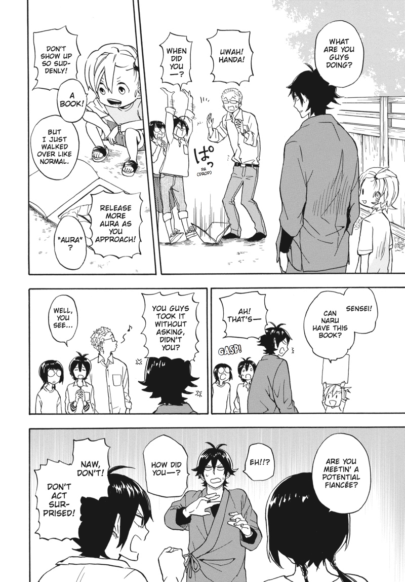 Damn it!! I'm getting married and leaving this crazy island!!!! (teary) Handa's parents' true motivation for coming to the island is made clear-an arranged m-m-m-marriage?!! Will handsome young calligrapher Seishuu Handa find the resolve to meet his fate?! Add in a fight with the neighboring village's own handsome young guy, Kazuma Higashino, and Hiroshi's spate of delinquency, and you get the super-chaotic Volume 11 of this hot 'n' hearty island comedy!!