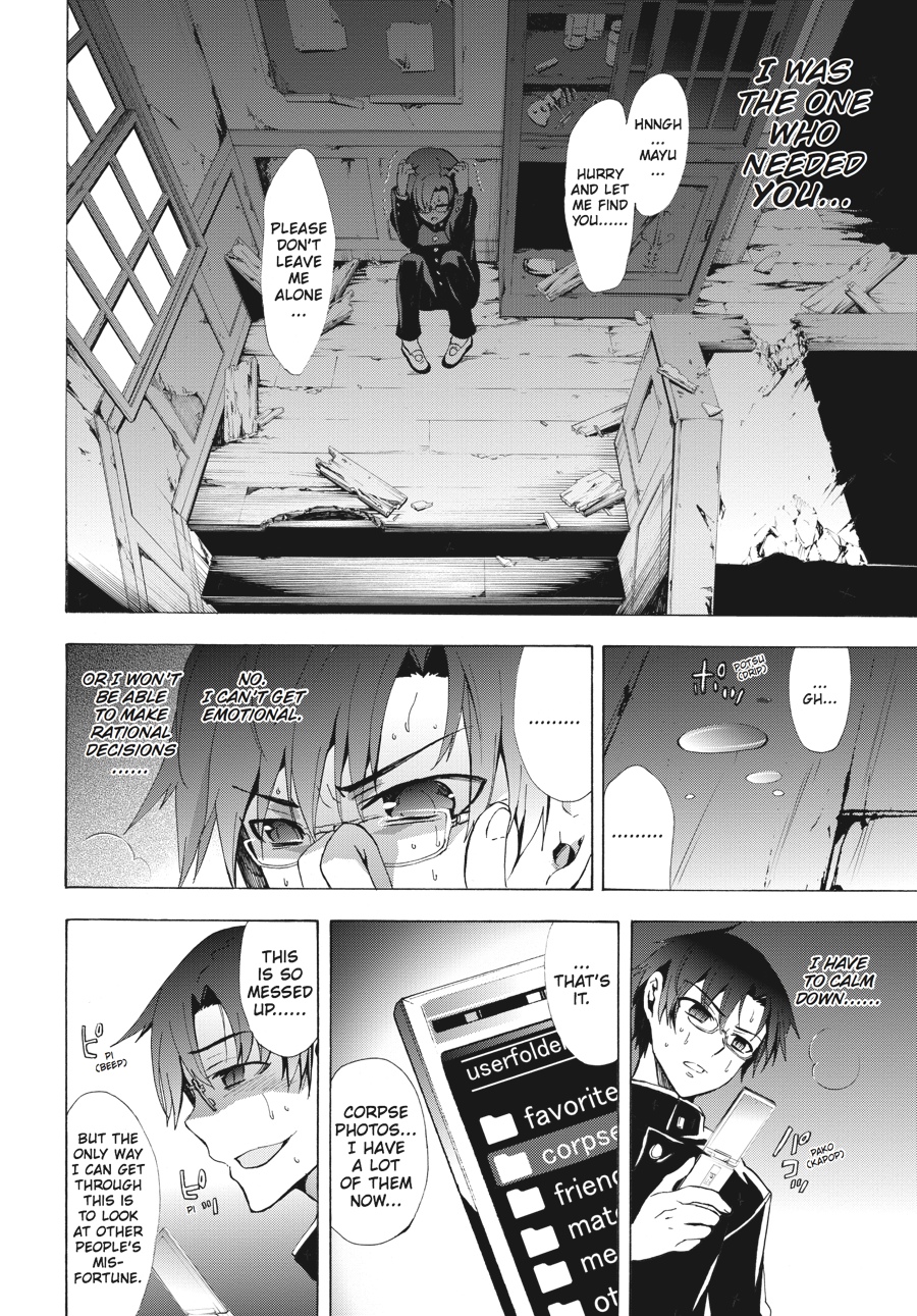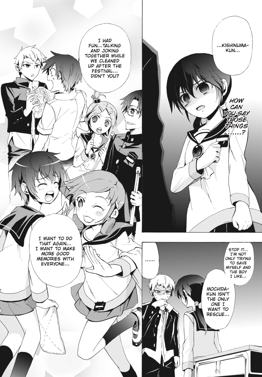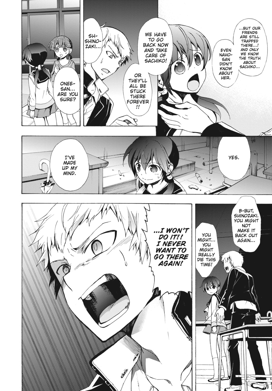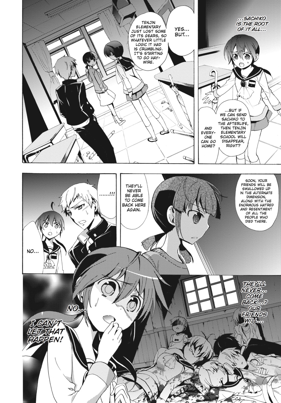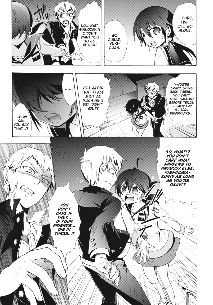 Kishinuma and Shinozaki may have escaped the cursed Tenjin Elementary School, but the rest of their surviving classmates are still trapped. Will they trade their safety for the lives of their friends? Meanwhile, Morishige's corpse obsession reaches a point past all return and Kizami shows his true colors to Yuka--will her big brother come to save her before it's too late?