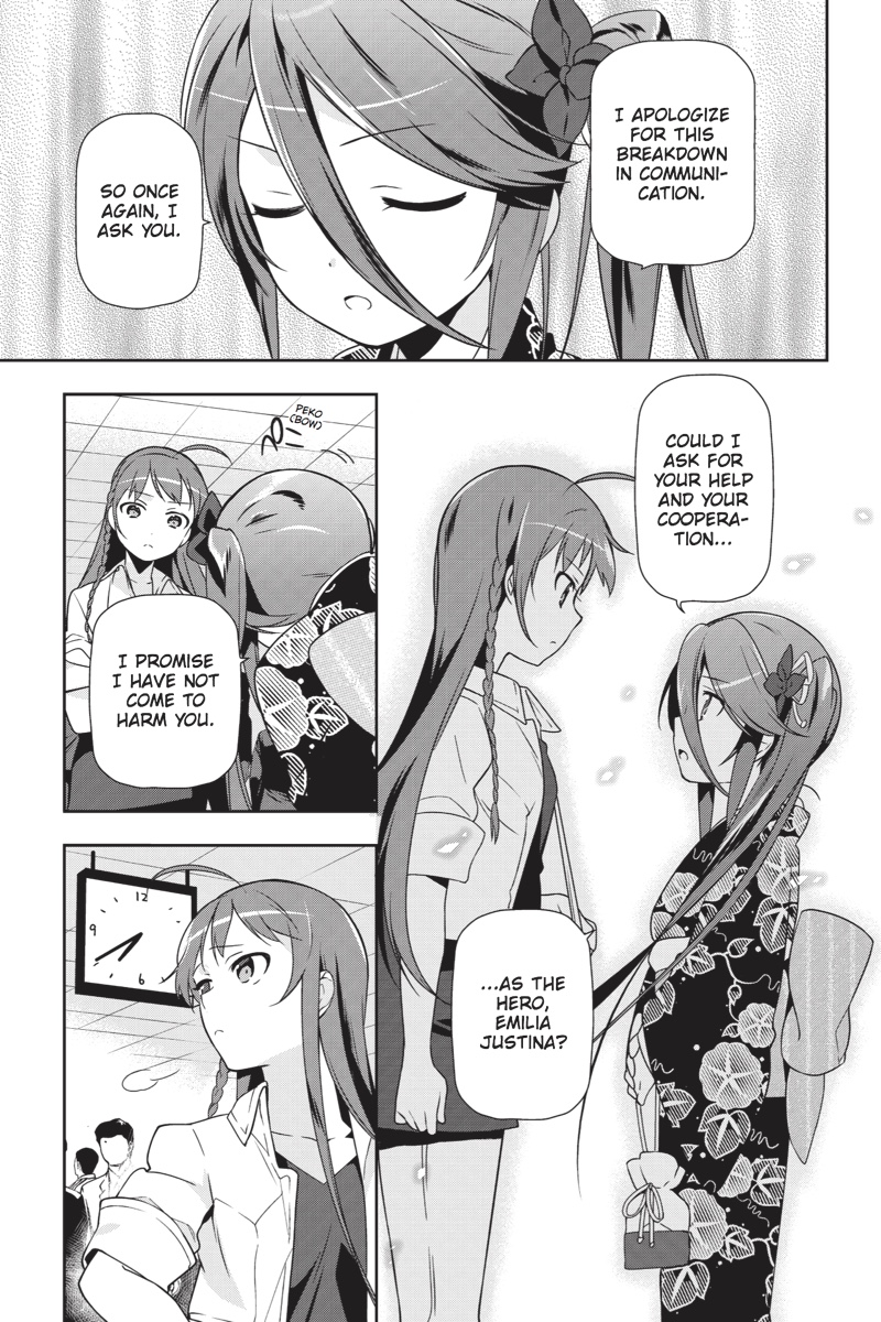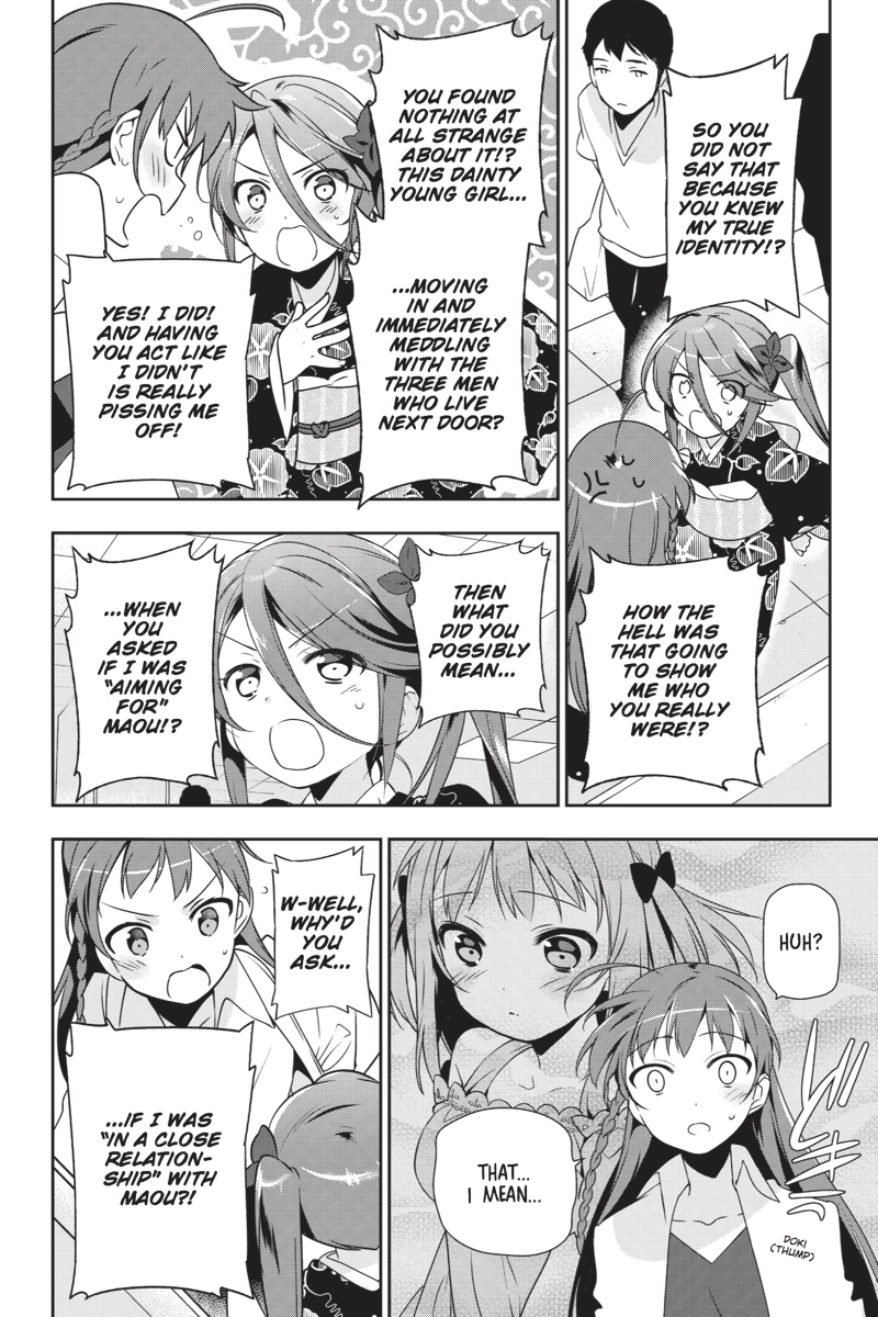 This complication wears a kimono! The arrival of Suzuno Kamazuki has made everybody's life more complicated! After some misunderstandings regarding Suzuno's intentions toward Maou are cleared up, Emi asks for her help to...defeat the Devil King?! Meanwhile, a shadowy assailant continues to stalk Emi, but what does he--or she--want?