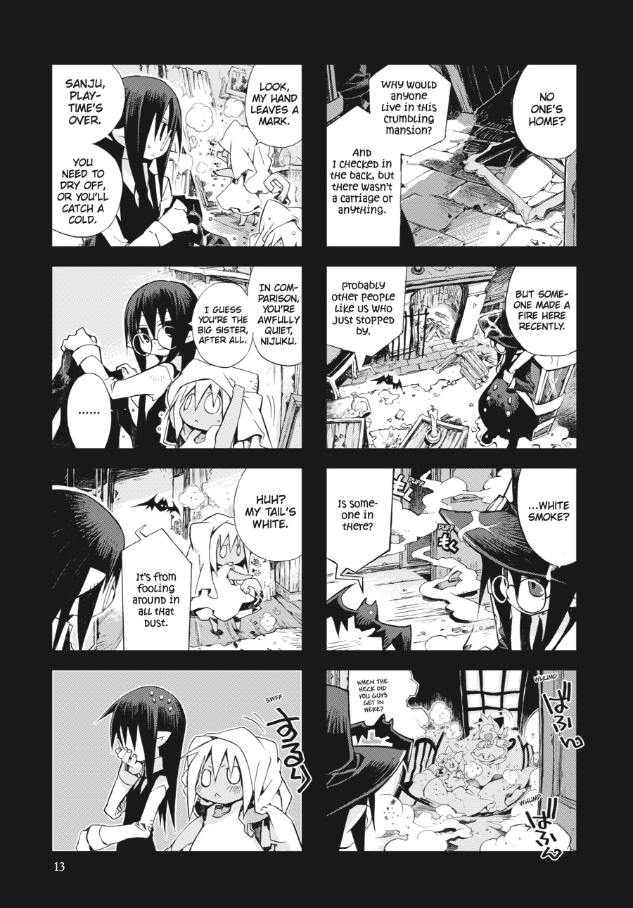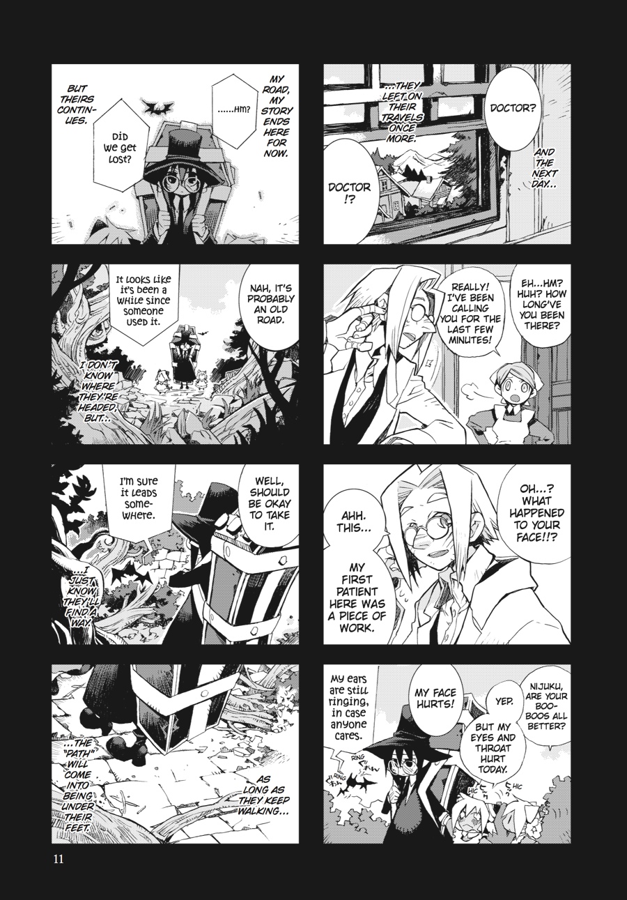 Still in search of a way to break the curse cast on her by a witch, Kuro continues on the winding road of her travels. At every turn, she and her colorful band of companions encounter the peculiar and the mysterious-a girl who lives inside the mirrors at a mansion in the woods; a wind-up woman in a dark forest; a tree that grants wishes for a price; a patchwork witch basking in the sunlight filtering through the trees. What curious fellows and wondrous things will Kuro's journey lead her to next? And can any of them provide Kuro with the one thing she really wants before her time runs out?