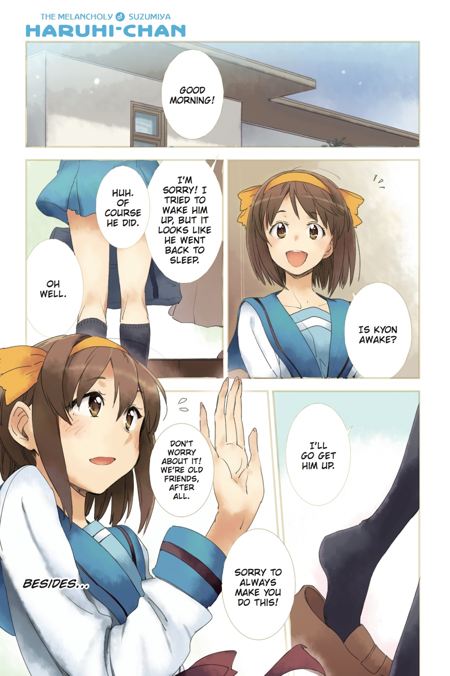 Frankly, my deer, it's Haruhi-chan!!! Coming up on Haruhi-chan: In breaking news, North High students are turning up to class wearing nothing but their swimsuits?! The Agency reports a new kind of Celestial is wreaking havoc on the city! And a local student organization is completely reinventing itself for its Volume 11 debut! You won't want to miss it!