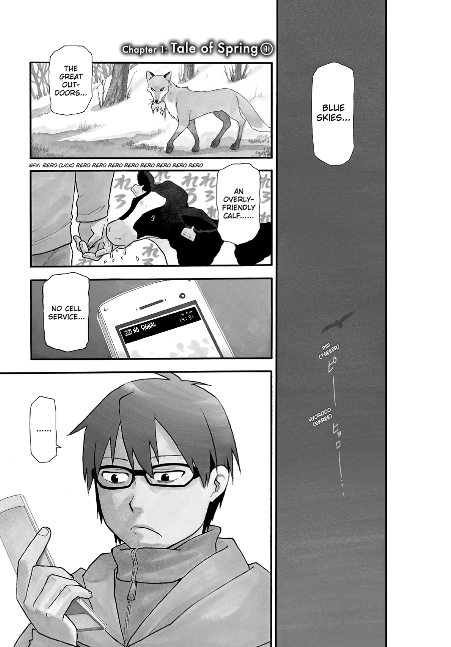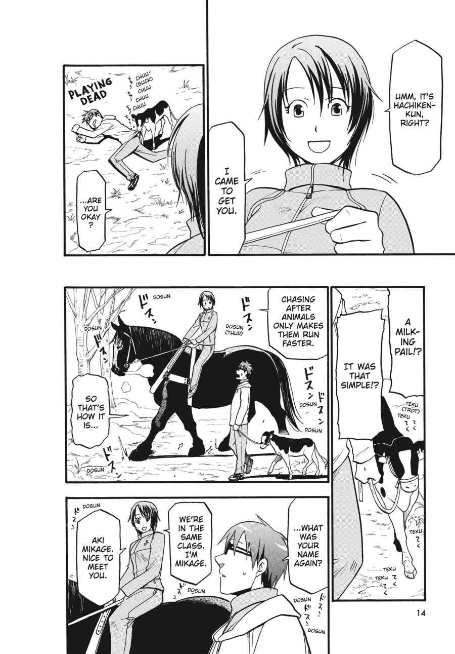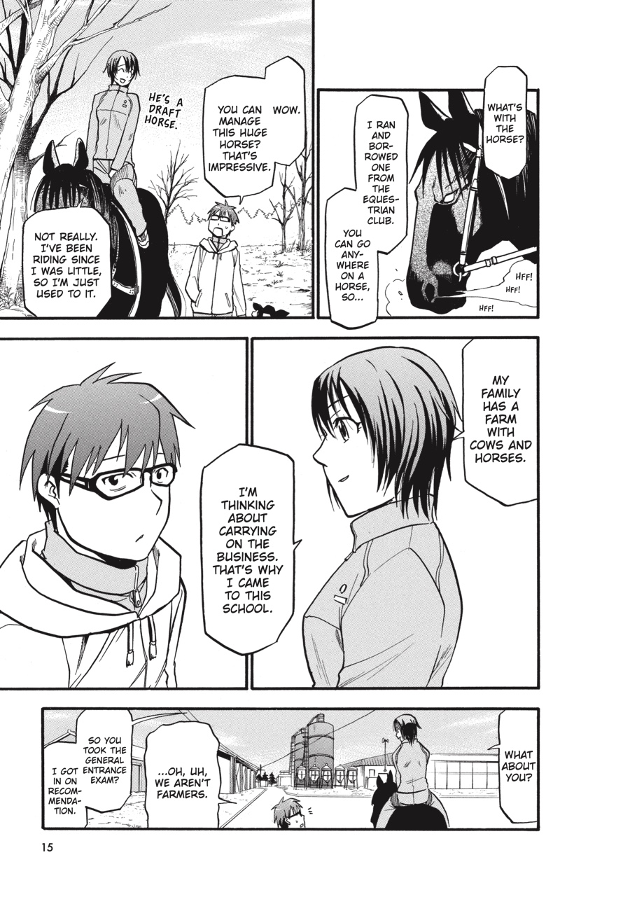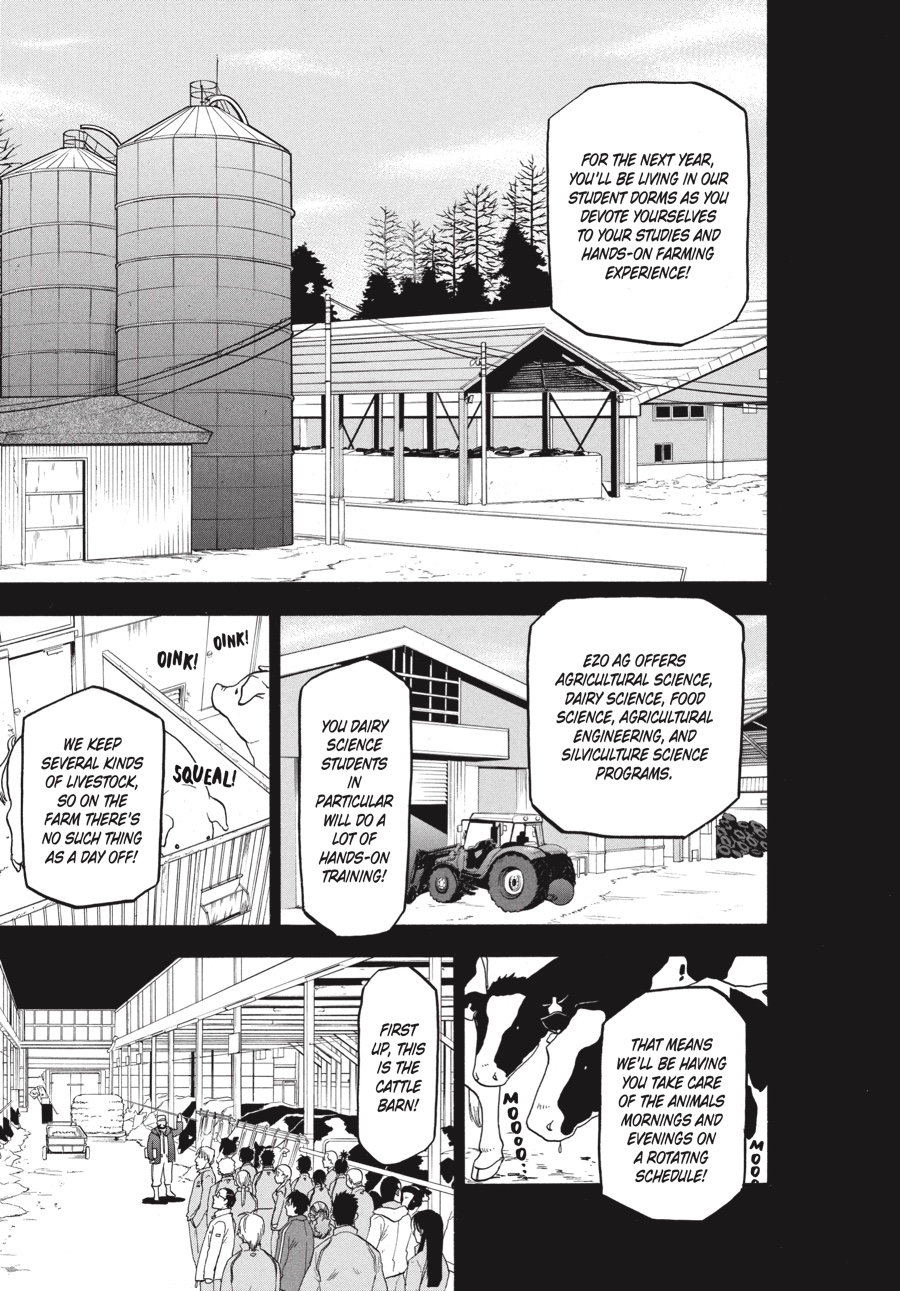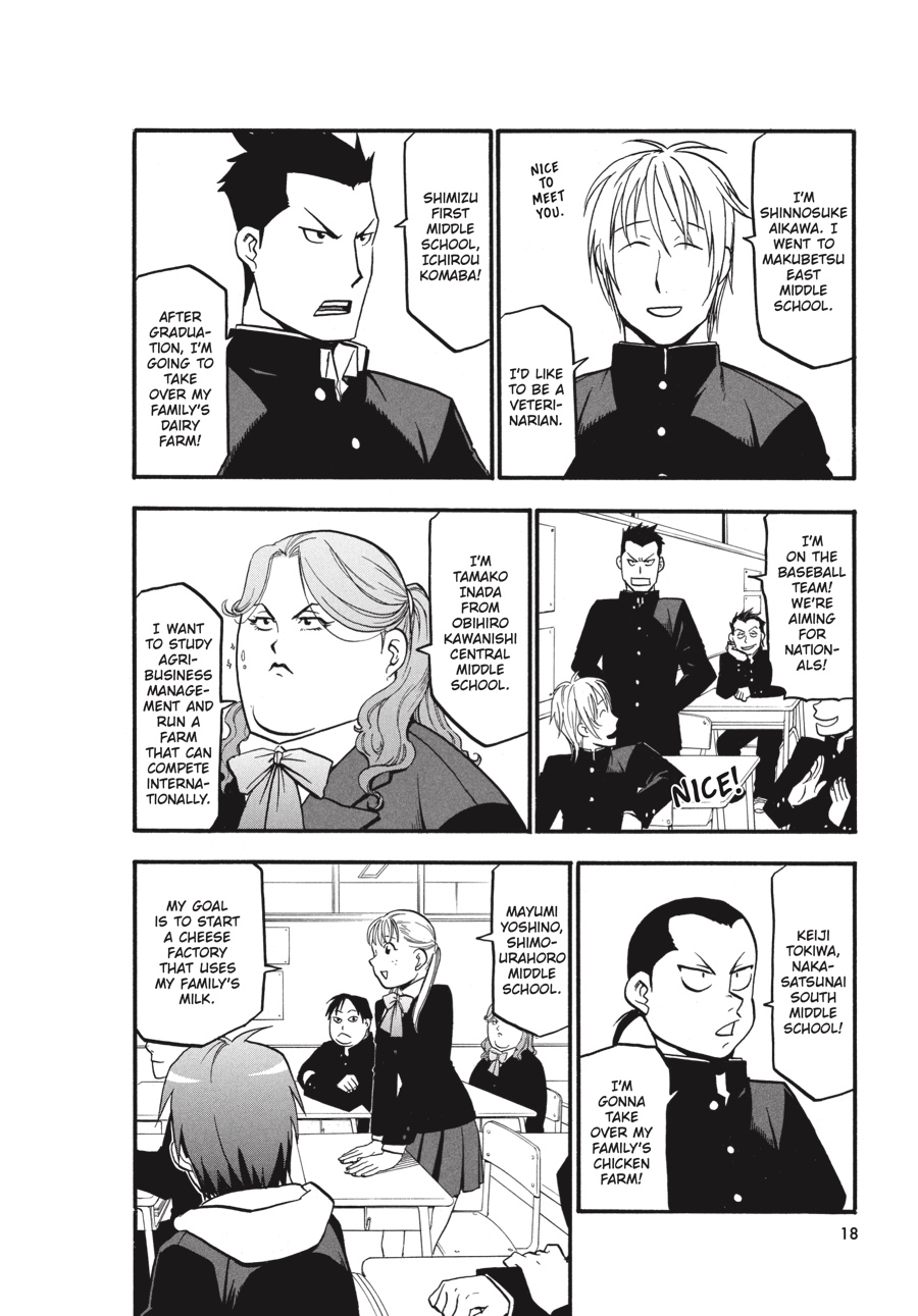 Defying the expectations of family and teachers, Yuugo Hachiken chooses to leave the city and enroll at Ooezo Agricultural High School. Having always been at the top of his class, Yuugo assumes a rural school will be a breeze, but mucking out stables, gathering eggs, and chasing errant calves takes a lot out of him-and fills him with something he's never experienced before. Surrounded by endless fields and fresh air, Yuugo discovers a new connection to the land and to life...Springtime begins at Ezo AG!!