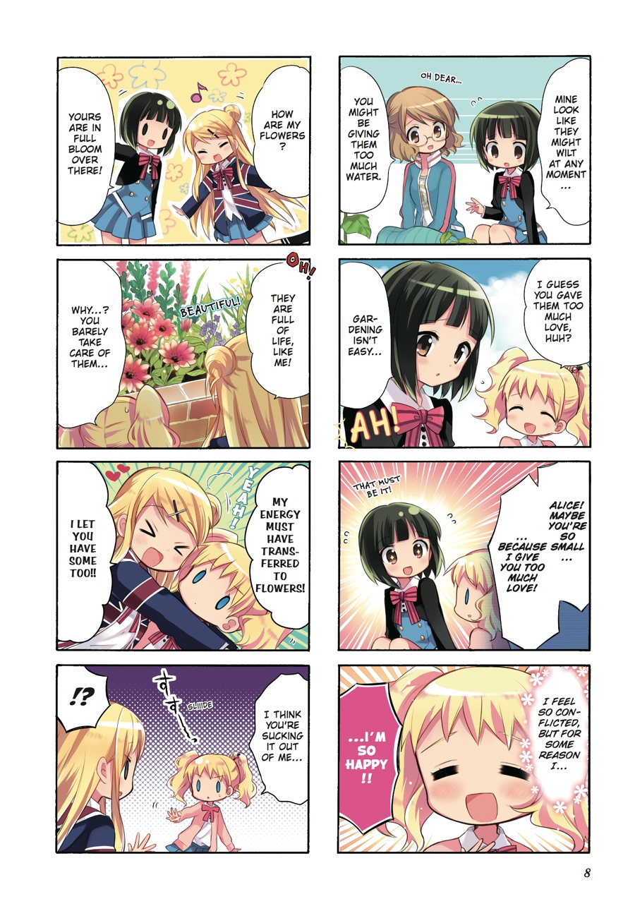 Shinobu, Alice, and the rest of the girls might be in different classes, but their friendship is stronger than ever! From everyday chats to gardening to visiting the beach, there's plenty in store--including a trip back to England for Alice and Karen!