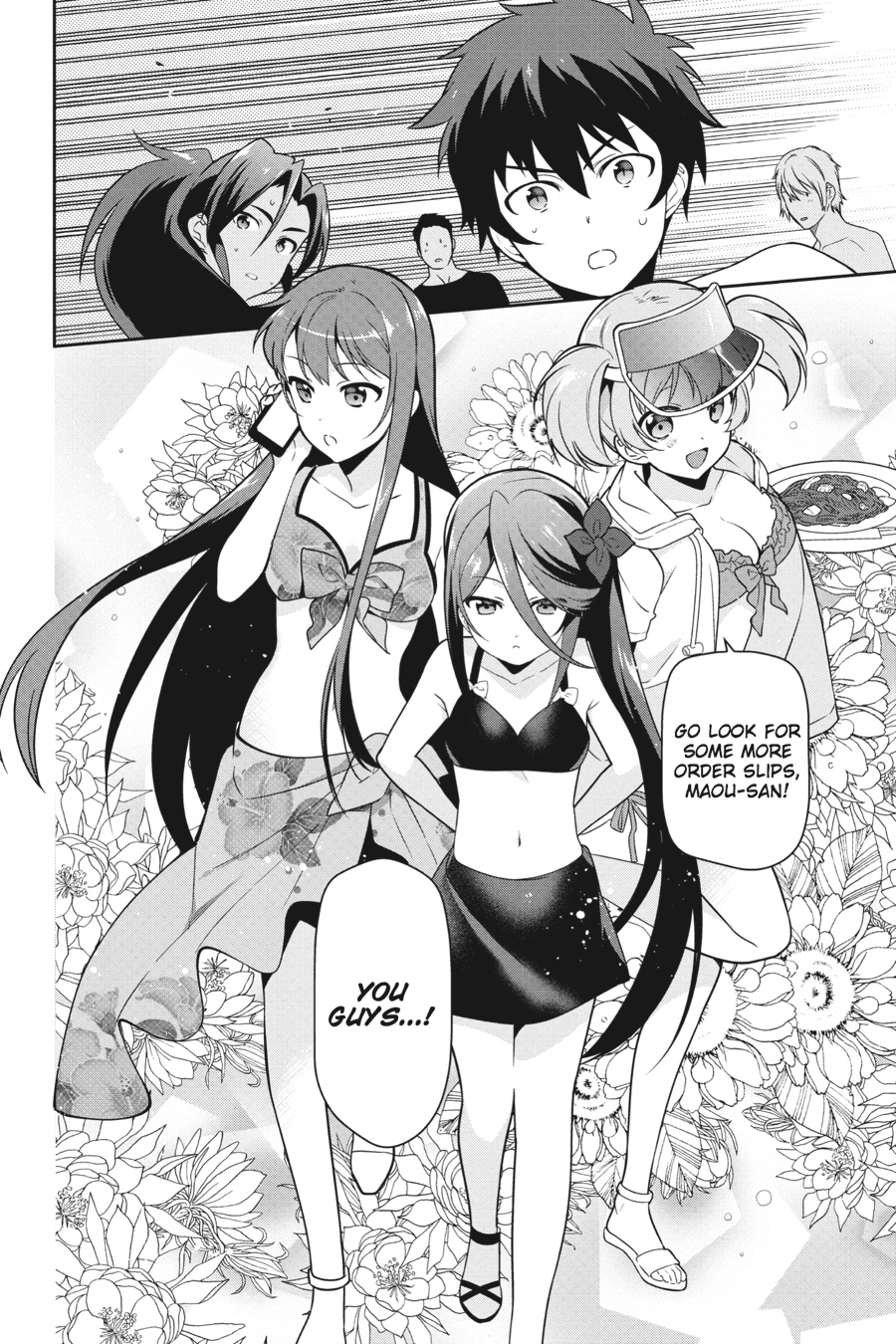 DISTURBANCE SEASIDE! The Devil King is on the beach, but there's no time to relax! People are packed into the eatery, and Maou's crew can barely keep up with the demand. Looks like the girls will have to come to their rescue! Everything's fun on the shore, but with the appearance of Maou's military adviser, is there trouble on the horizon?