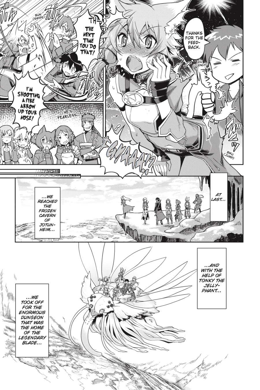 The goddess Urd is in danger, and only Kirito and his friends can save her! The evil frost giants have invaded her homeland of Jotunheim, bringing death and destruction in their wake. The linchpin of it all is the frost giant king's sword-the legendary weapon Excalibur! If Kirito's crew can make it to the end of the dungeon and pull the sword from the stone, peace will be brought to the land once more!
