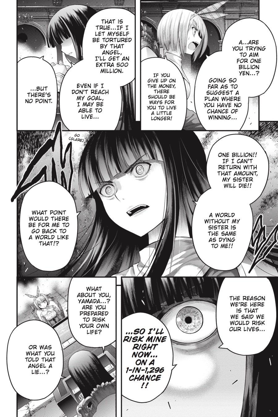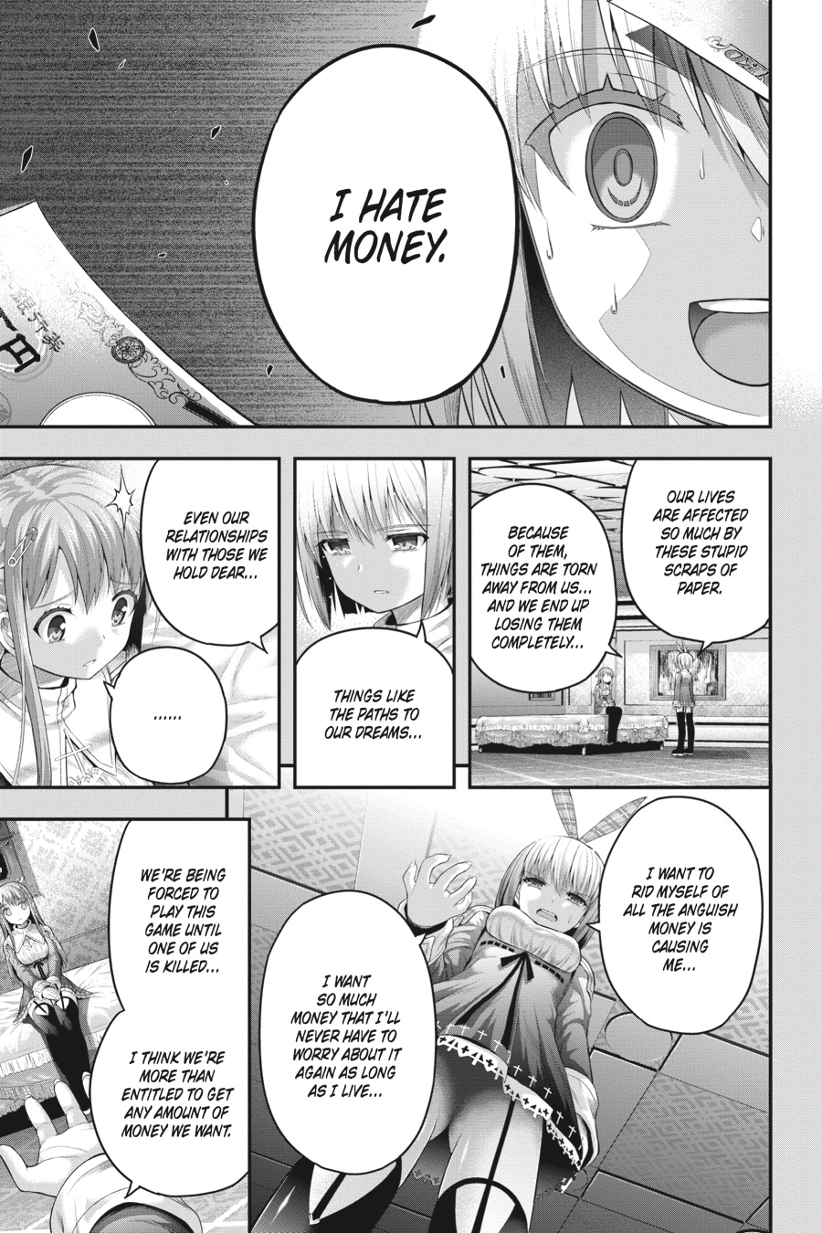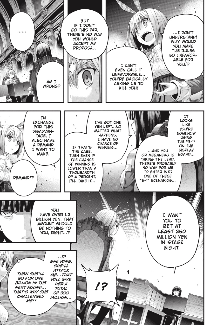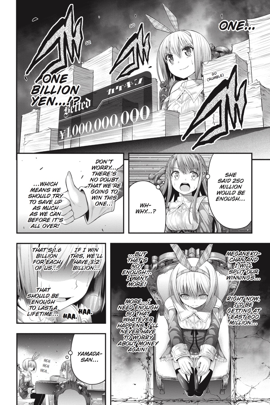The death game continues, and Yuki is in trouble! With only a single yen and little hope, she carries out her comeback plan. Before long, one of the players succumbs to madness, and the game reaches a shocking conclusion! Who will be the one to die, and what inhuman method has Kroel devised to finish them off?