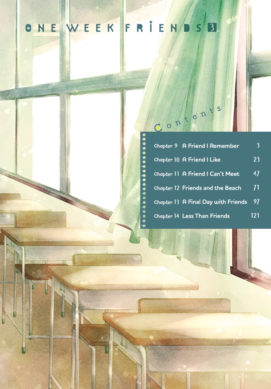 With Yuuki by her side , Kaori has managed to make more friends in class even though her memories are er ased each week. As summer break approaches, though, Yuuki isn't sure their friendship can continue if Kaori doesn't see him every day...But there's an easy solution-they just have to meet up outside of school! It ends up being Kaori's best summer ever, but neither she nor Yuuki are prepared for what awaits them when classes resume...