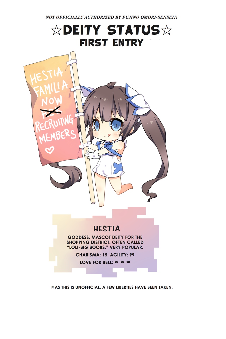 While adventurers crawl the Dungeon, the gods and goddesses of Orario are always working hard behind the scenes for their beloved children! The deities who remain on the surface might not brave the labyrinth's depths, but they're just as busy--all of them occupied with duties like managing their familia's business, striking deals, gathering information, or going shopping, stuffing their faces, lounging about not doing much of anythi--adventures! So many adventures! Who can really say what happens in the sometimes precious, occasionally chaotic day-to-day lives of this charming pantheon?