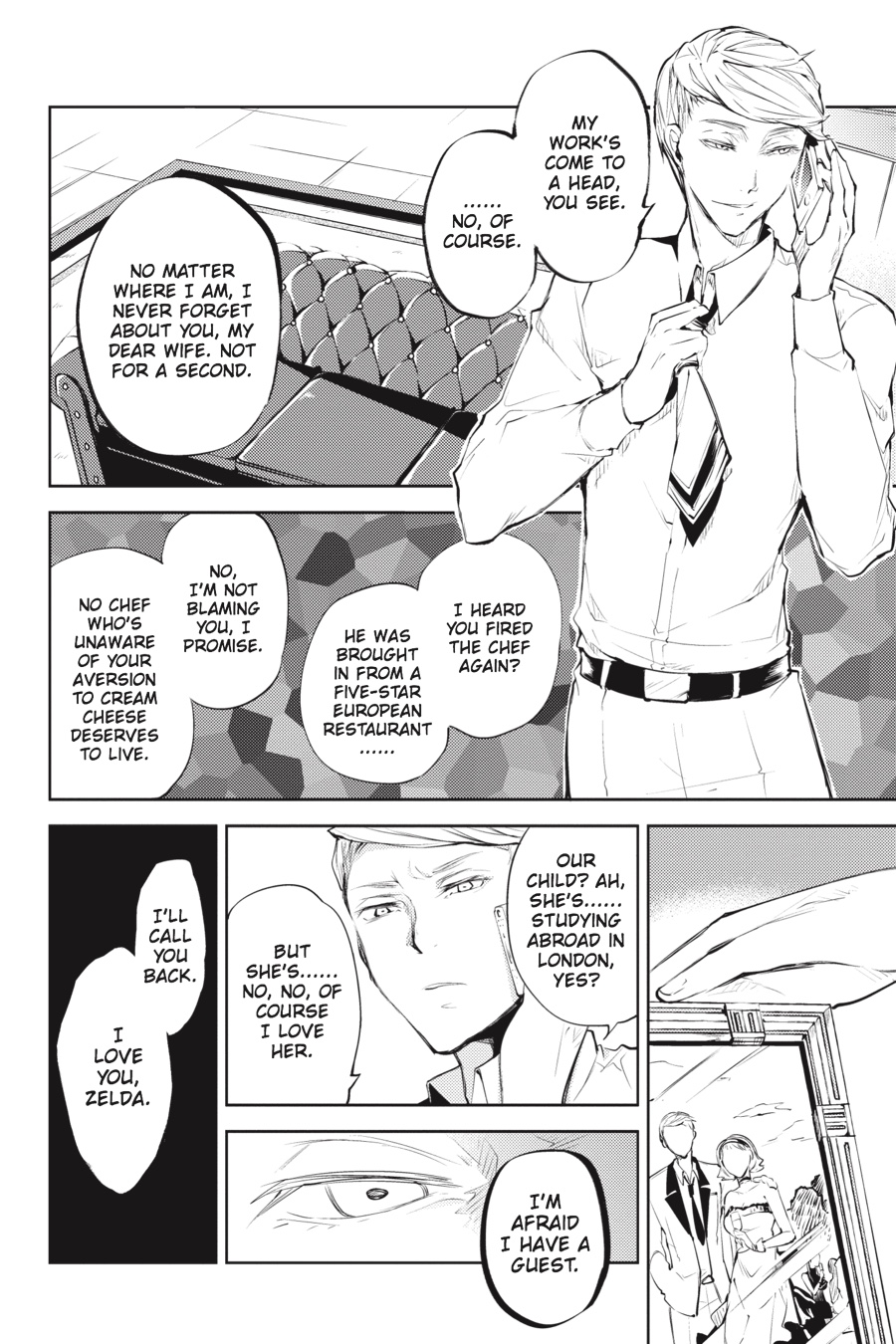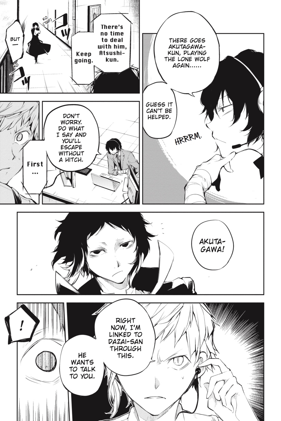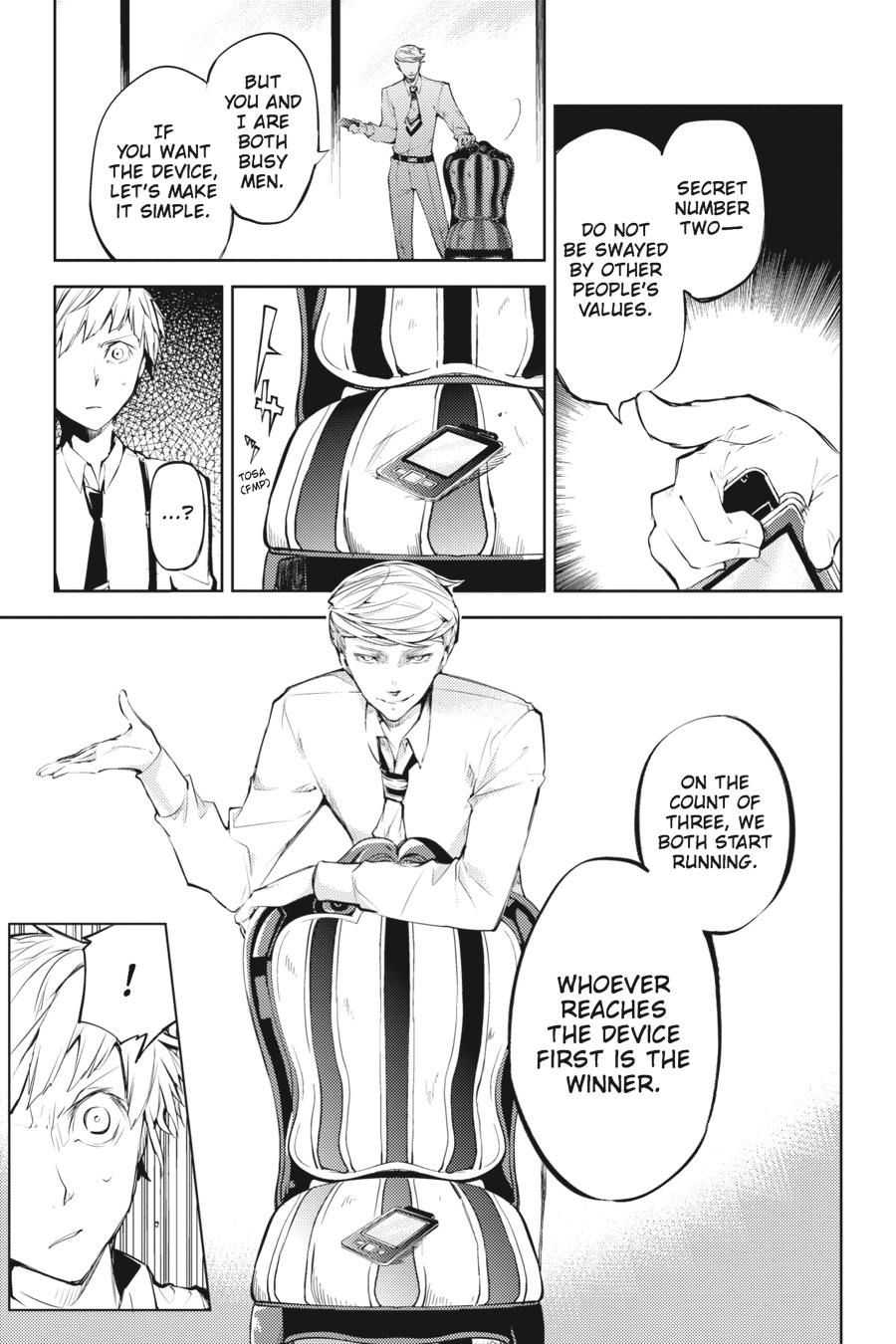 With only minutes to stop the Moby-Dick from crashing down on Yokohama, Atsushi encounters his nemesis, Akutagawa! However, the face-off turns into a three-man battle when Fitzgerald enters the fray. Can Atsushi and Akutagawa counter the Guild leader's extravagant ability in time to stop the white whale's descent...?!