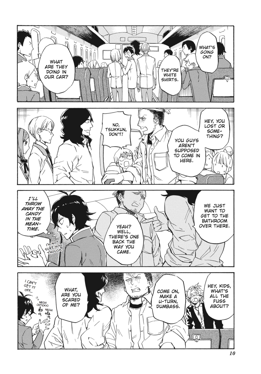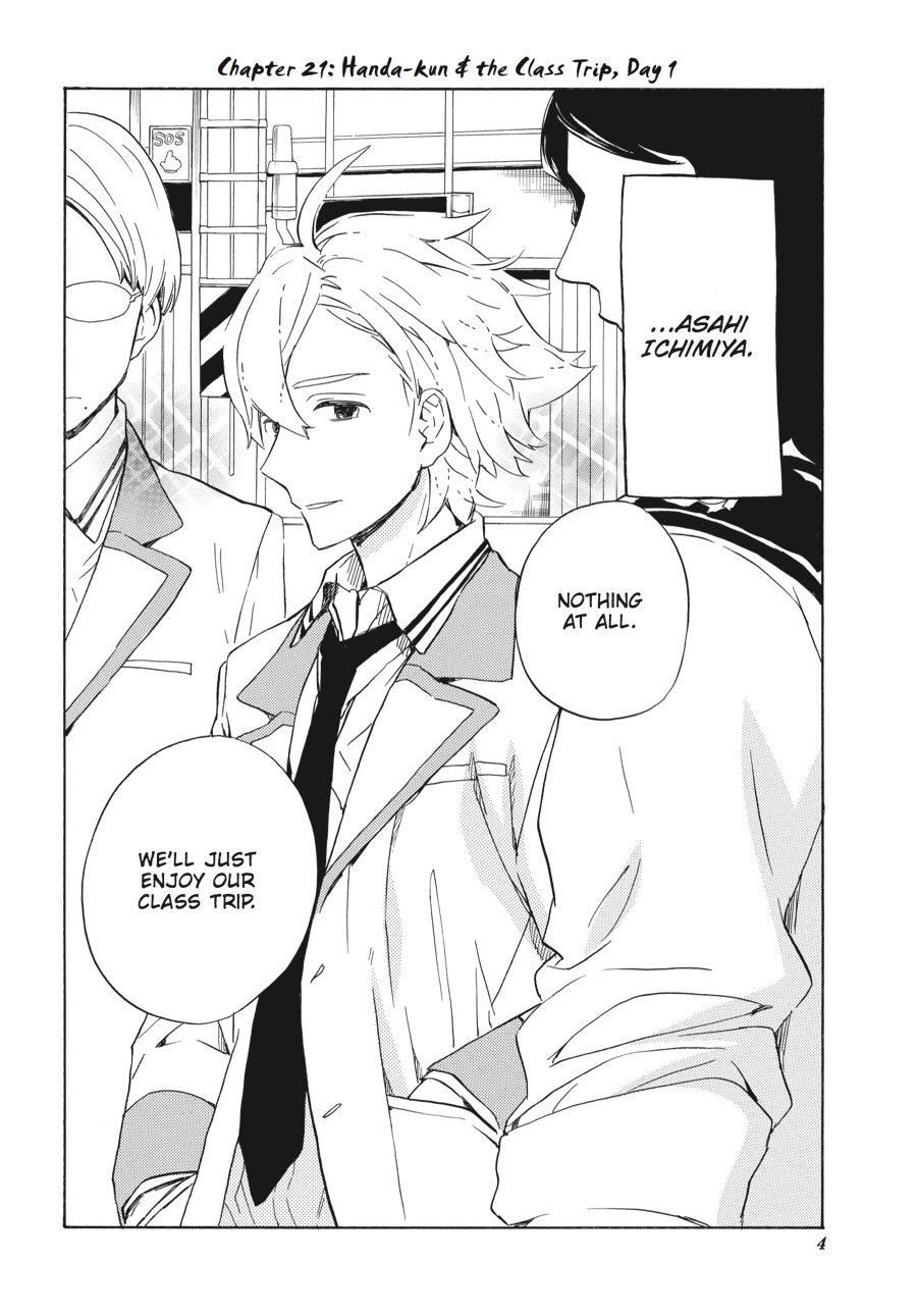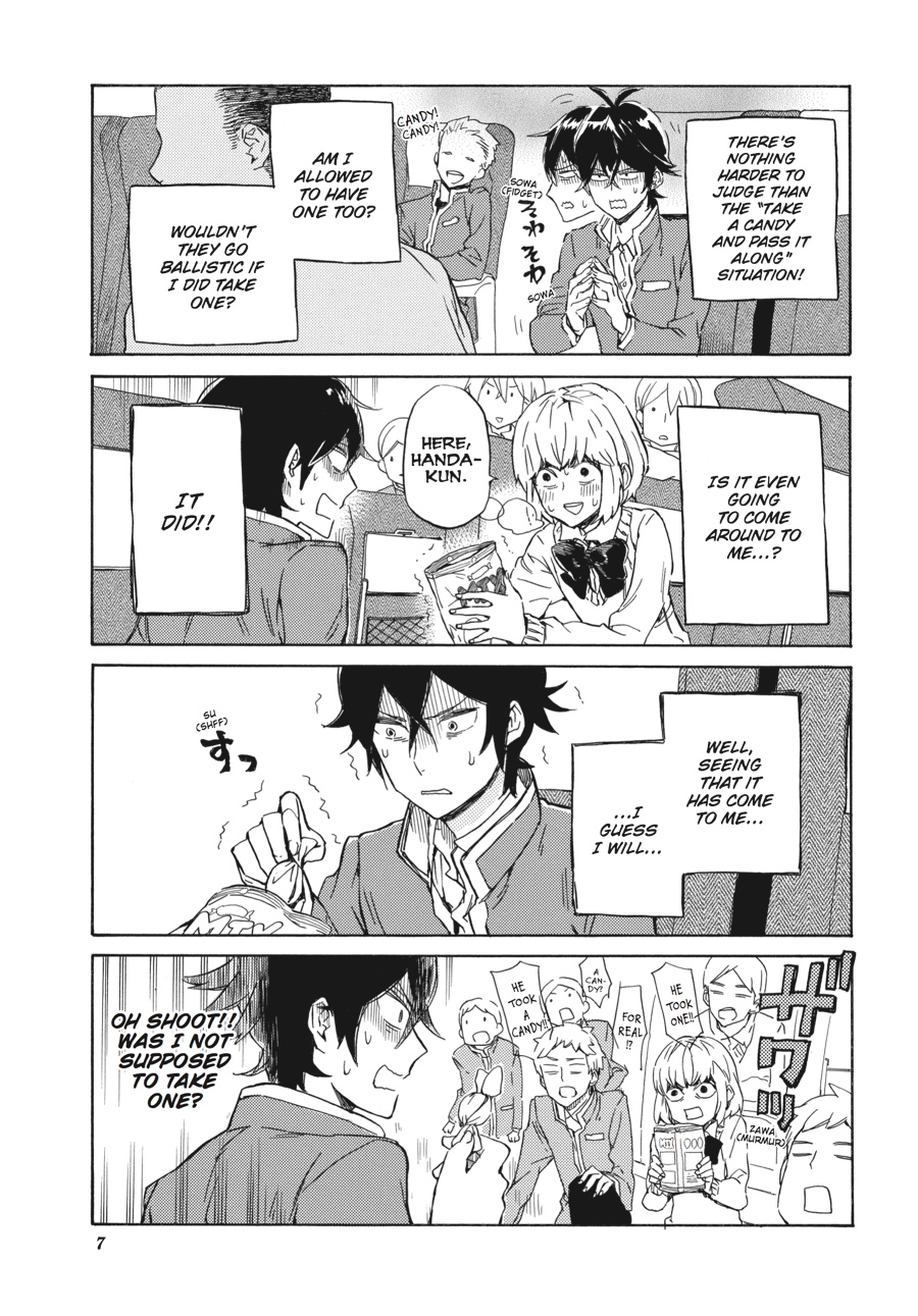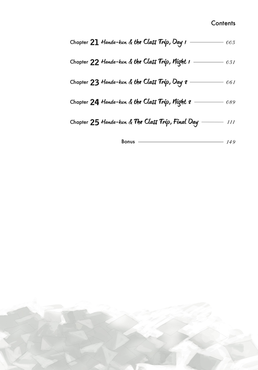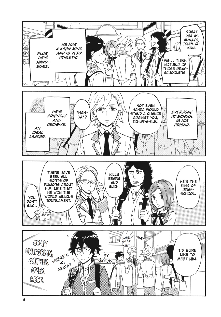 The class trip has begun, but now it's not just his own classmates Handa needs to worry about... When a rival school ends up going along for the ride, isn't it a given that Handa-kun's going to run afoul of a whole new set of kids?? The Handa Army have met their nemesee...nemenisee...neemessss--their rivals! There is no way they will allow their beloved Handa to be diminished by the white shirts!! Meanwhile, poor Handa-kun is trying REALLY hard just to fit in...