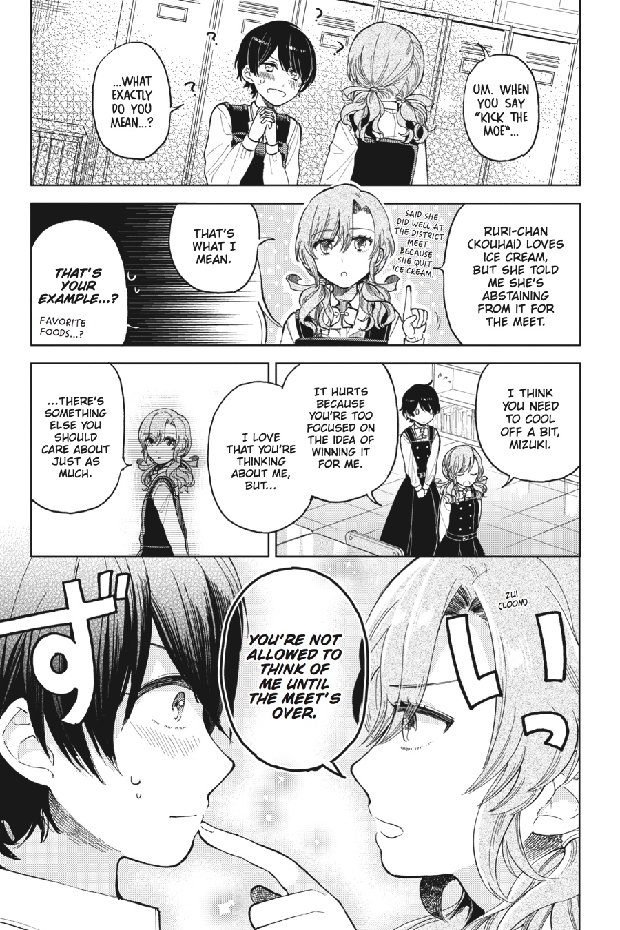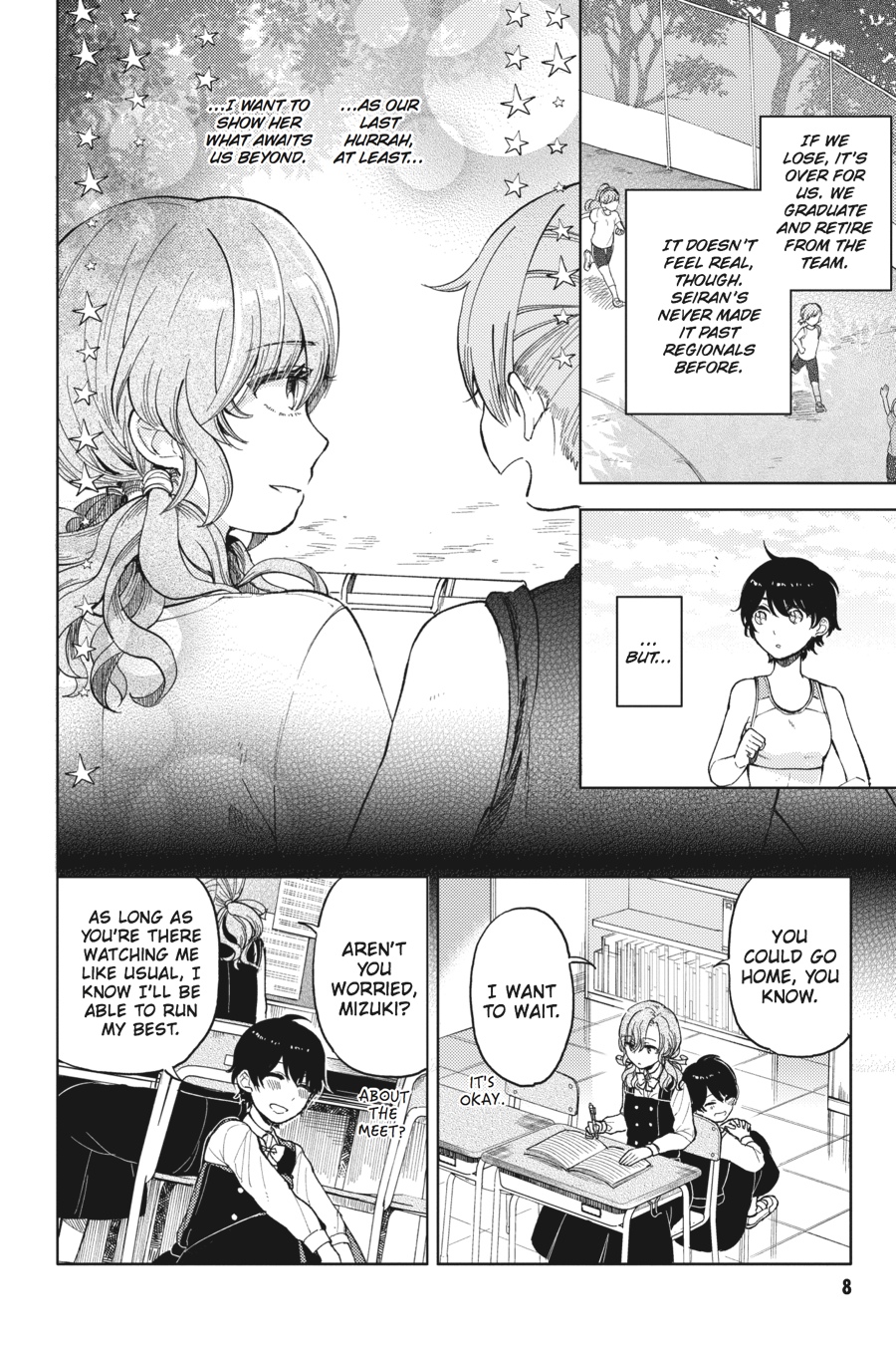 The track team is headed to Regionals, and it's Mizuki's last chance to qualify for Nationals before she and Moe graduate. But with the pressure of the race on her shoulders, Mizuki can't seem to concentrate on running, forcing Moe to suggest Mizuki take a break...from Moe! Meanwhile, an old classmate of Yurine's resurfaces and has her sights set of the "cool girl genuis" -- can she manage to sway Yurine's affections?