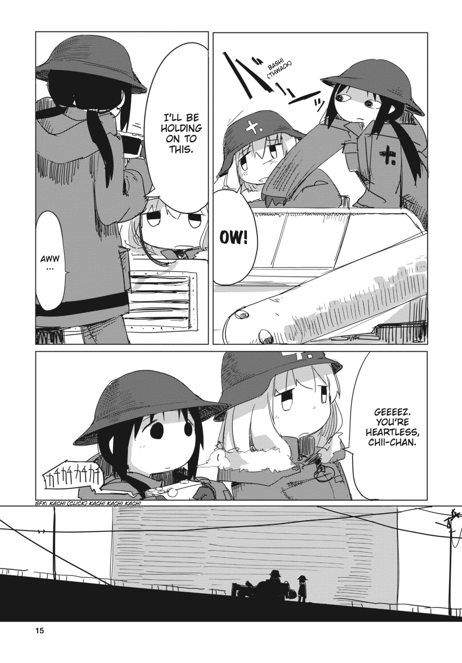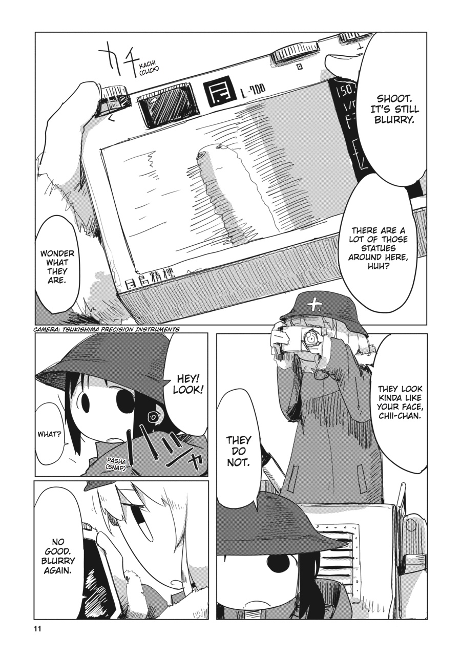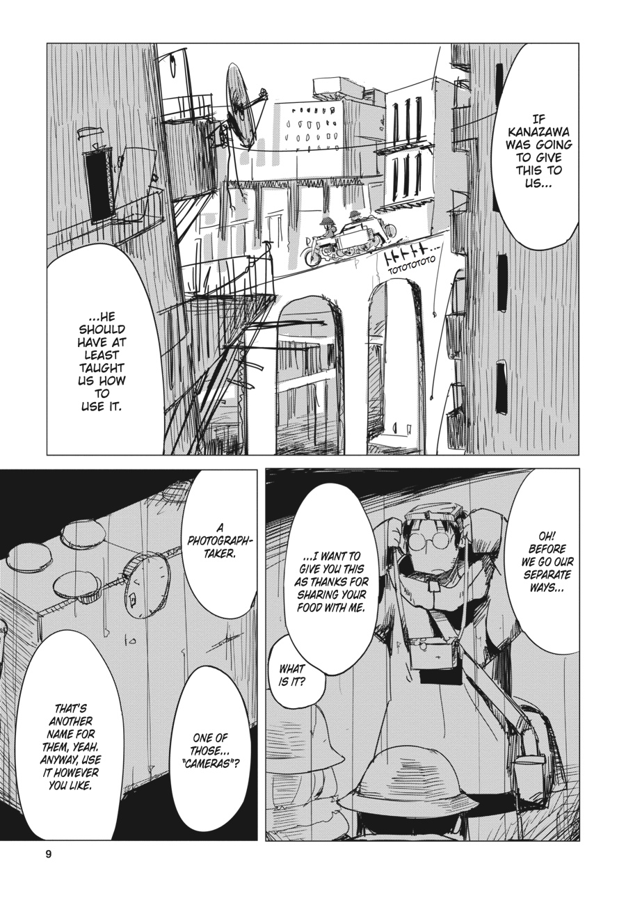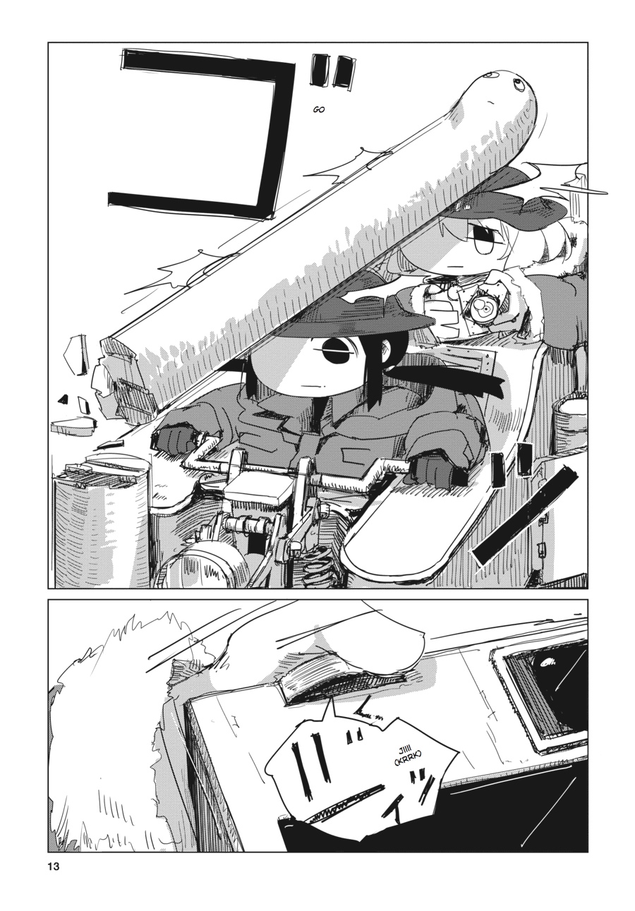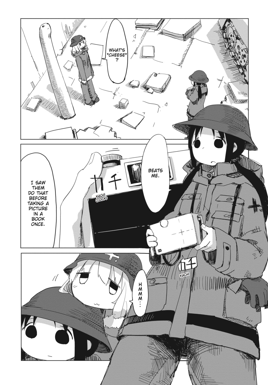 Distant lights illuminating the darkness pique Chito's and Yuuri's curiosity, so the two hop aboard their beloved Kettenkrad and head for the horizon. What they find may not be what they were looking for, but the surviving fragments of civilization are enough to keep them going. There's no telling what other strange surprises lie in store as their journey continues...
