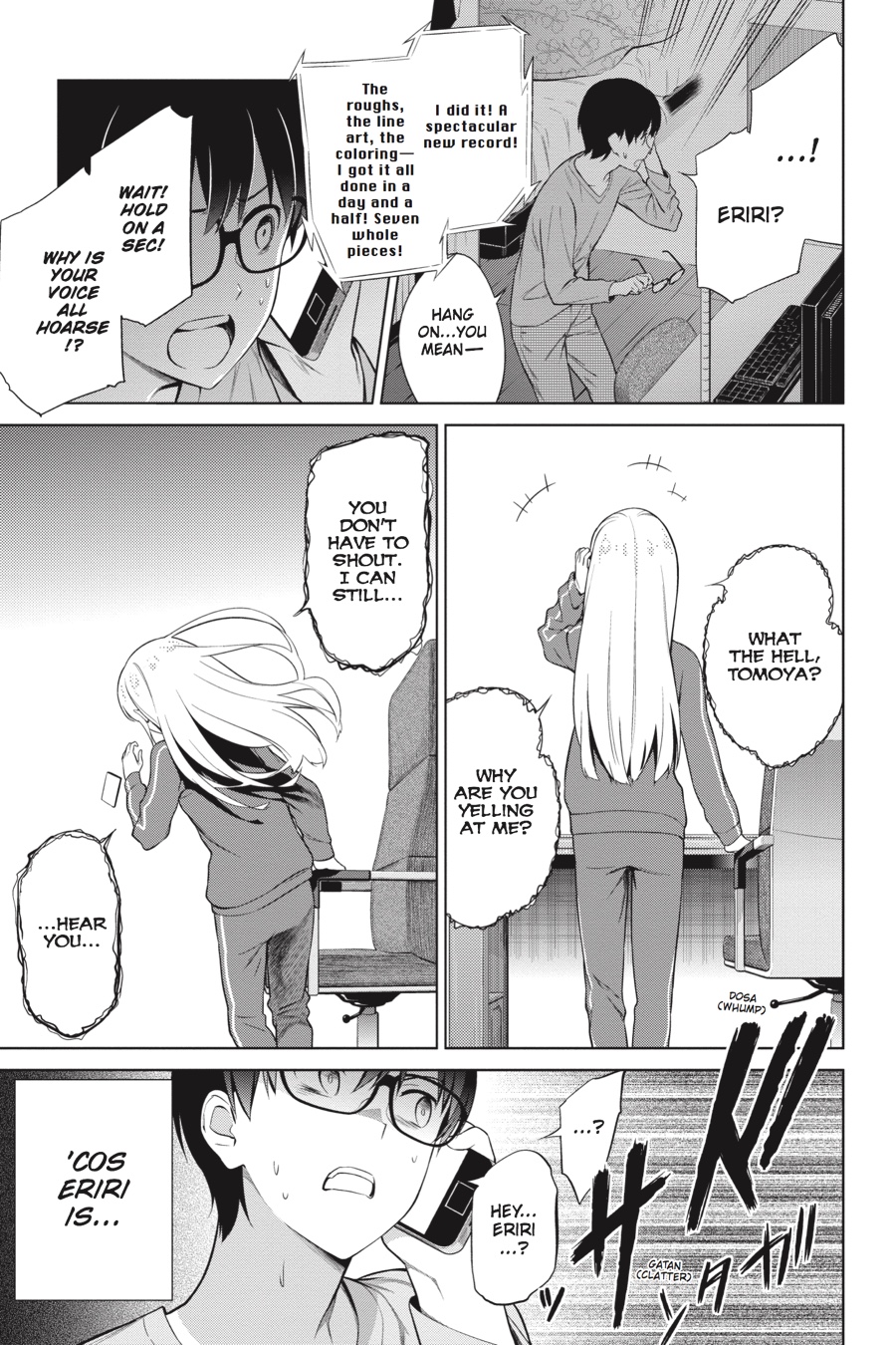 Tomoya takes a trip to the mountains to see Eriri, who's hard at work finishing the art for their game. But when Tomoya gets there, he finds Eriri collapsed with a high fever! Is completing their game worth risking Eriri's health?