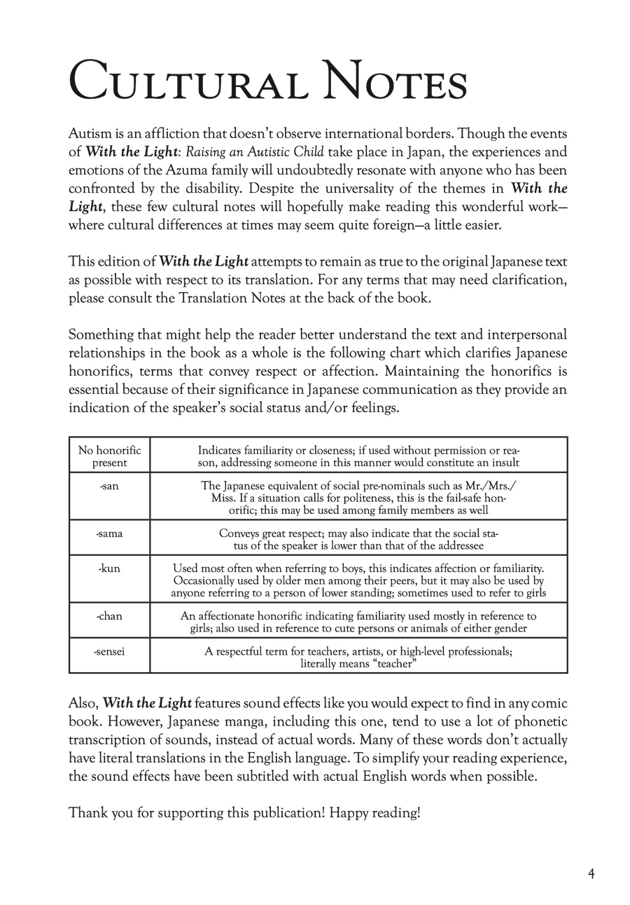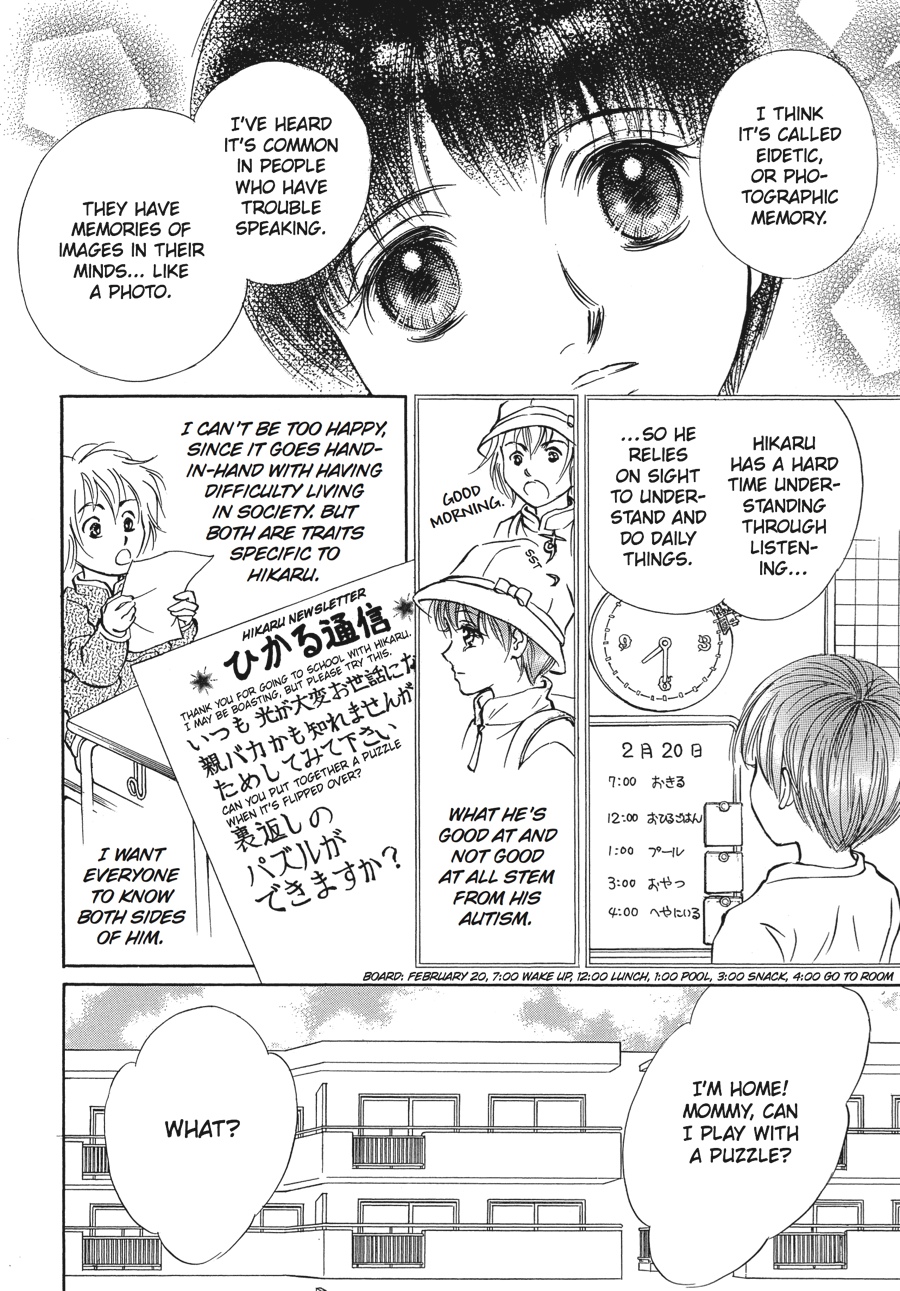 Sachiko and Masato Azuma have overcome numerous obstacles in dealing with their firstborn son Hikaru's autism. Having saved their marriage from ending in ruins, the young couple has welcomed a healthy baby girl, Kanon, into their tight-knit family. But with the obvious differences between Hikaru's and Kanon's developmental abilities, it becomes apparent that social prejudices against Hikaru's disability are never far away. As Hikaru moves into fourth grade, Sachiko encounters a new student, Miyu, whose mother has completely given up on her daughter's life and her own. With the help of Hikaru's beloved teacher, Aoki-sensei, Sachiko aims to bring hope back to Miyu's family. But when Aoki-sensei transfers to a different school and Hikaru's special education class is thrown into upheaval by yet another tragedy, can Sachiko continue to hold on to her own hope for her son's future?