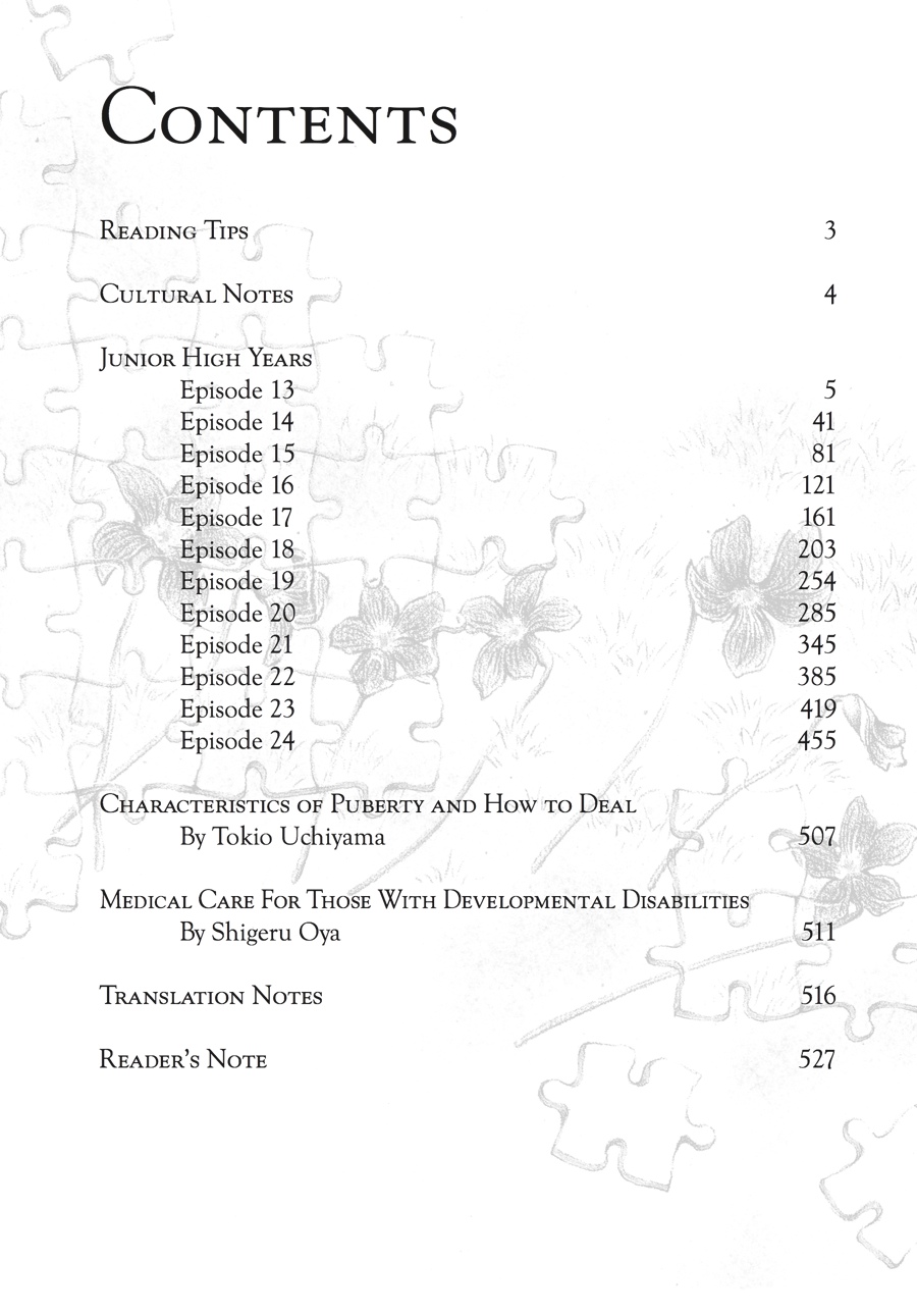 For most parents, their child's teenage years are just as bad, if not worse, than the terrible twos. But for Sachiko and Masato Azuma, the situation is further complicated by their son Hikaru's autism. As puberty strikes, Hikaru's growing sexual awareness creates uncomfortable and embarrassing situations, and begins to affect his little sister, Kanon. The already-taxed Sachiko must find ways to alleviate the situation, while being mindful of the effects her approach may have on her children and on the people around them. But when Masato is told he has to relocate again for work, the pressure is really on Sachiko as the decision is made to move in with her mother-in-law, who has always been less-than-accommodating to Hikaru's needs. With new challenges arising daily - Hikaru tackling adolescence through the lens of autism, Kanon struggling with peer pressure, Masato throwing himself into the new job - will Sachiko, the Azuma family's rock, succumb to the cracks that have begun to form in her generally cheerful outlook on life?