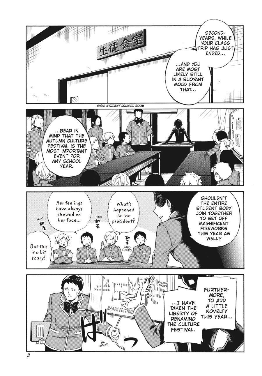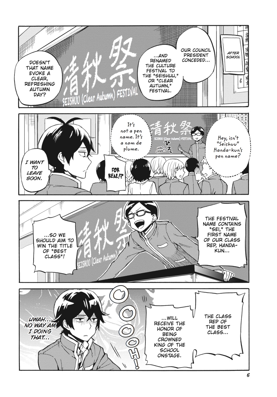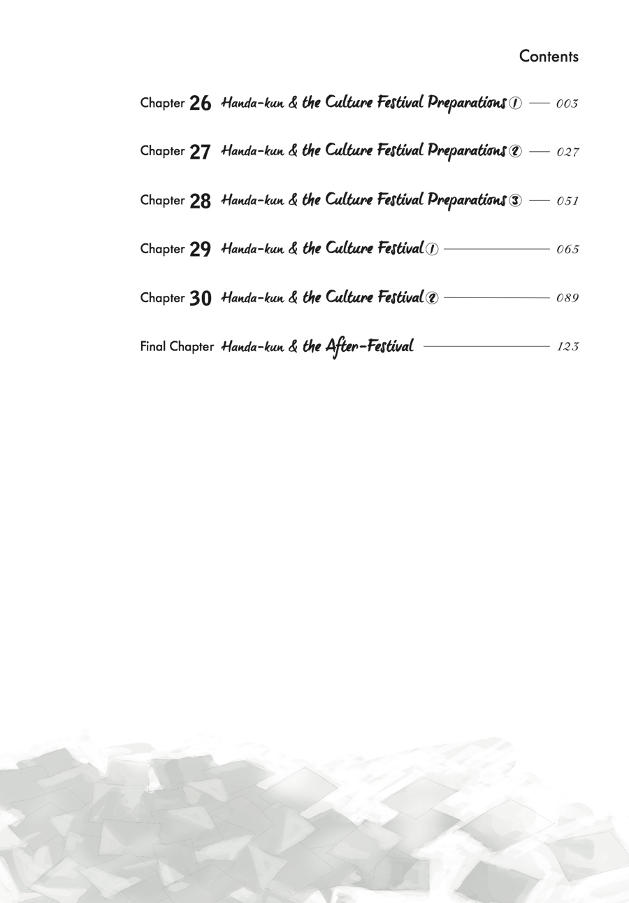 Handa-kun and company have survived the class trip, but now the culture festival is right on top of them! Will Handa get to contribute to the festival preparations, or will the culture festival be his biggest high school frustration yet?