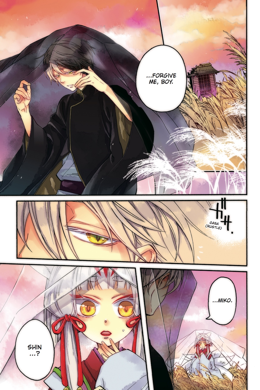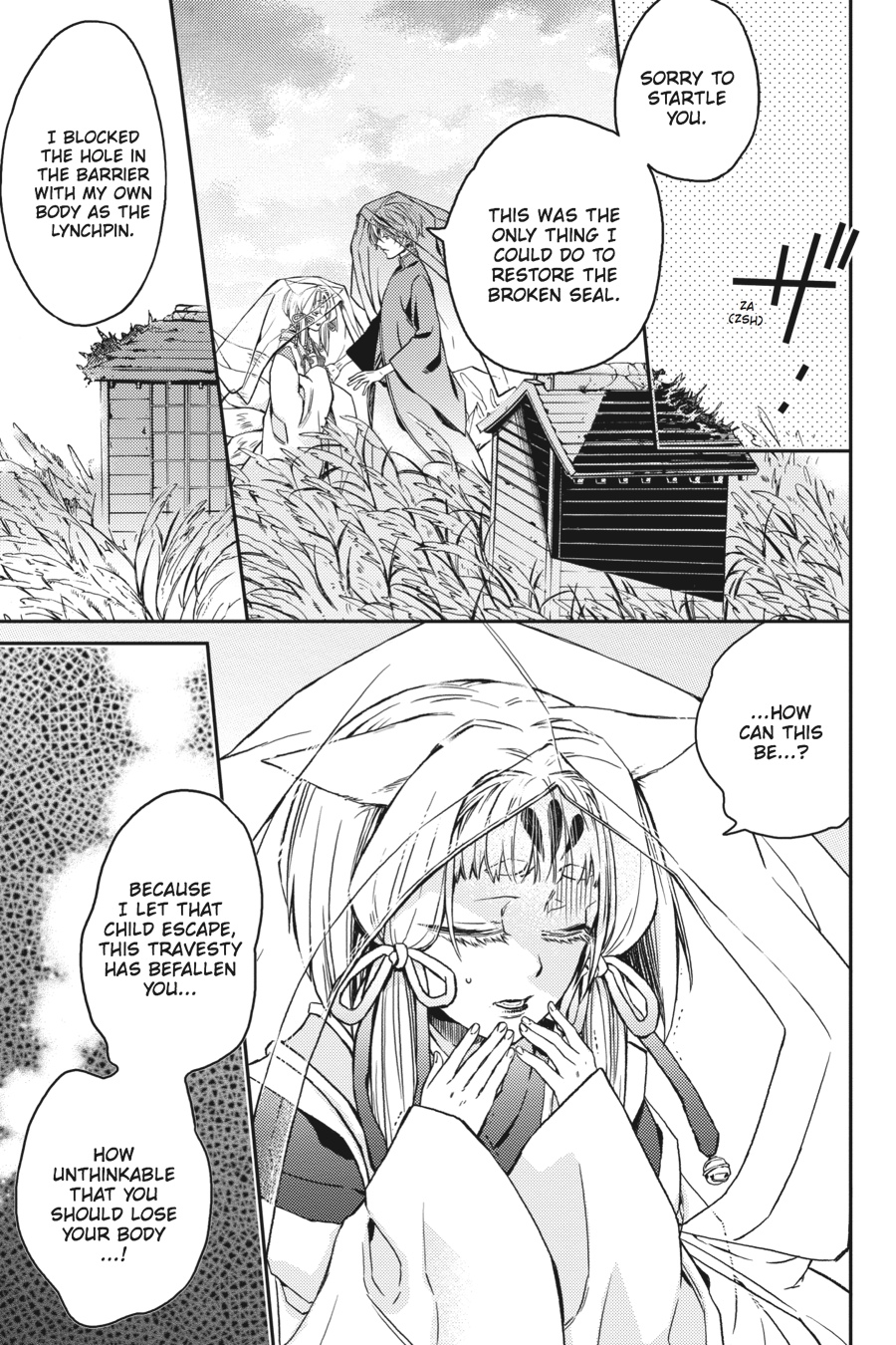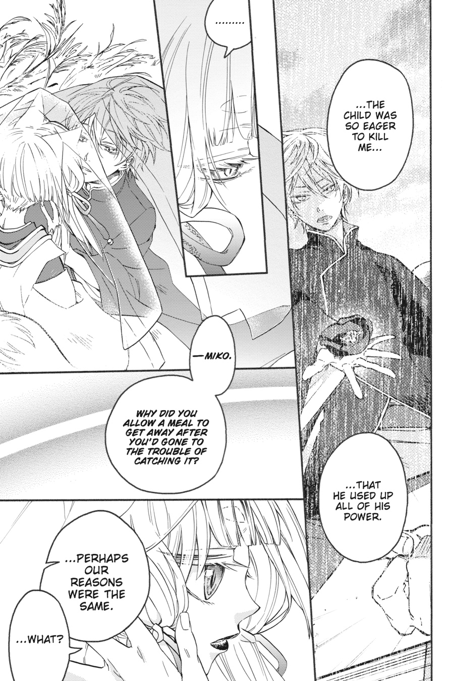 Yue makes for the shrine to rescue the captive Tsubaki. But there, he is met with the past of the man calling himself Sagano. Once upon a time, shrine master Mikoto herself saved Sagano's life when he went by the name "Akashi." But as a result, Sagano lost everything dear and had to stand by as his body became the vessel for Shin, the leader of the ayakashi. Now intent upon vengeance, Sagano raids the shrine and challenges Mikoto to a duel! Meanwhile, Yue decides on the path he must take! As the humans and ayakashi clash, the vagaries of fate accelerate...
