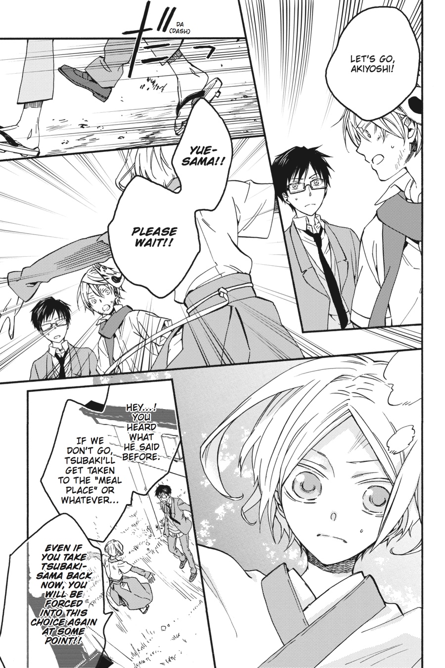 Satou declares a change in Tougo's fate: in order for Mikoto, the master of the ayakashi, to regain her power, Tougo will be sacrificed to the camellia pond. Held prisoner, the unconscious Tougo weeps in his dreams over his mother Akane's betrayal in running off with the mysterious Yoshiki. Will Abe-san and Company, tasked with Tougo, who is immersed in bleak thoughts, be unable to resist the temptation of a three-star Meal?! The truth looms ever closer...