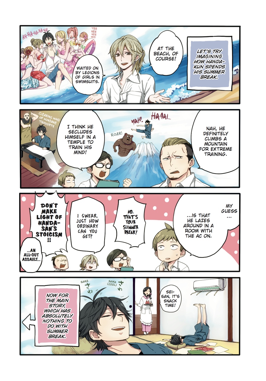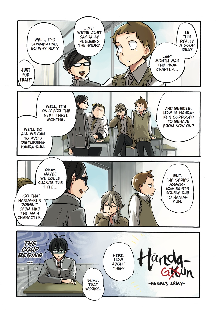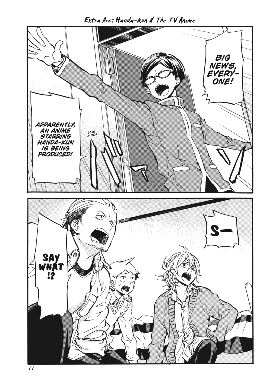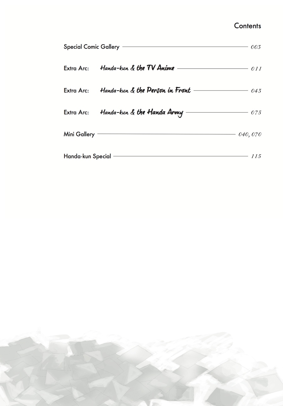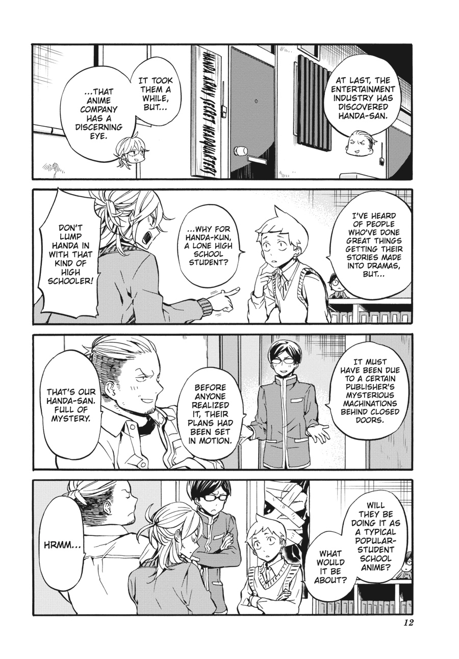 Just when you thought it was all over, the whole crew makes a surprising return for three extra chapters! How will the Handa Army react to the news that their beloved Handa will be the focus of an anime series? By blowing it all ridiculously out of proportion, of course! The final volume of Handa-kun is full of high jinks with the Handa Army, plus some special extras from the author.