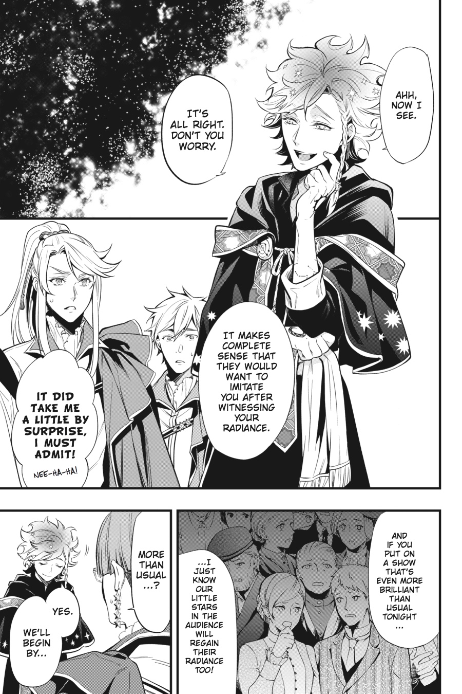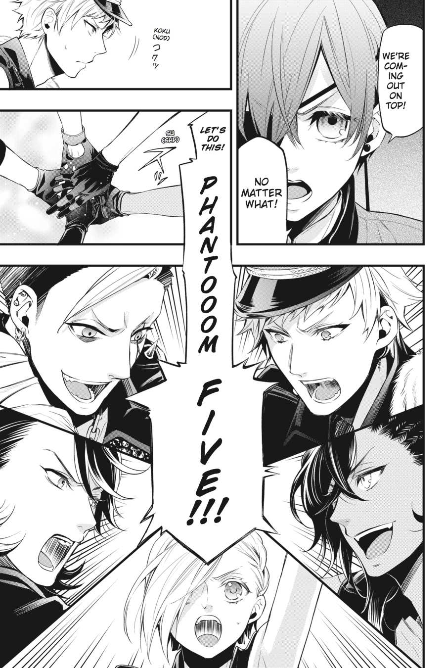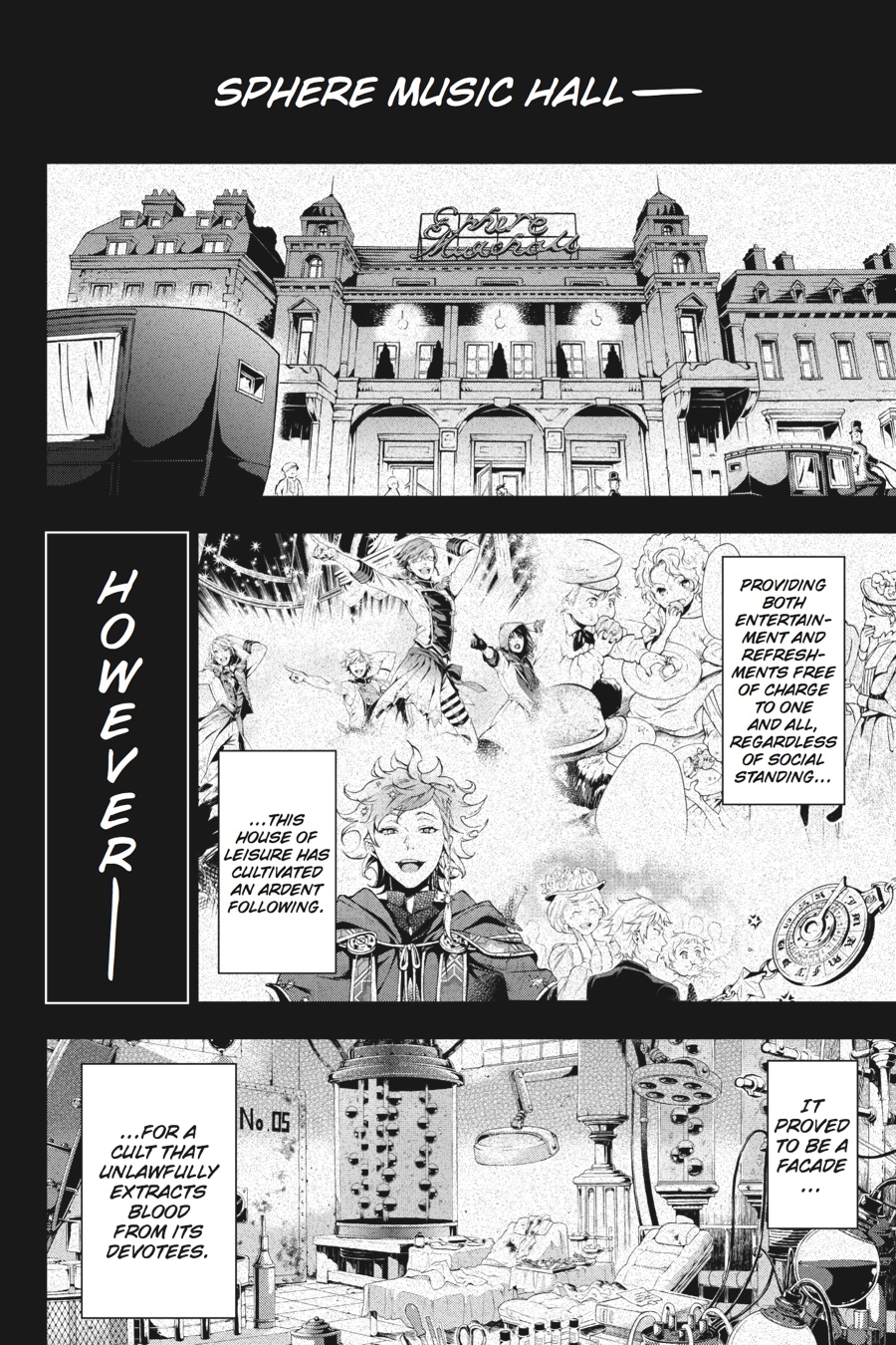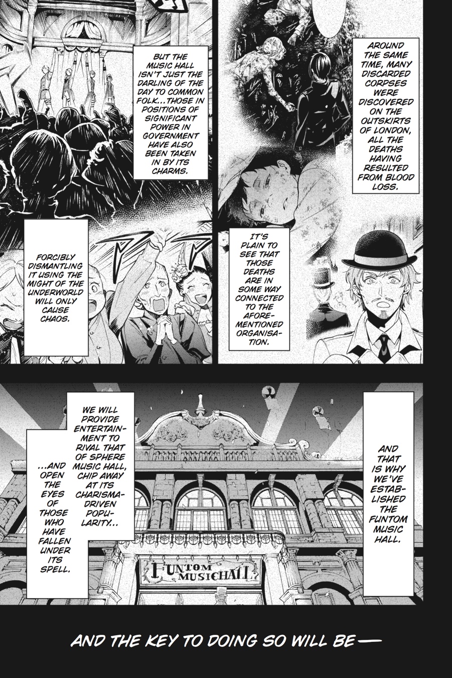 Sphere Music Hall, with its elaborate entertainments, has the denizens of London under its spell and at the mercy of its resident cult's nefarious motives. To snap the populace out of the trance, Earl Ciel Phantomhive and his unparalleled butler Sebastian get down to business...literally! The young earl takes the fight right to the enemy's door by opening a music hall of his own. But as a new kind of battle gets under way on the stage, Othello, a fresh face from the Grim Reaper Dispatch, begins snooping around behind the curtains for reasons unknown...