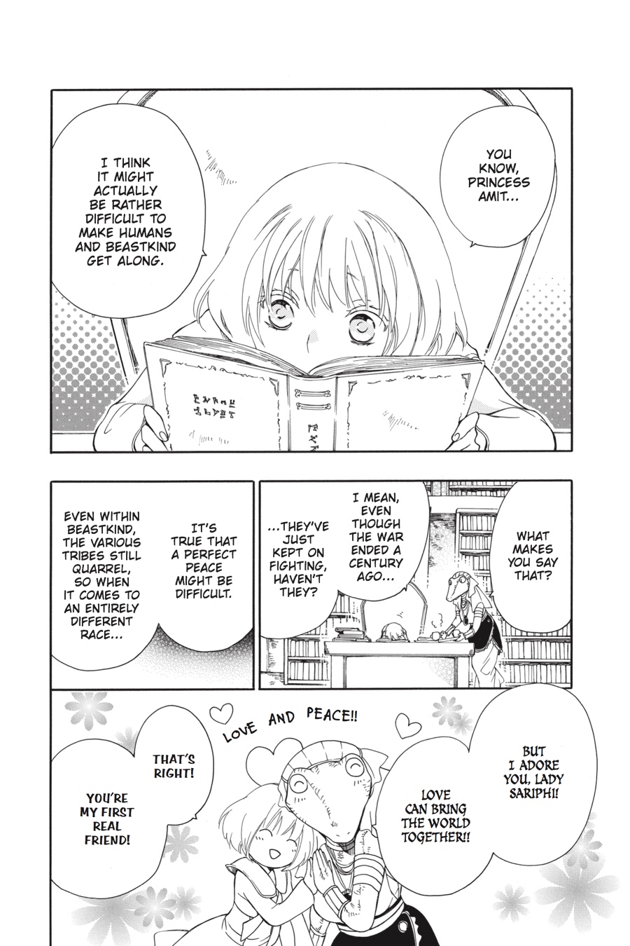 Intent on avenging Sariphi's sacrifice, her childhood friend Ilya infiltrates the royal palace, only to discover her alive and well. When he demands her return, Sariphi refuses him outright , driving Ilya to make a desperate choice to abduct her from right under the nose of the beast king! But instead of giving chase, the king hesitates, paralyzed by doubt... Will Sariphi and Leonhart's story come to an abrupt close ...?
