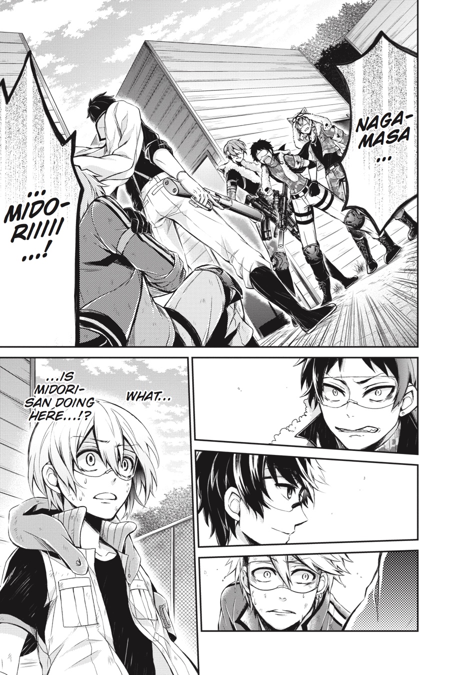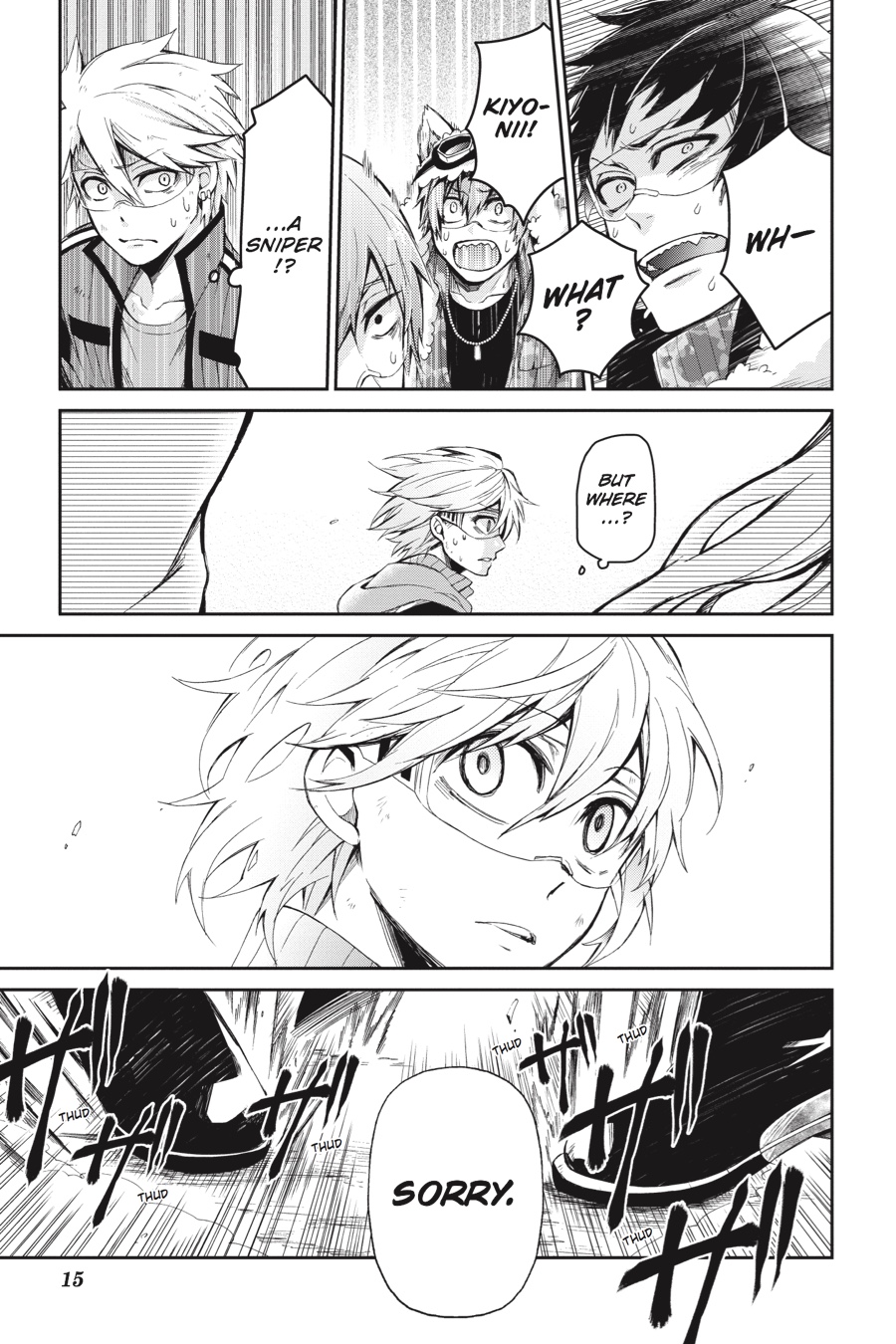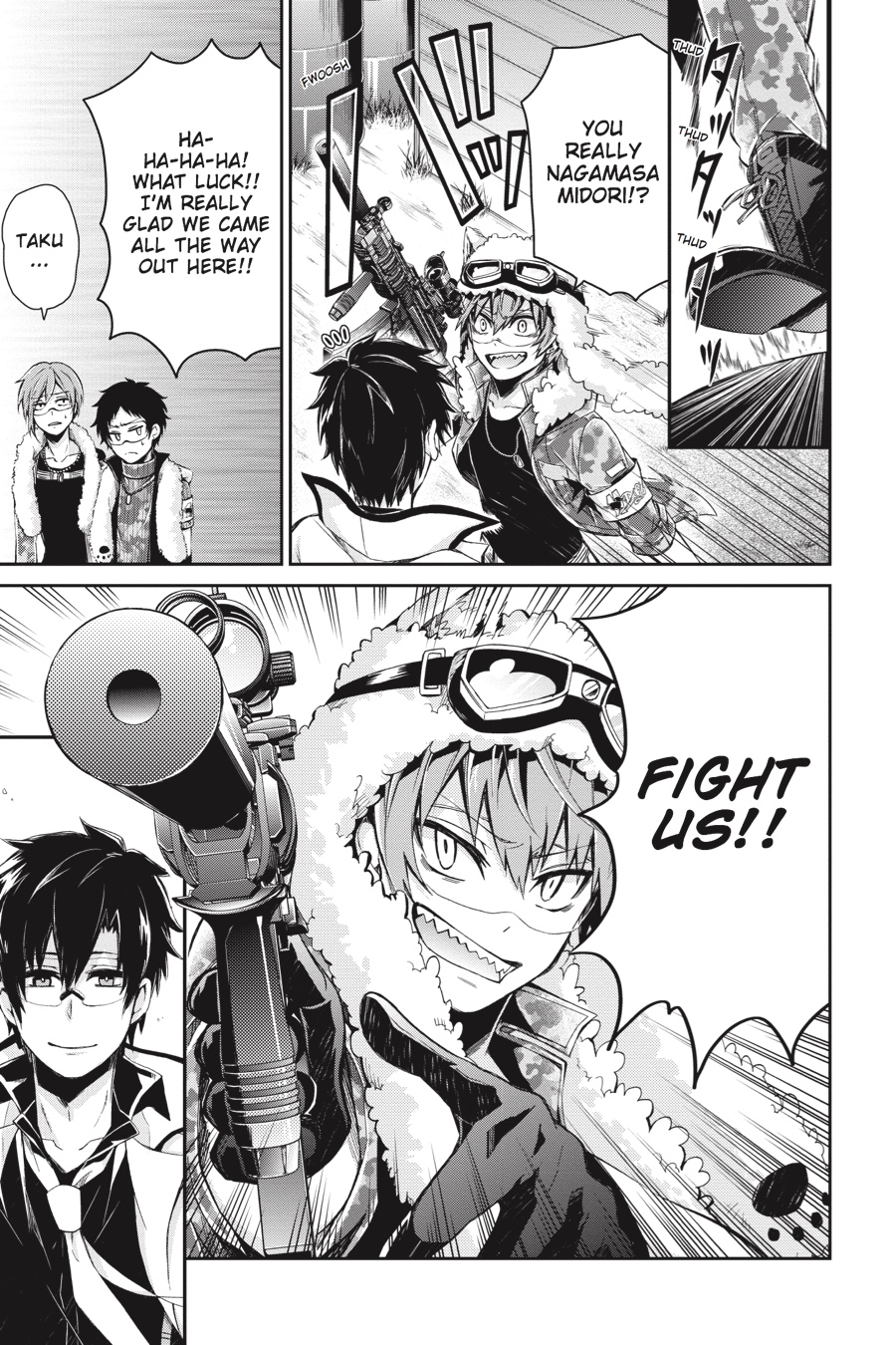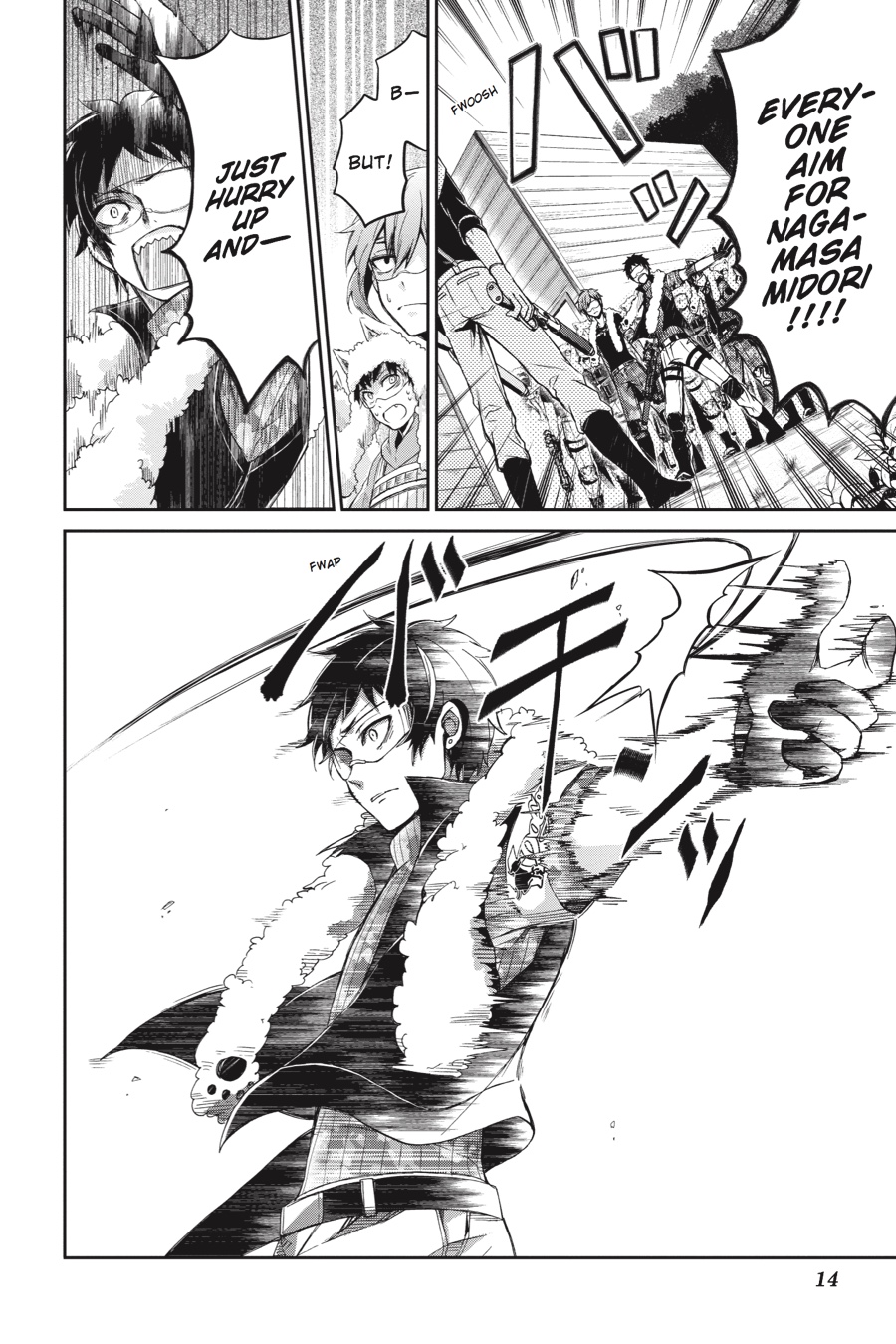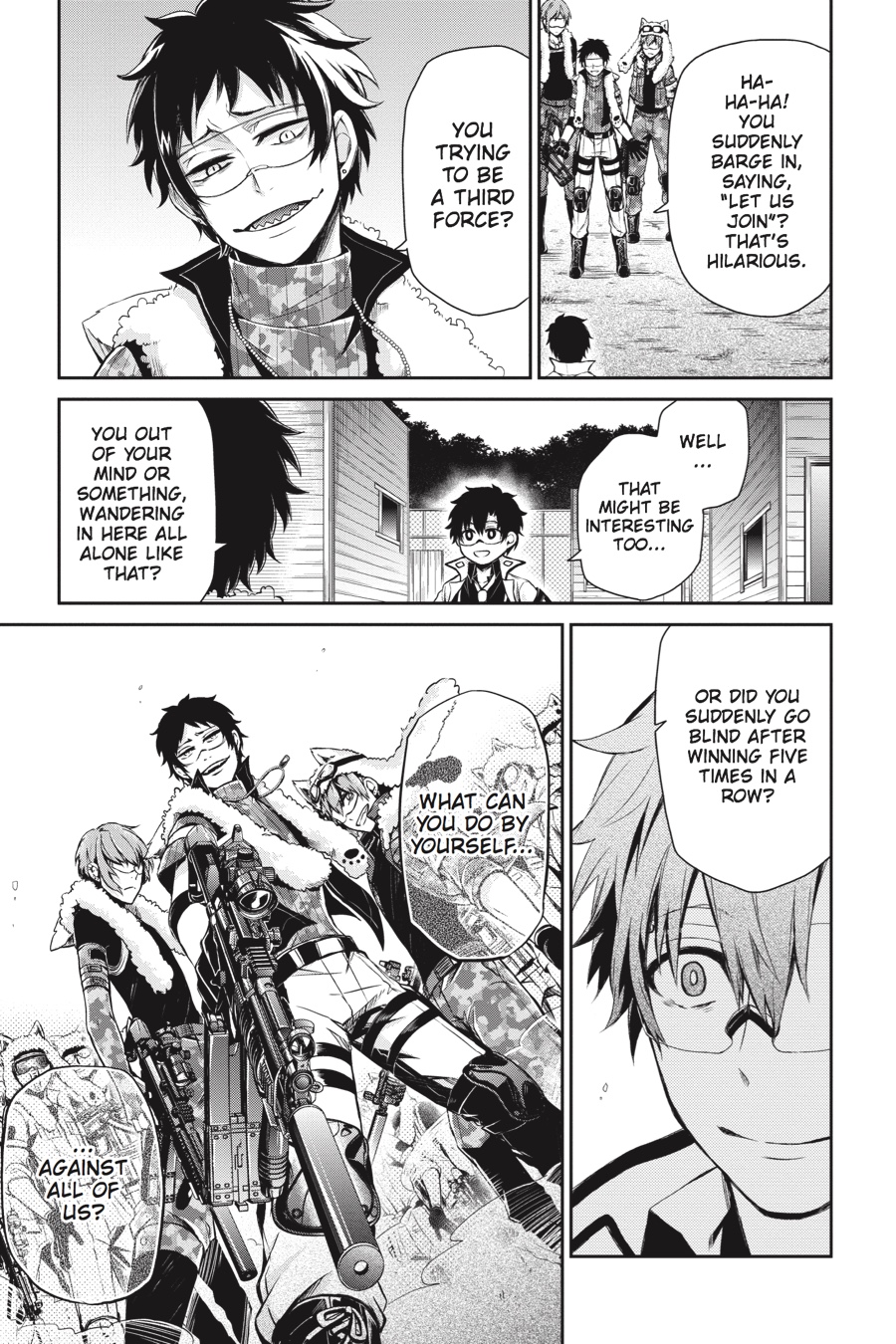 "We, Star White, will stand with Toy Gun Gun." Star White suddenly shows up to join in on the fight against 11 DOGs. When Midori suggests that they temporarily team up, Matsuoka agrees to the plan. What will come of the counter battle that faces the two-man cells of Tachibana and Ichi, Yukimura and Fujimoto, and Matsuoka and Midori!? And what kind of difficult past does Matsuoka share with Midori and Yukimura...?
