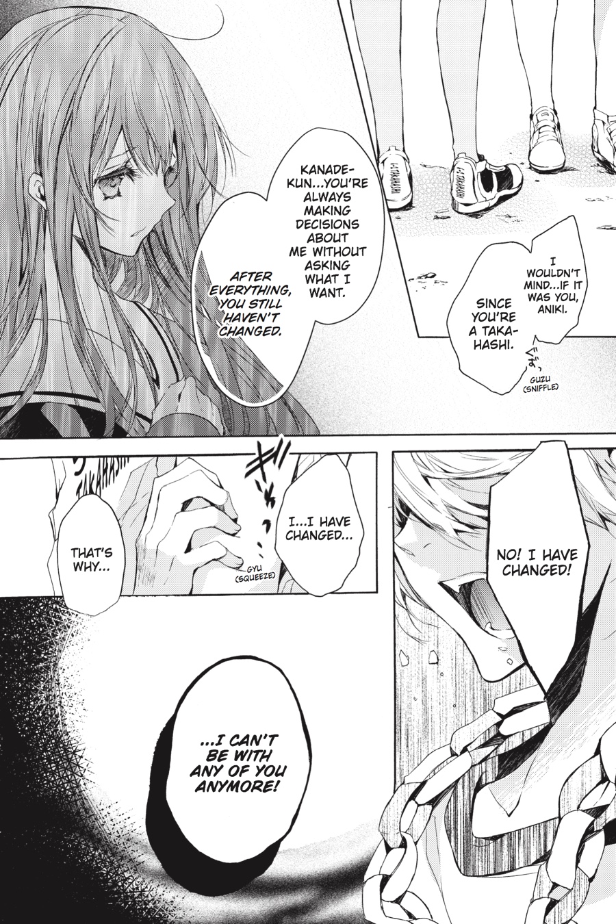 Kaho tells Kanade about her kiss with Atsushi. Any normal boyfriend would get mad, but Kanade only smiles back! Amid these complicated feelings, she ends up alone with Atsushi. Is this the start of a love triangle?
